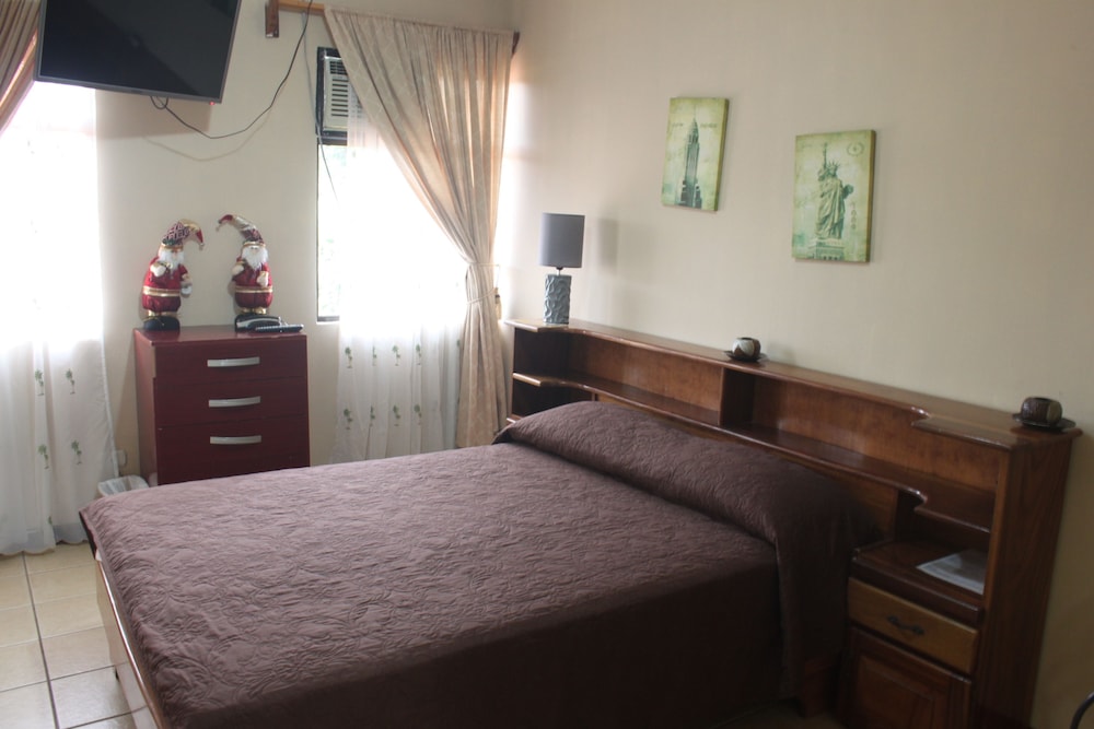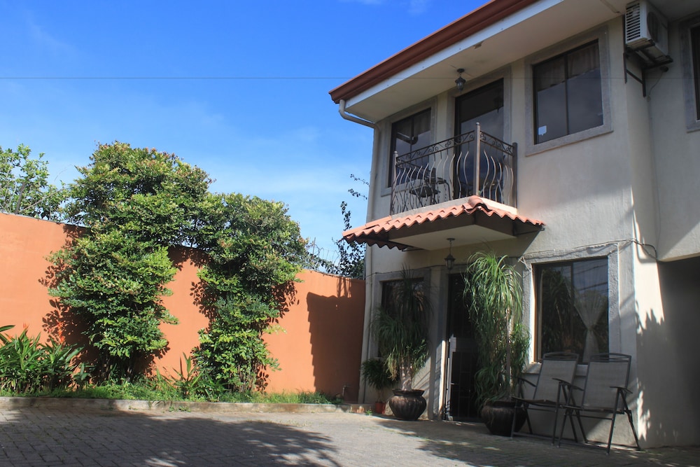 This was a very basic Tico Inn. Our flight arrived late and after picking up our rental car we were less than two miles from Santa Maria. We had both emailed to prepare staff for late arrival and then called upon landing. We arrived and staff opened the gate within 5 minutes of ringing their bell. Staff was very friendly and helpful. Breakfast was good including fruit plate, eggs, sausage and toast served on an outdoor patio/garden with hummingbirds feeding on the pretty foliage. As I initially said, it is basic, but for the price, it was a safe convenient place to stay.