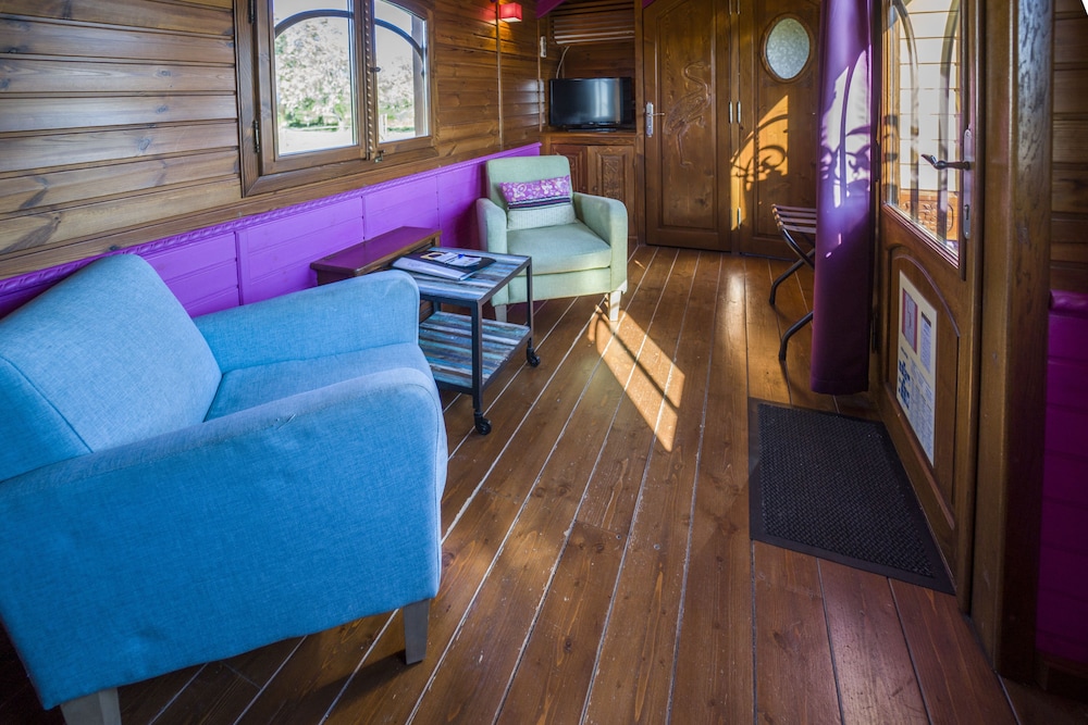 Leider ist der Zustand der Roulotte und Hotel mehr als nur in die Jahre gekommen! Die Lage an sich wäre super! Jedoch vor dem Fenster stappelt sich der Pferdemist! Man öffnet das Fenster und alles was man sieht/riecht ist Pferdemist! Echt ekelhaft, obwohl wir selber Pferde haben! Die Fenster schliessen nicht richtig, die halbe Einrichtung ist defekt! Keine Ahnung wie dieses Hotel zu den 4* gekommen ist… zum Glück konnten wir nach 2 Tagen ausziehen in ein anderes, wunderschönes Hotel!