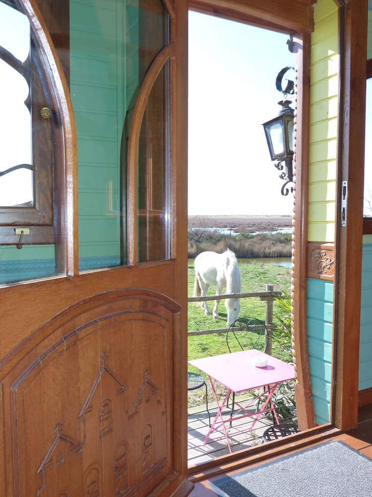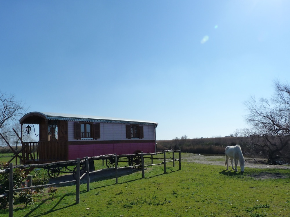 tés bien aménagé avec beaucoup de goût calme tout en étant proche a qq kms de la ville a mon avis pour un 4* il faudrait une machine a café/tyhé dans les chambres n ous avions choisi la roulotte gitane très drôle un vrai dépaysement ce calme et cette nature a recommander mais horreur !! les moustiques qui harcélent mais c'est la CAMARGUE mais on y reviendra surtout a 120 km de MARSEILLE ou nous habitons