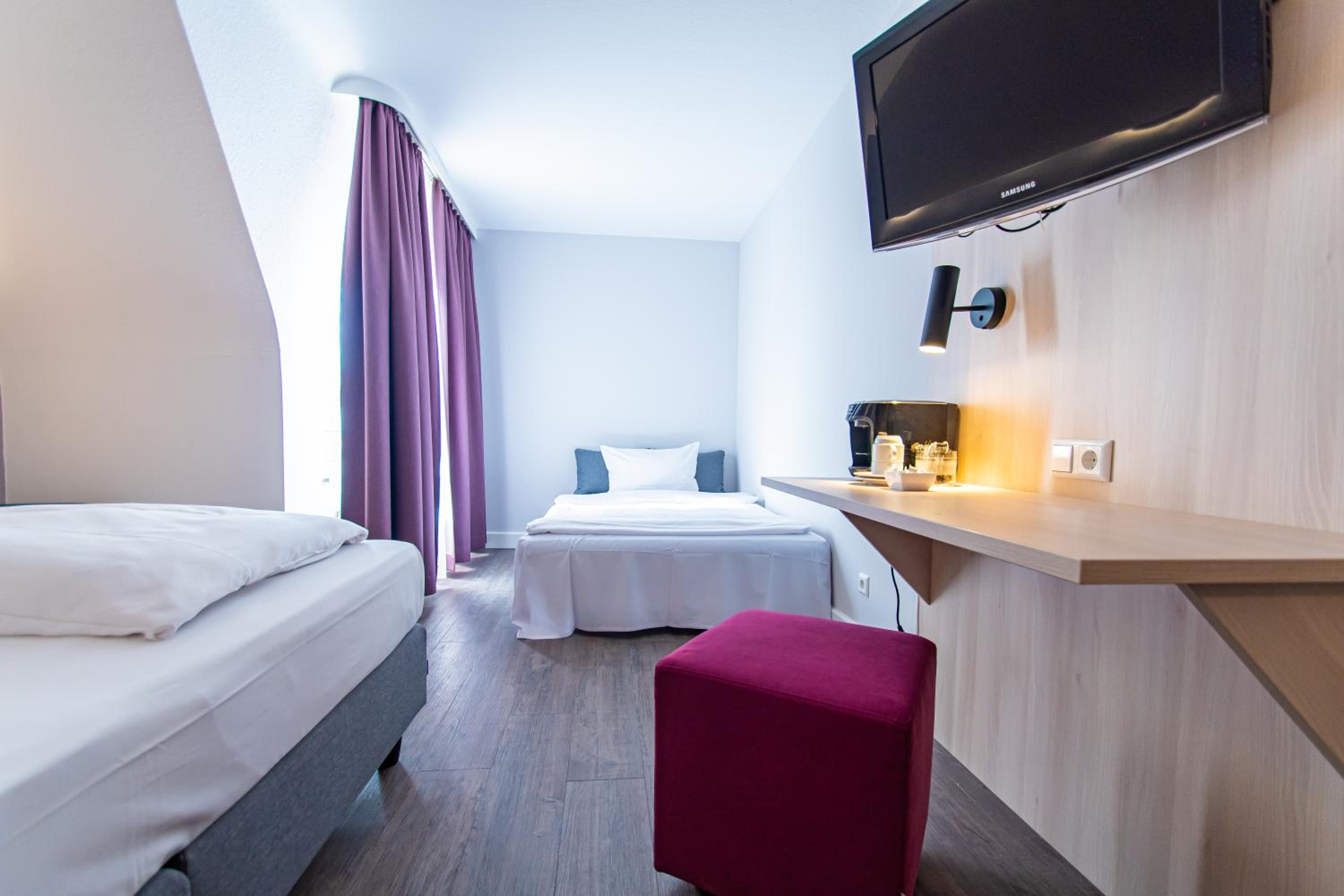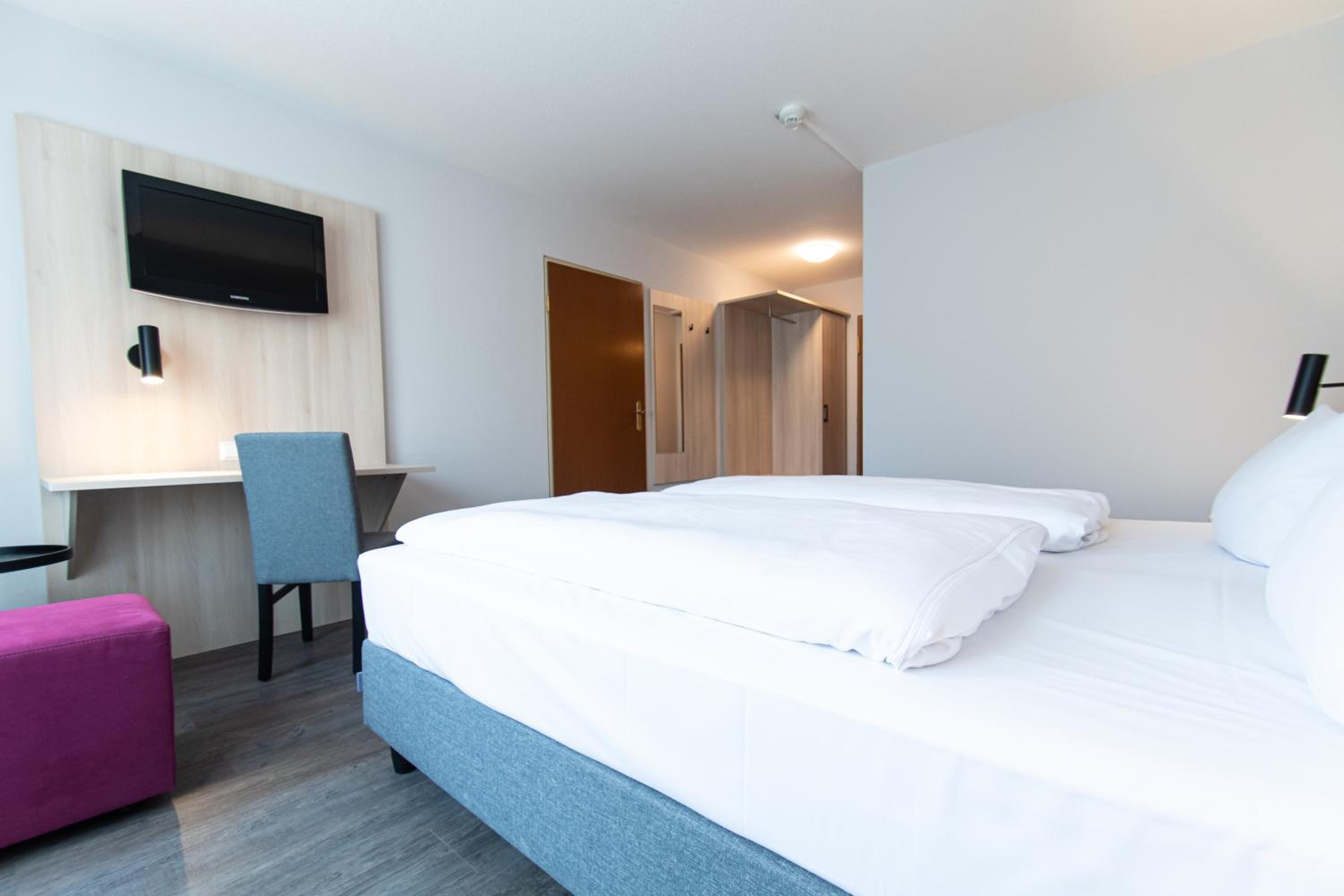 Experience comfort and convenience at our 3-star hotel in Hockenheim city centre. Our modern rooms are equipped with all the essentials for a pleasant stay, including a desk and TV.
