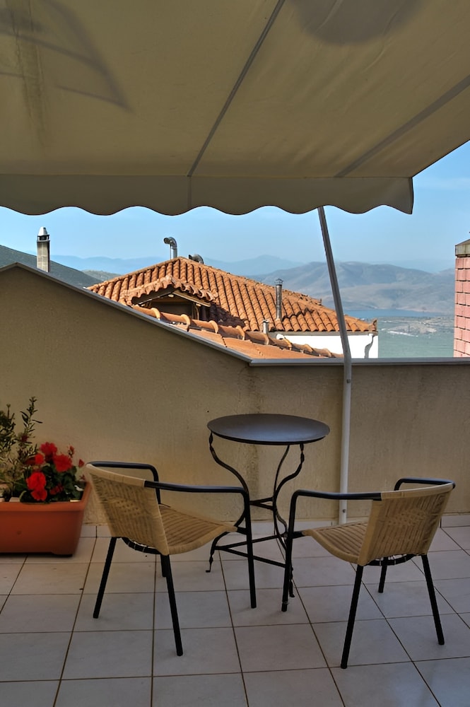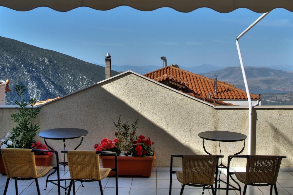 Relax and enjoy the stunning views from the terrace at Pitho. What better way to unwind than taking in the beauty of Delphi from this vantage point?