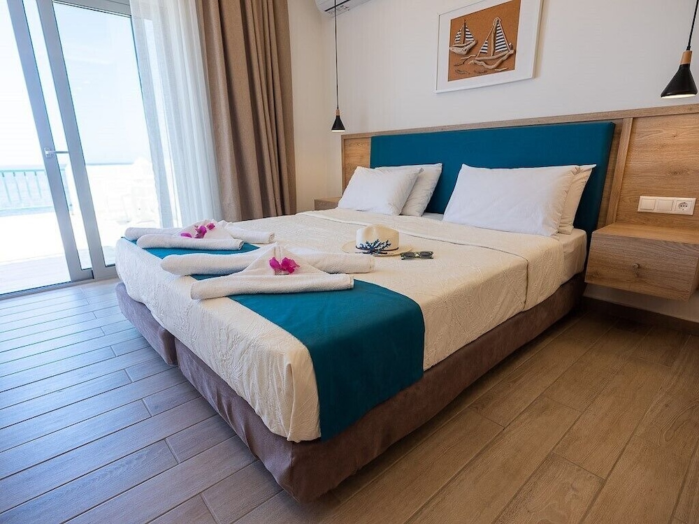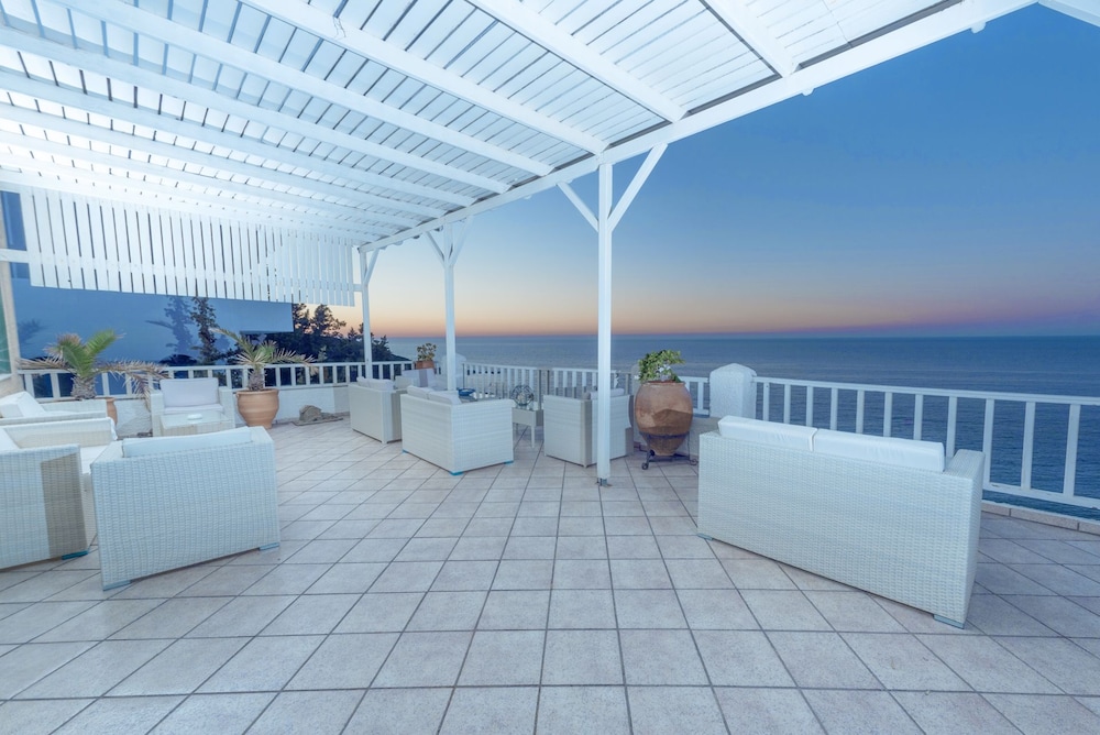 Mooi en modern hotel met prachtige ligging boven de zee. Het ontbijt is uitgebreid en lekker, het personeel zeer vriendelijk en behulpzaam en onze kamer klein maar schoon en van alles voorzien. Je wandelt makkelijk naar de supermarkt of een taverna. De omliggende stranden zijn fantastisch, met fijn zand en genoeg ruimte. Wij komen zeker een keer terug