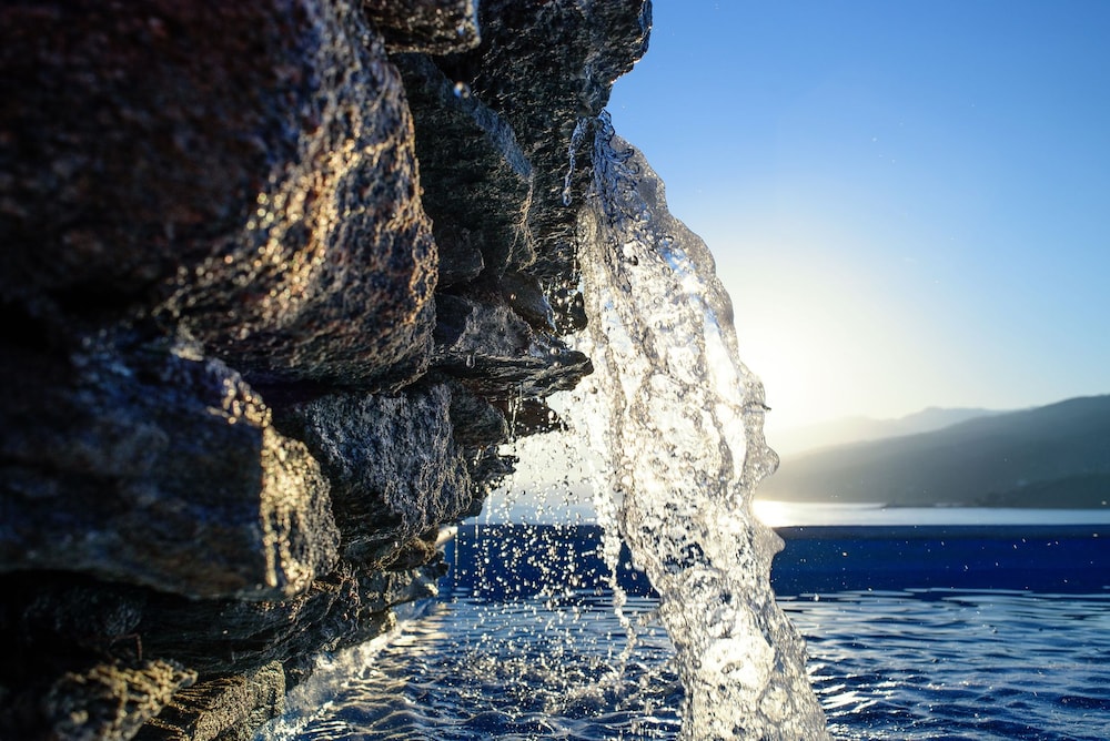 Beautifully situated hotel, sea view room gives you both sunrise and sunset experiences. Pools with sea water and lovely views. Very close to the village with a couple of local beaches and many dining options.