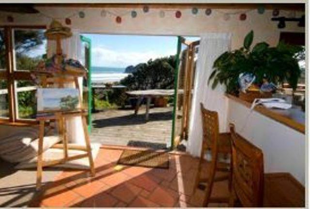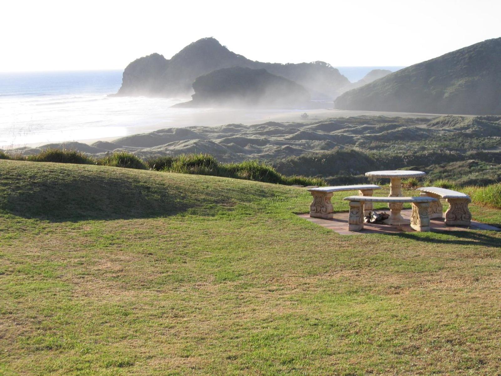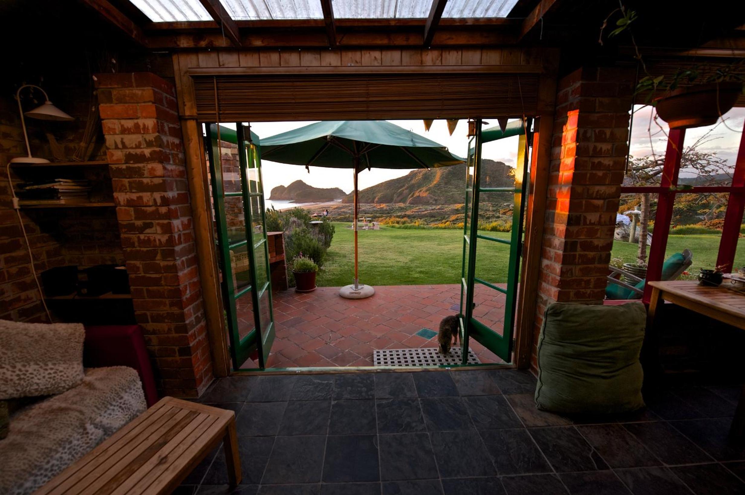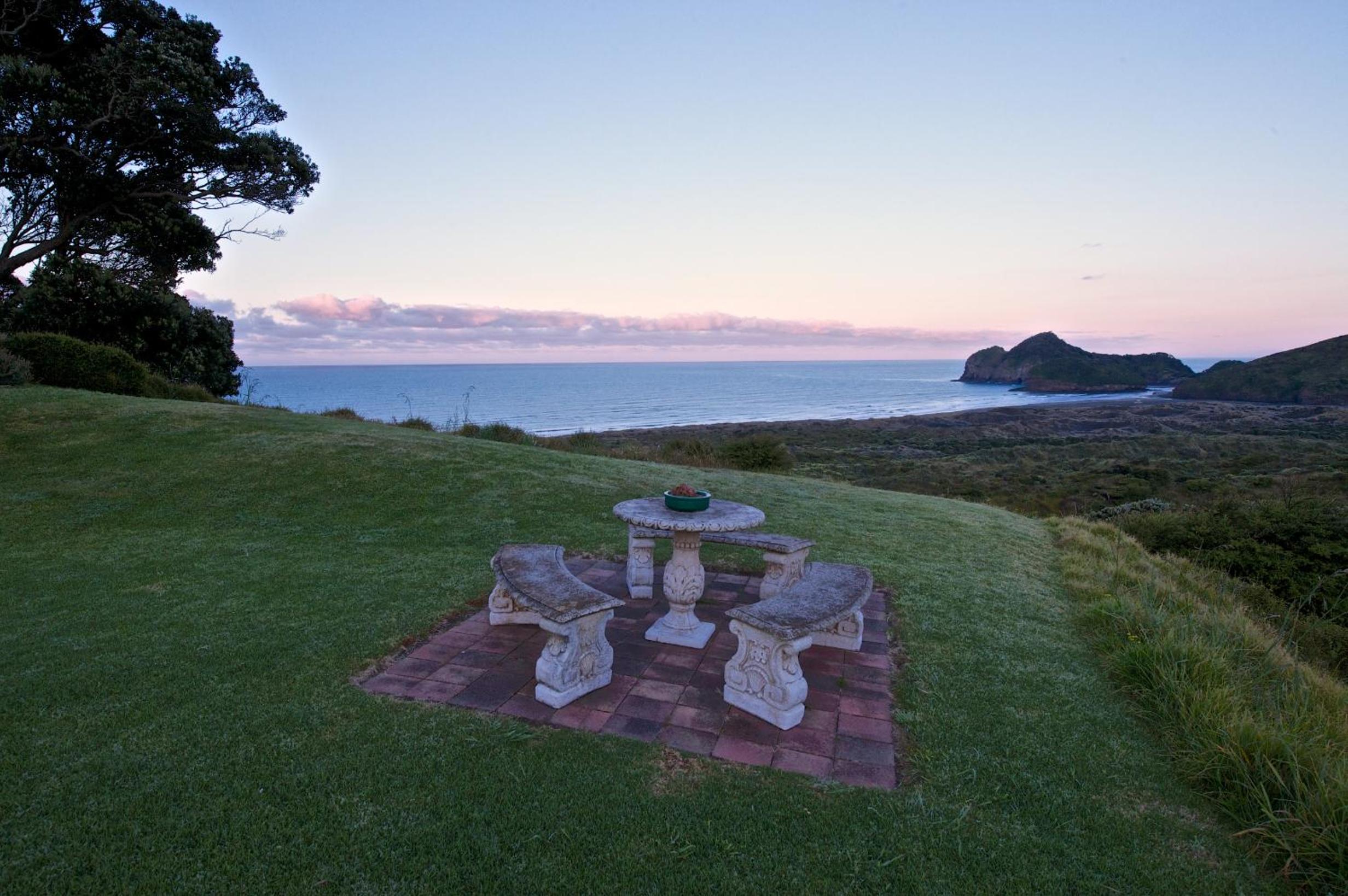 The view overlooking the sand dunes and beach is stunning. Private yet a shared communal area also and gardens and lawns, Quirky accommodation, loved the outdoor fire. Very relaxing plus make time to explore all around Bethells.