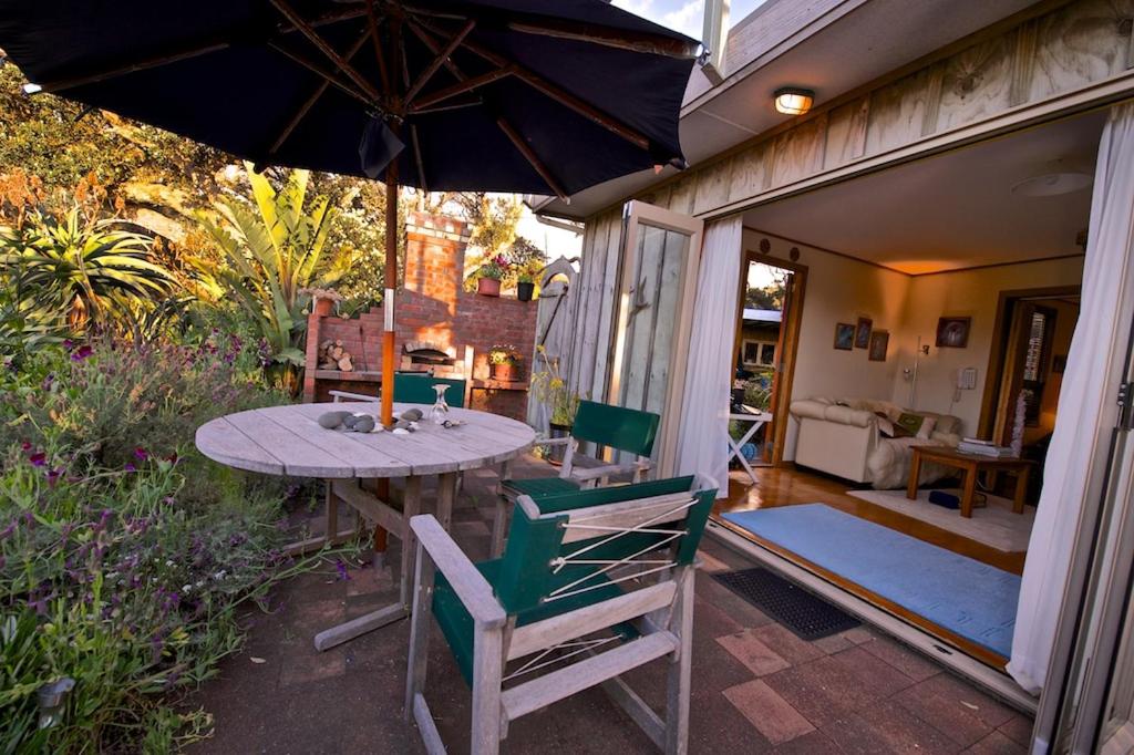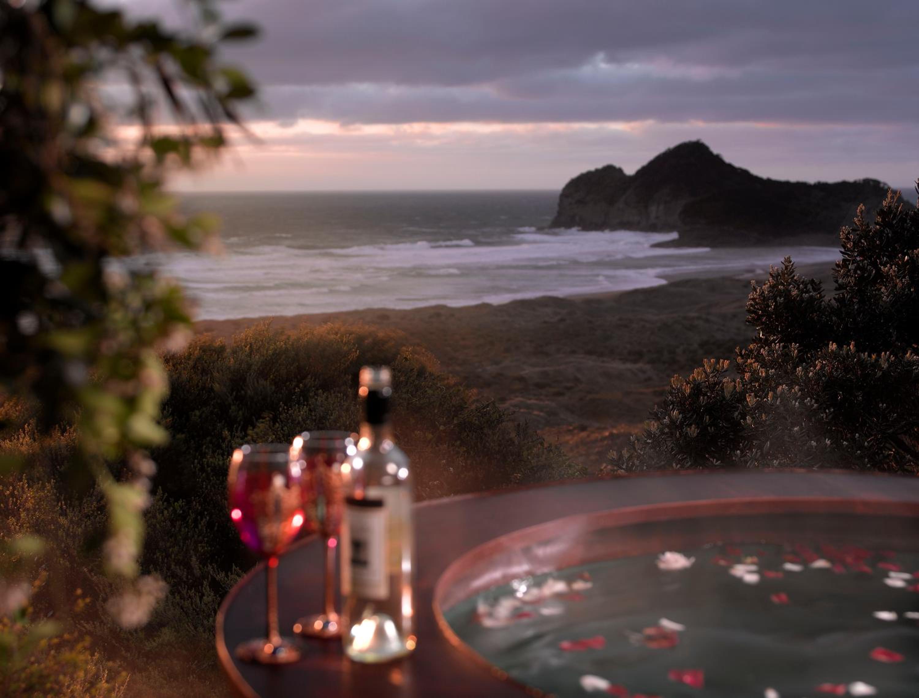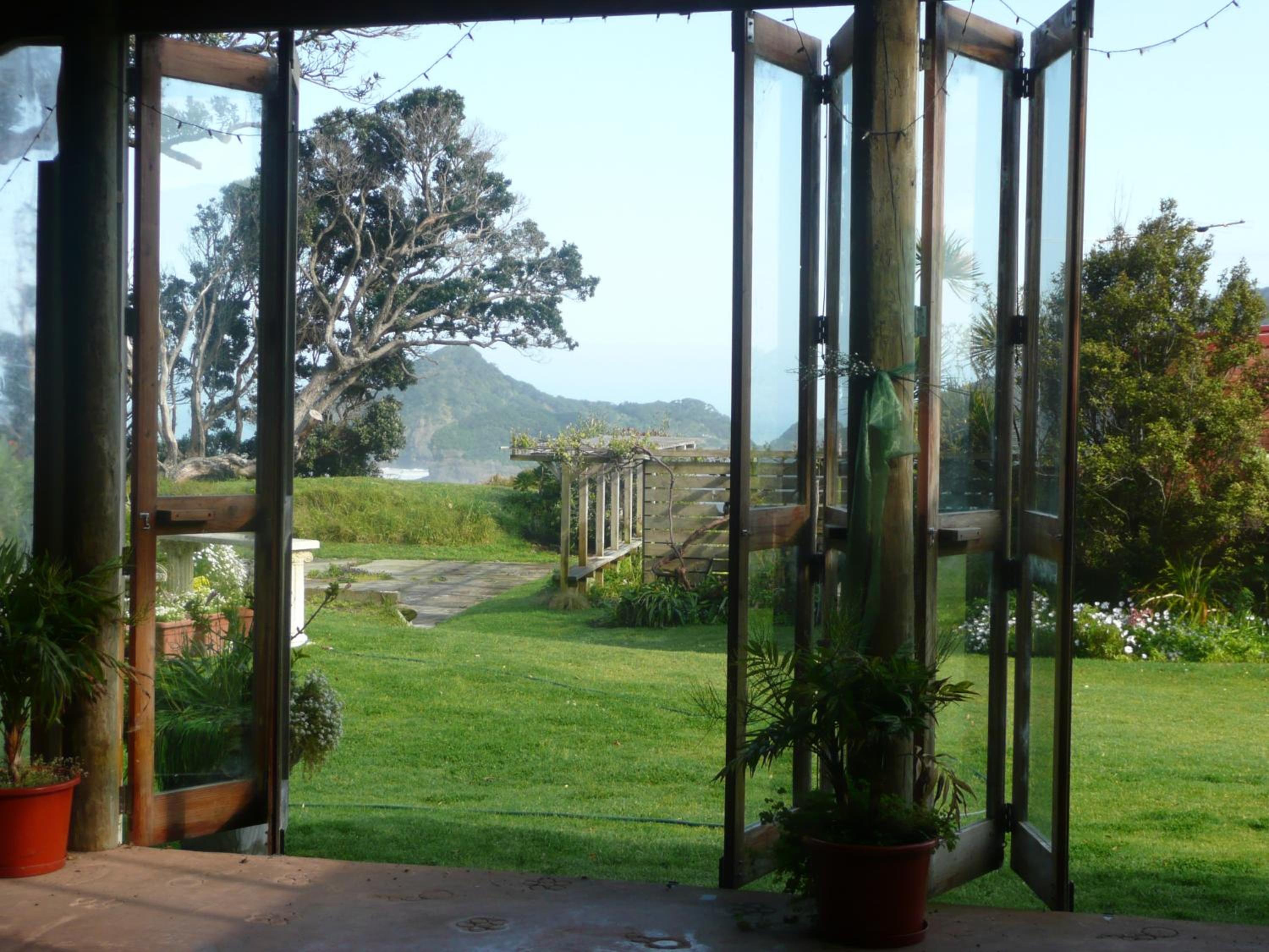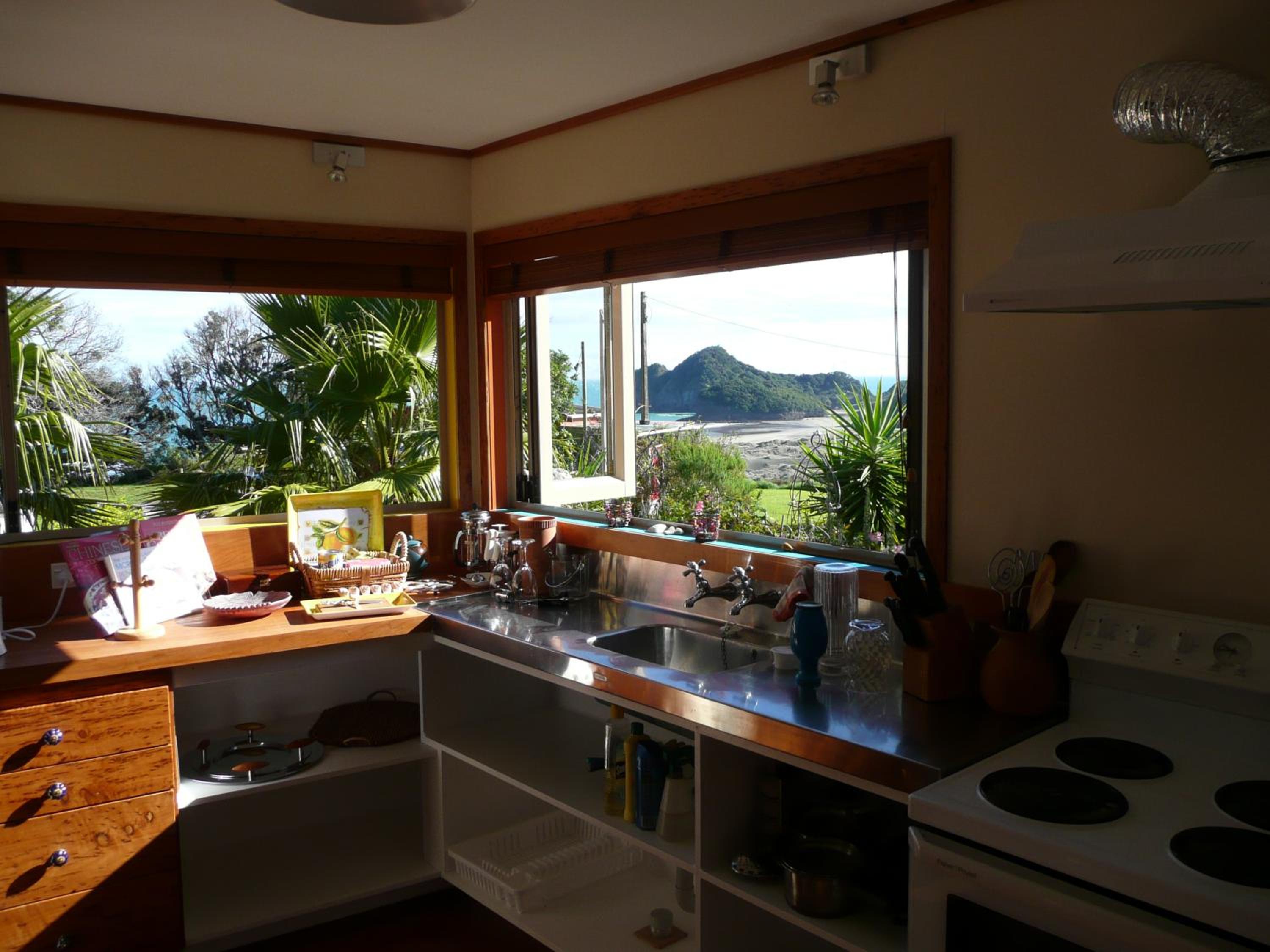 The view overlooking the sand dunes and beach is stunning. Private yet a shared communal area also and gardens and lawns, Quirky accommodation, loved the outdoor fire. Very relaxing plus make time to explore all around Bethells.