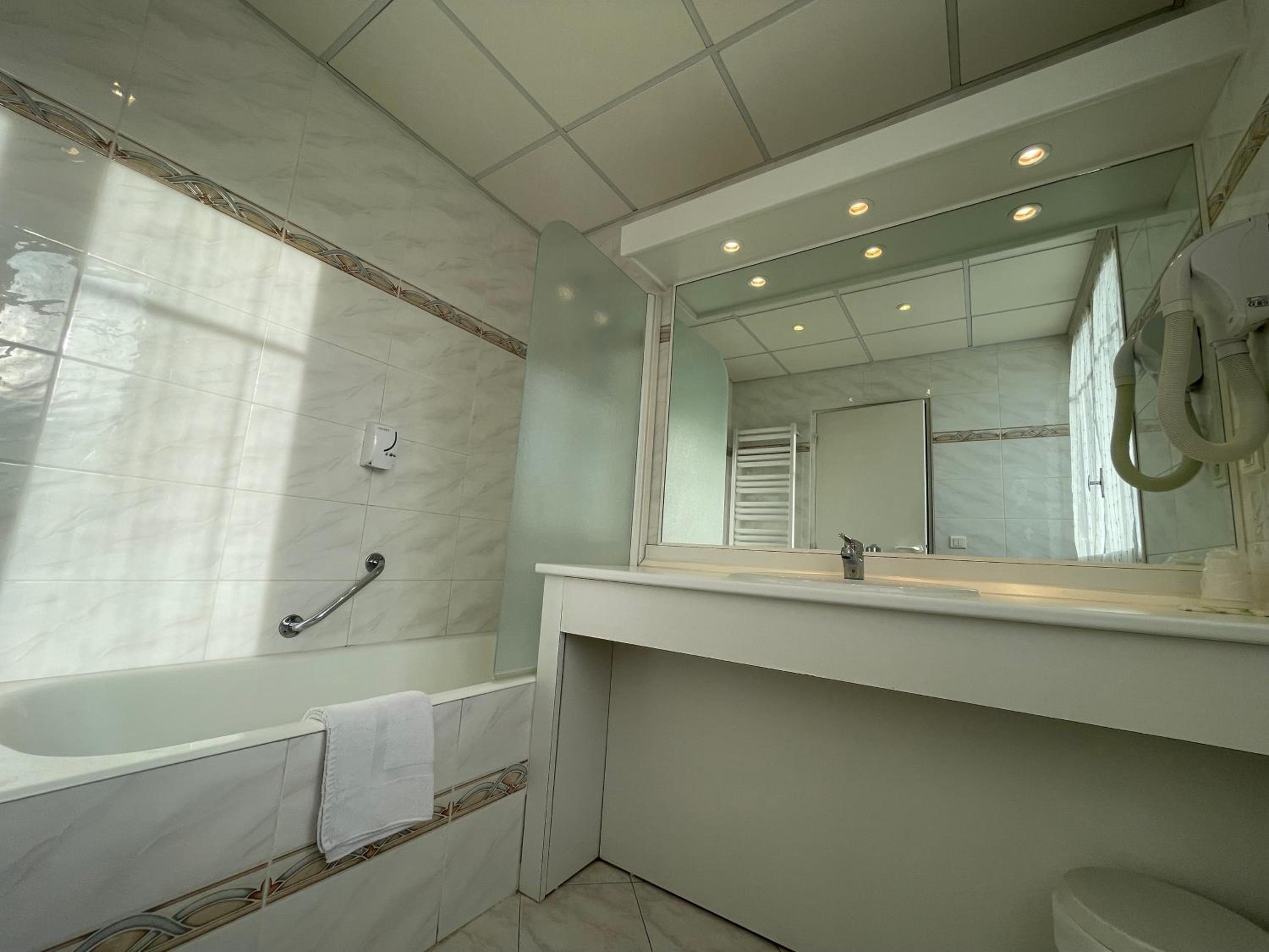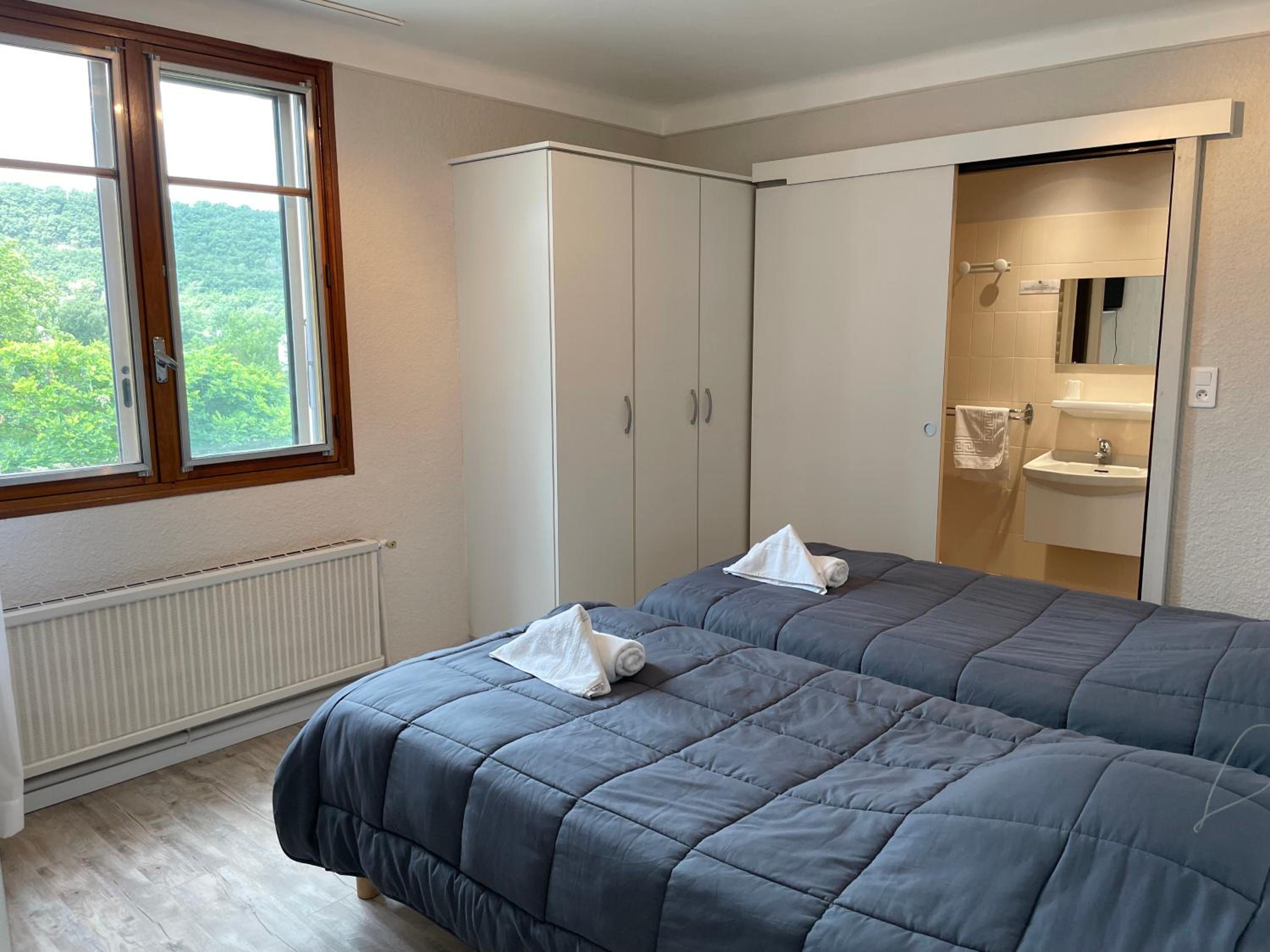 Notre chambre était un peu vieillotte.... une vraie porte pour séparer l'espace sanitaire serait bienvenue.
