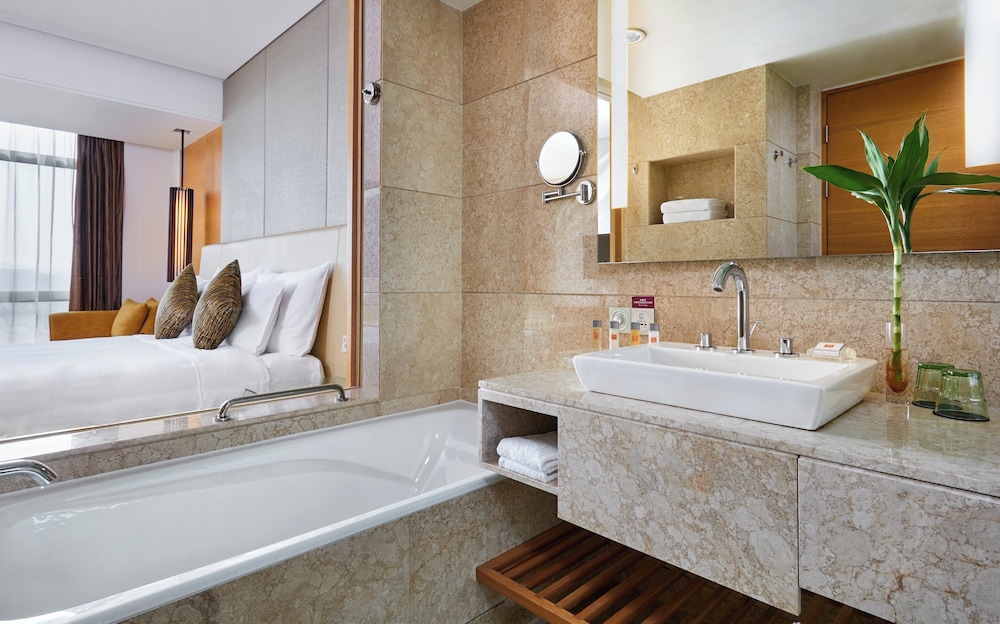非常老舊的酒店,完全沒有皇冠品牌該有的品質,公共區域地談霉味很重,甚至還有下雨被浸濕的痕跡; 行政樓層房間玻璃竟然外側磨損看不到外景,換了一間房間才免強接受, 房間可能噴了"香水" 說不出來的怪味,洗臉台竟然破損,馬桶按鈕跳不起來,不會再來住的酒店