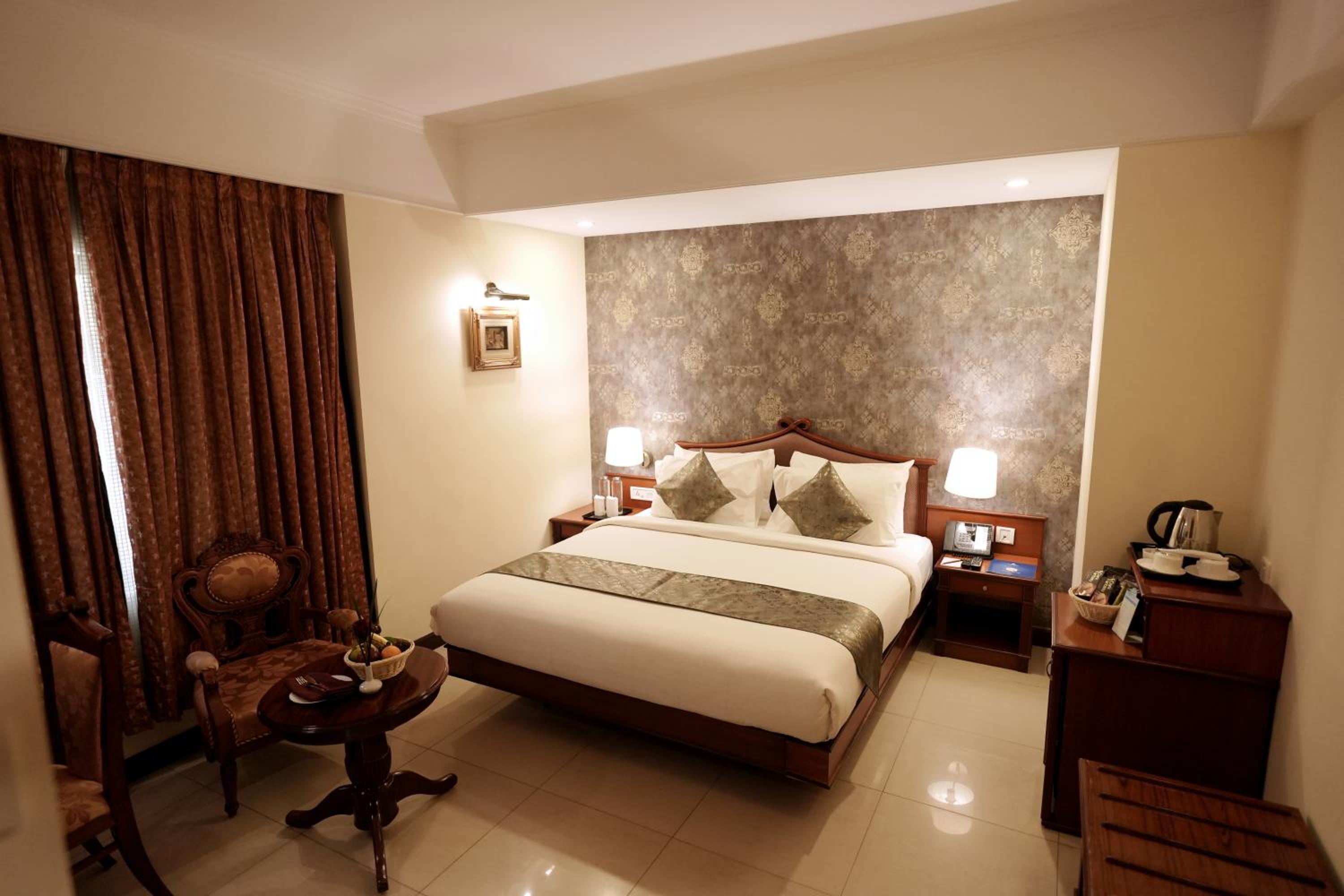 Experience the epitome of luxury at Maurya Rajadhani in Thiruvananthapuram City. Unwind in air-conditioned rooms adorned with traditional Indian décor and modern amenities including a minibar and cable TV.