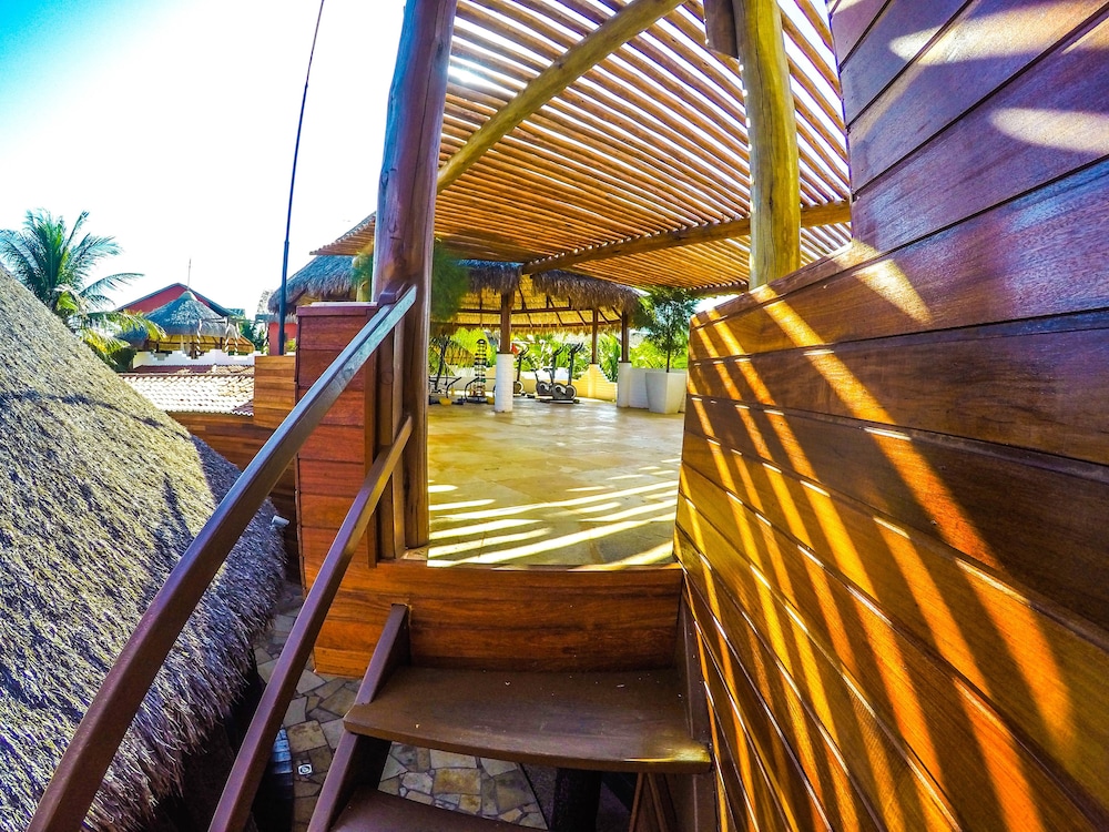 Só tem aparência. Ficamos em um quarto em condições ruins, a porta principal tinha uma rachadura enorme que, assim que o sol nasceu, a luz vem direto na cara e não permite mais dormir. Se alguém do lado de fora olhasse pela rachadura, poderia até me ver pelado. Outra questão é que tentaram de todas as formas consertar o ar condicionado, porém não conseguiram e fiquei com o ar ruim mesmo, ligado em uma temperatura aleatória (porque nenhum controle funcionou e aí você não sabe qual a temperatura está e não consegue alterar). Outra observação péssima do serviço oferecido é em relação à água filtrada. No RJ estamos acostumados à obrigatoriedade de fornecer água aos clientes e fui pedir para encher a garrafinha do meu filho e a reposta de todos os funcionários foi de que a pousada apenas vende água e se negaram a fornecer água filtrada. Se fosse aqui no RJ eu formalizaria a denúncia pela ausência de fornecimento de água filtrada aos clientes, mas vi que no estado do Ceará ainda não existe a mesma obrigatoriedade... porém fica registrado o absurdo e a falta de respeito com os hóspedes. Aconselho a procurarem uma outra pousada, porque este aqui só tem aparência... não se iluda.
