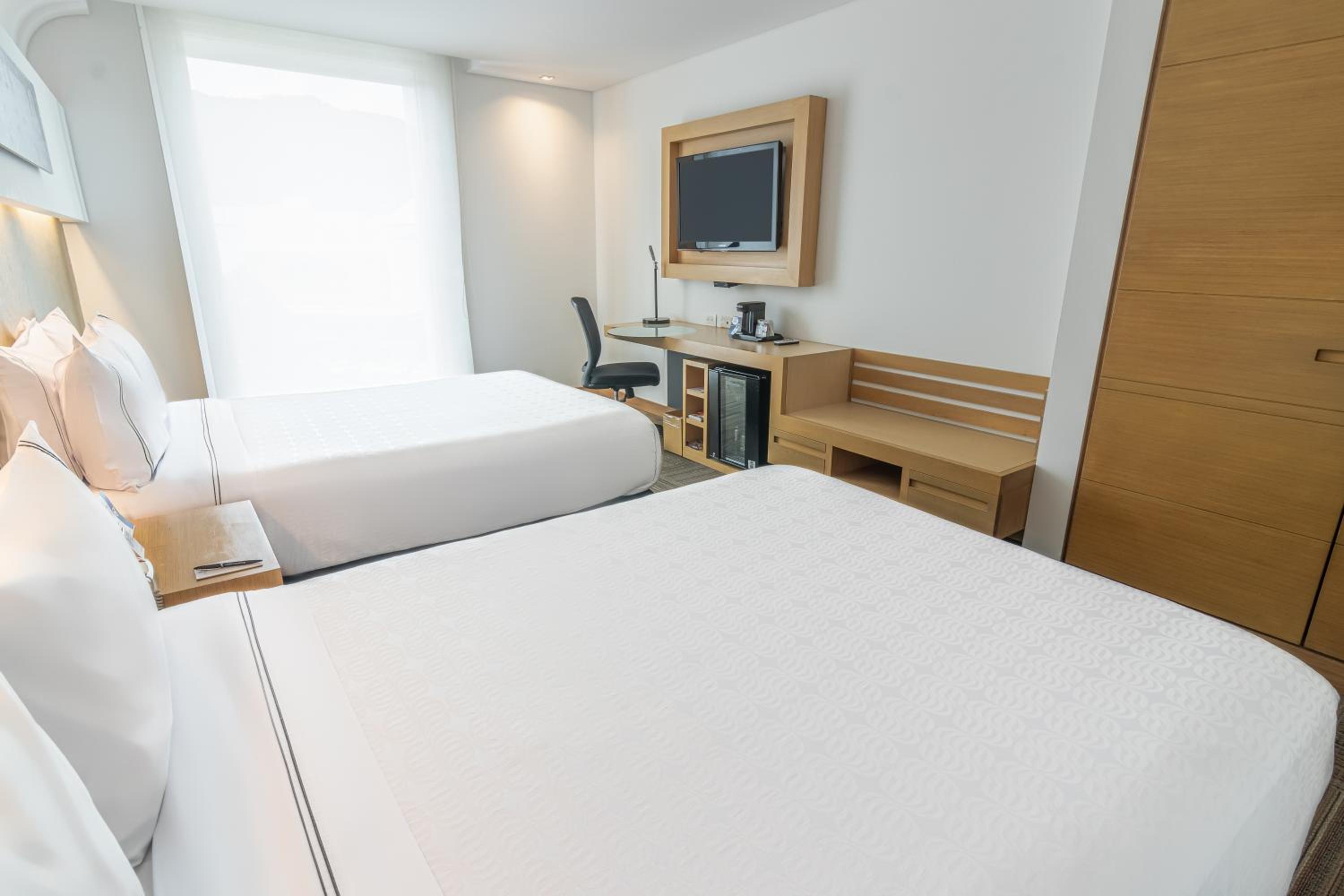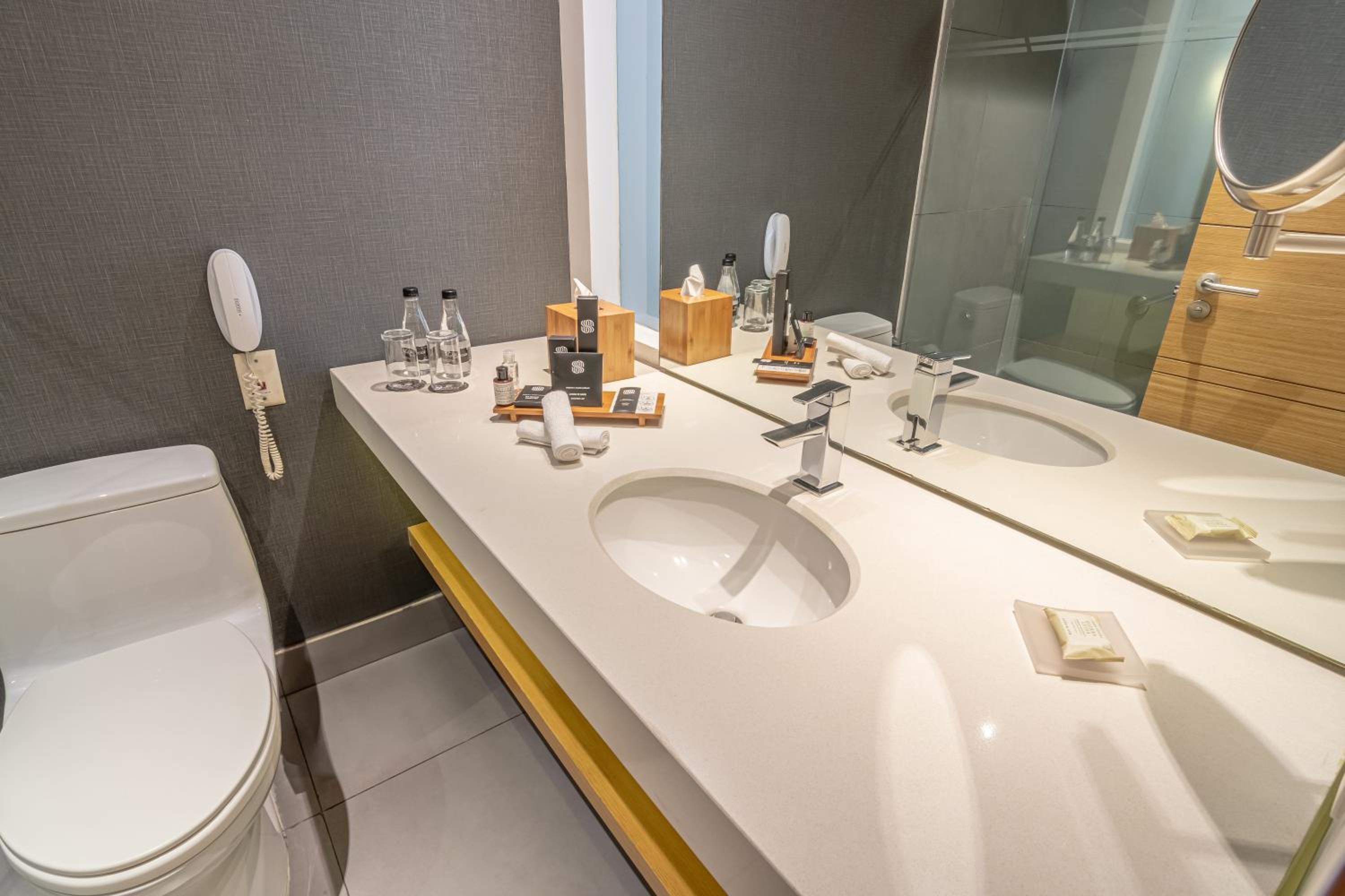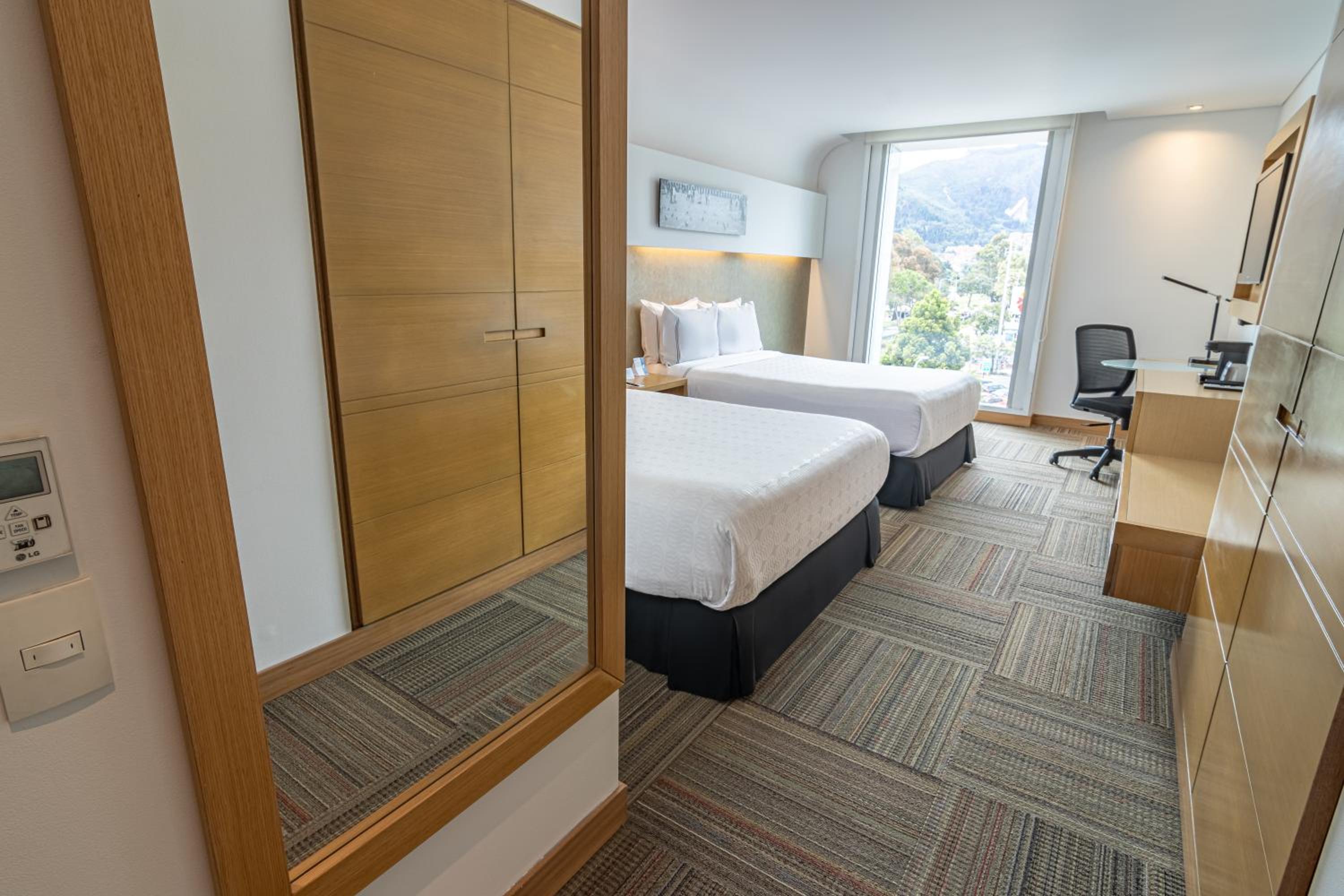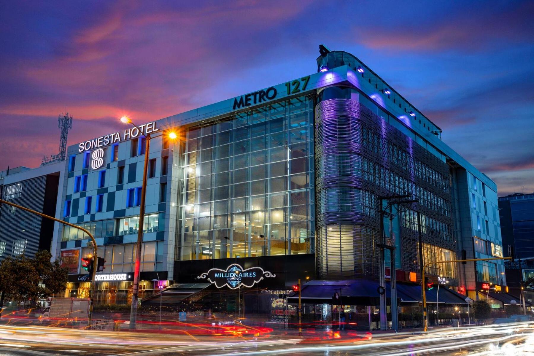 Sonesta Hotel Bogotá offers designer rooms with modern amenities and easy access to the 127 Metro Shopping arcade. The warm grey tones and innovative lighting create a sophisticated ambiance for guests.