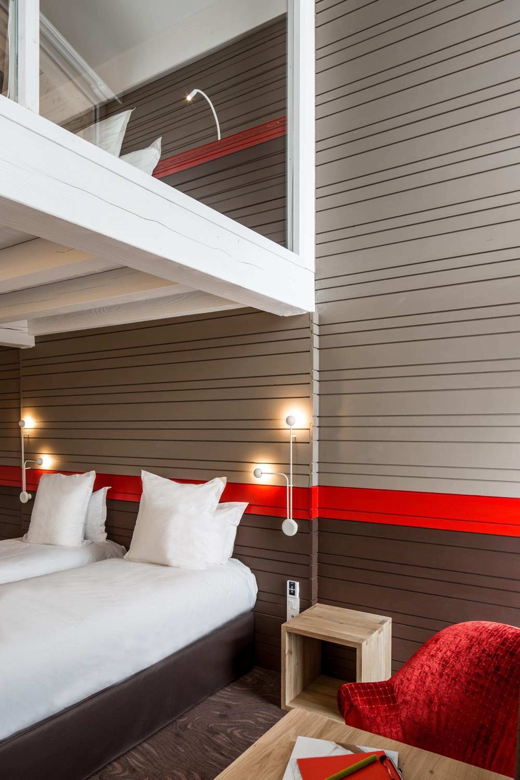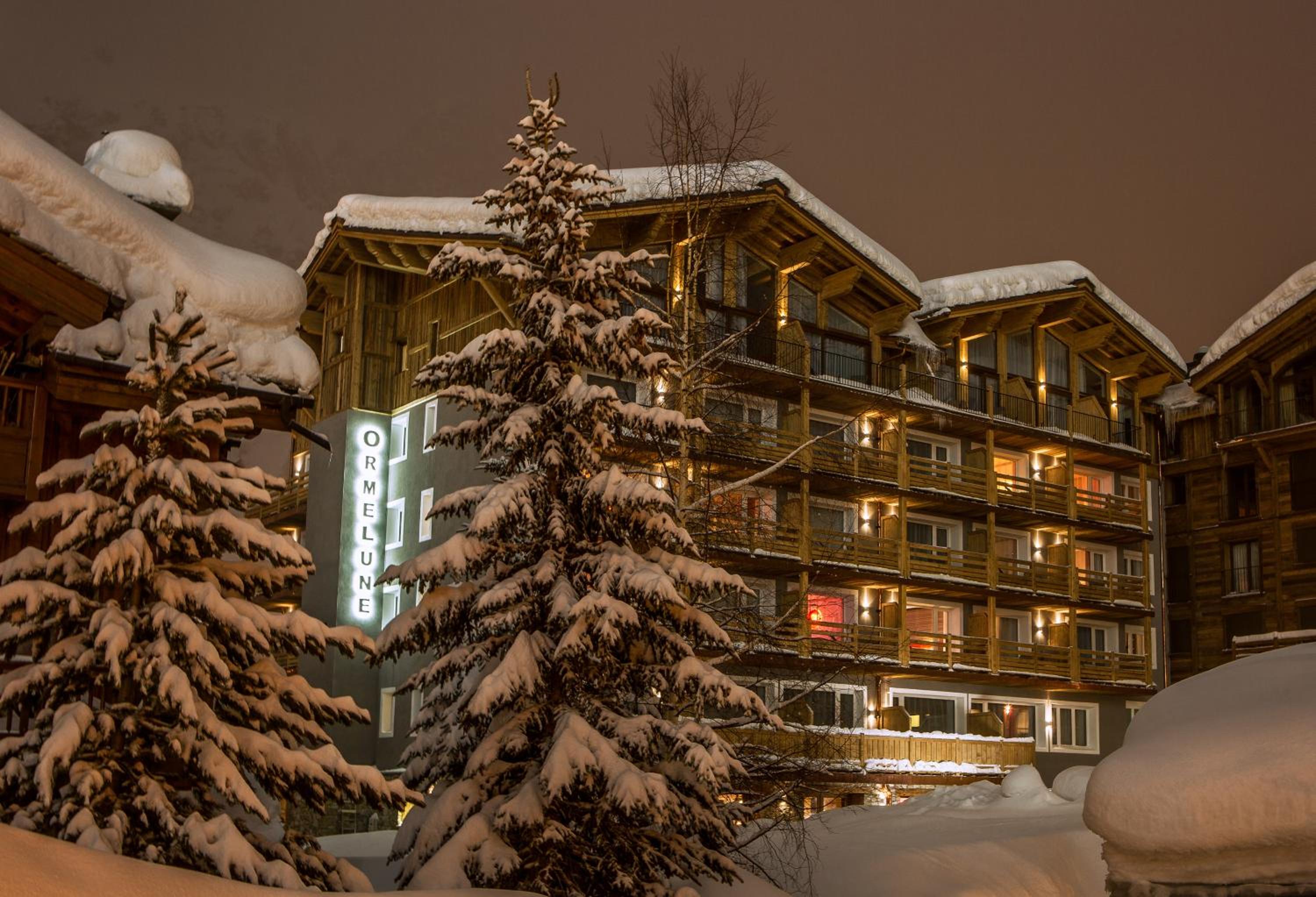 The hotel Ormelune in Val d'Isère offers modern facilities and comfortable rooms spread across 4 categories over 4 floors. Enjoy stunning mountain views from south-facing rooms with balconies overlooking the ski runs, while other rooms provide a charming village vista.