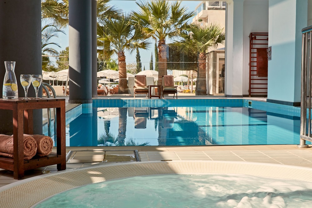 First solo holiday so let me say straight away, quality. I think this is potentially the nicest hotel ive stayed in, its the little things cava everyday for breakfast, the waiting staff dressed in white shirts black dickie bows white aprons. The cleaning staff wore black dresses with a frilly collar :) it was like something out of an Agatha Christie novel. Great food only had breakfast there lovely room great swimming pools, and the cliff top bar overlooking the bay wonderful. The location is the only down side as it is a 40 minute walk to Protaras but there are buses and taxis, round the corner i found two tavernas so they were brilliant as well.