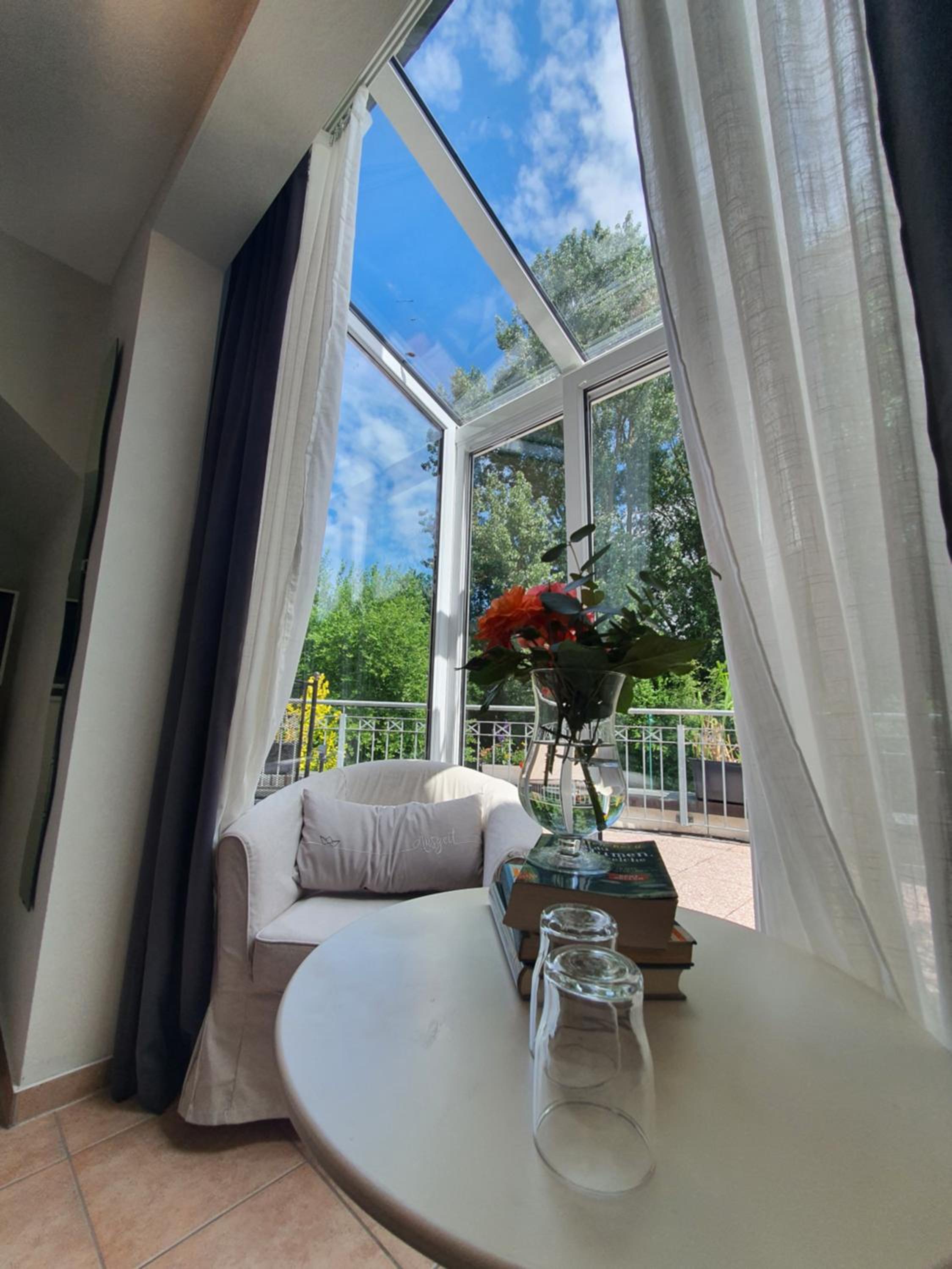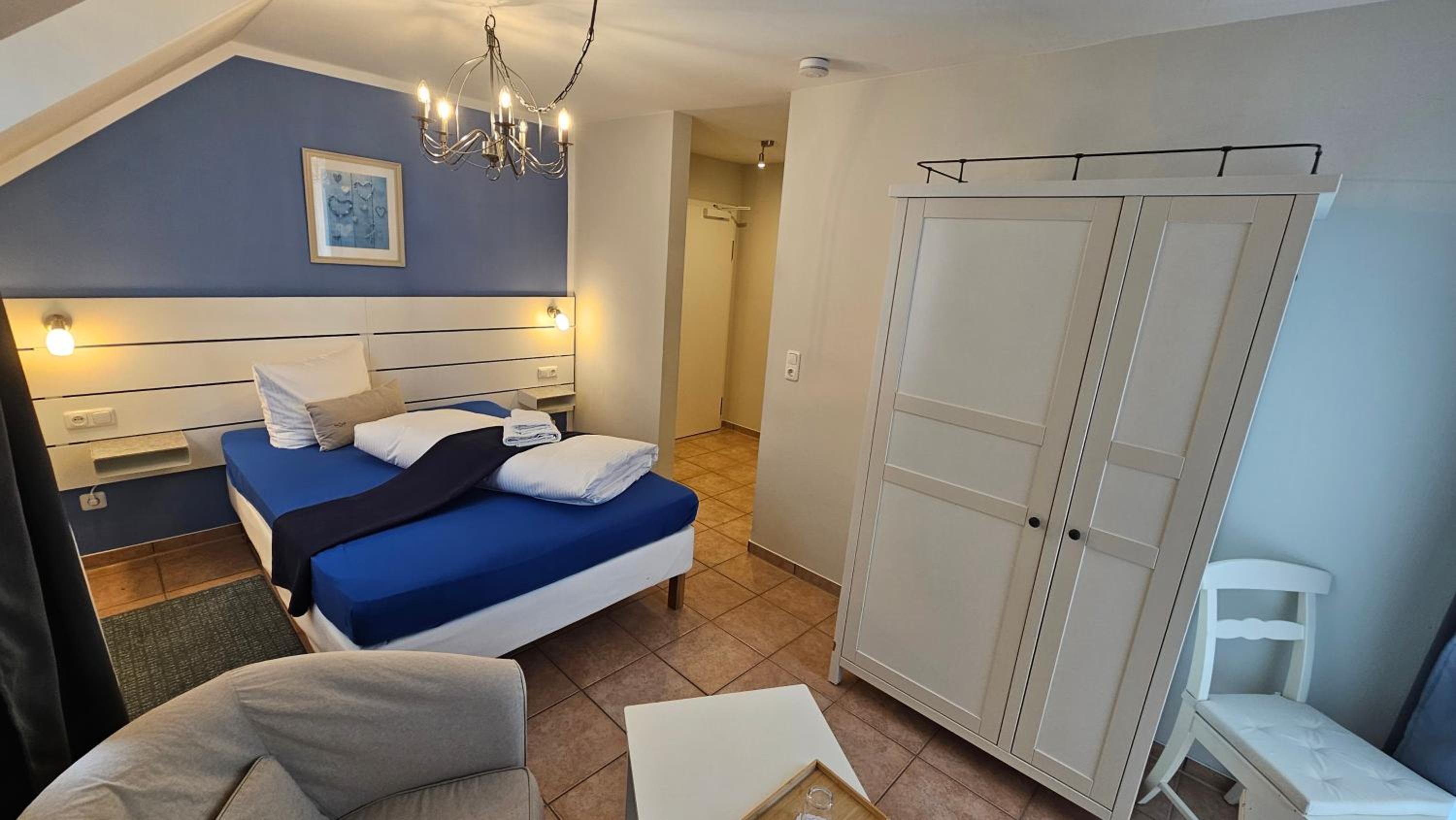 Bequeme Sitzmöbel fehlen. Im Bett chillen oder lesen schwierig durch Dachschräge.