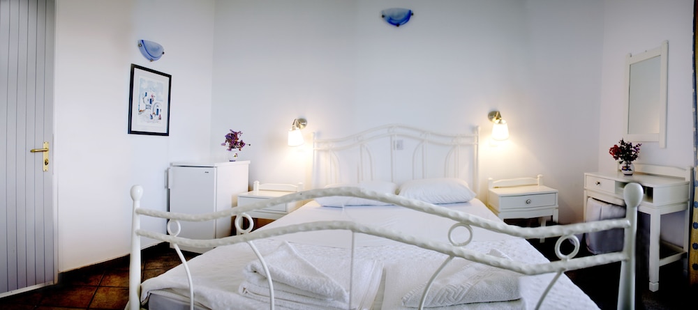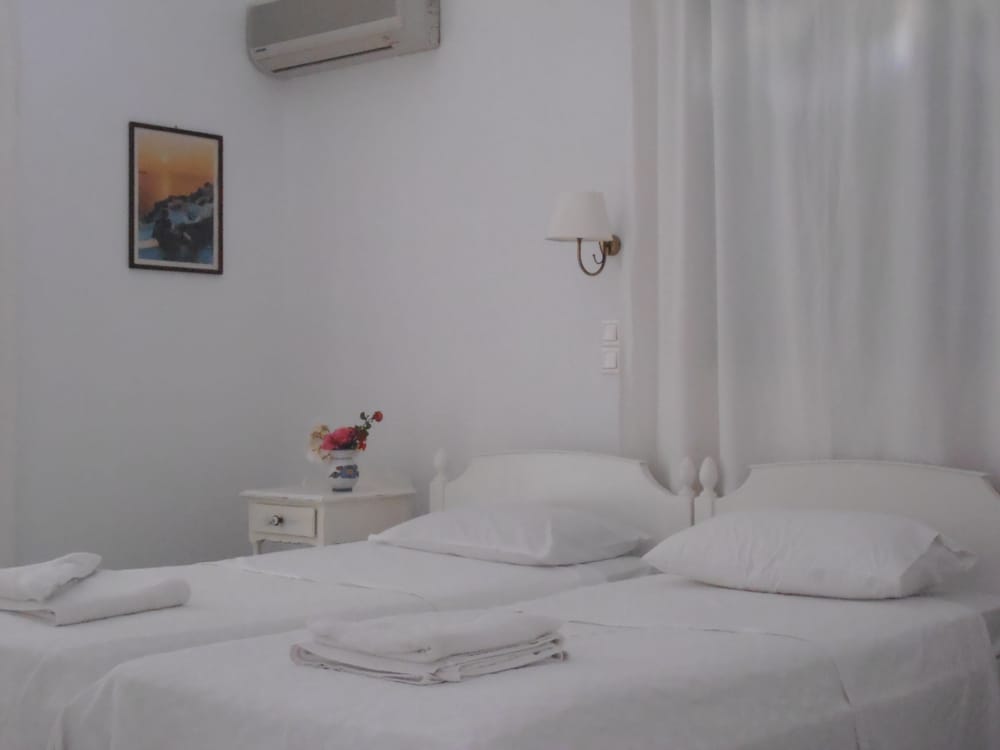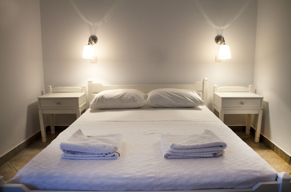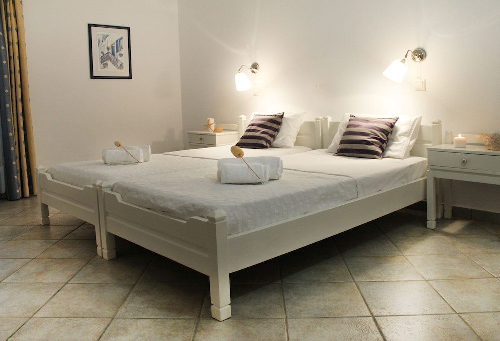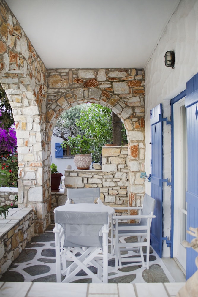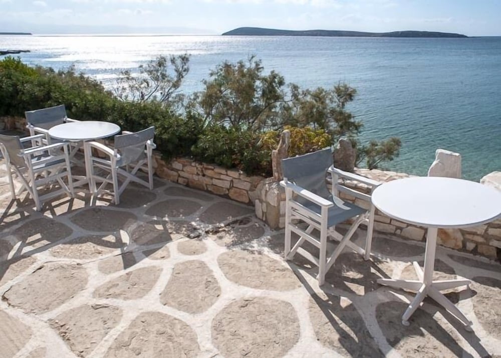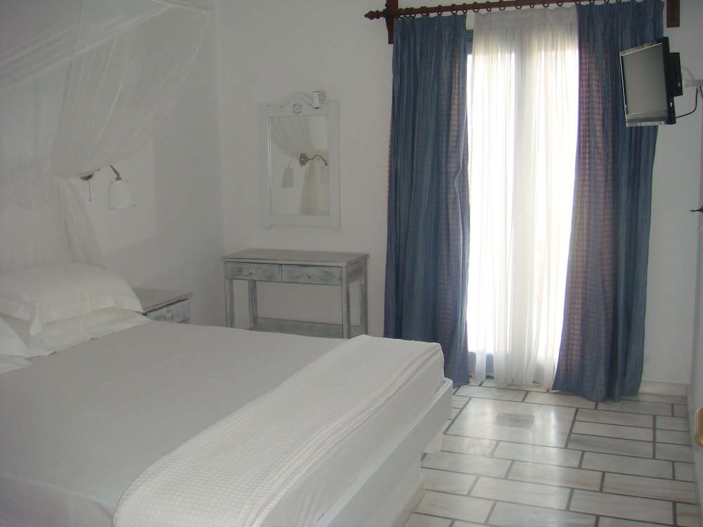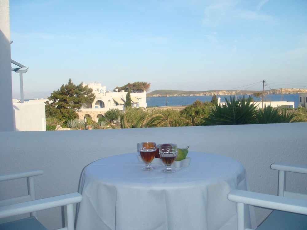 Hotel a gestione familiare, in un villaggio molto carino in posizione perfetta di fronte alla spiaggia di Drios di sassolini bianchi e a cinque minuti a piedi rispetto a due delle più belle spiagge dell'isola e vicino da una taverna dove si mangia molto bene il pesce. Il proprietario è sempre molto gentile e disponibile, la pulizia giornaliera delle stanze è accurata e la colazione a buffet è ottima. A rendere questo hotel una vera perla è l'atmosfera tipicamente greca, il piccolo e ben curato giardino, la posizione di fronte al mare a cui si accede con una scaletta direttamente dal giardino e la possibilità di raggiungere con una breve passeggiata la chiesetta di capo Pyrgos e le fantastiche spiagge di sabbia Golden Beach e New Golden Beach senza però rinunciare a soggiornare in una località tranquilla lontana dal caos anche in alta stagione. Rapporto qualita' - prezzo ottimo. Vacanza fantastica!