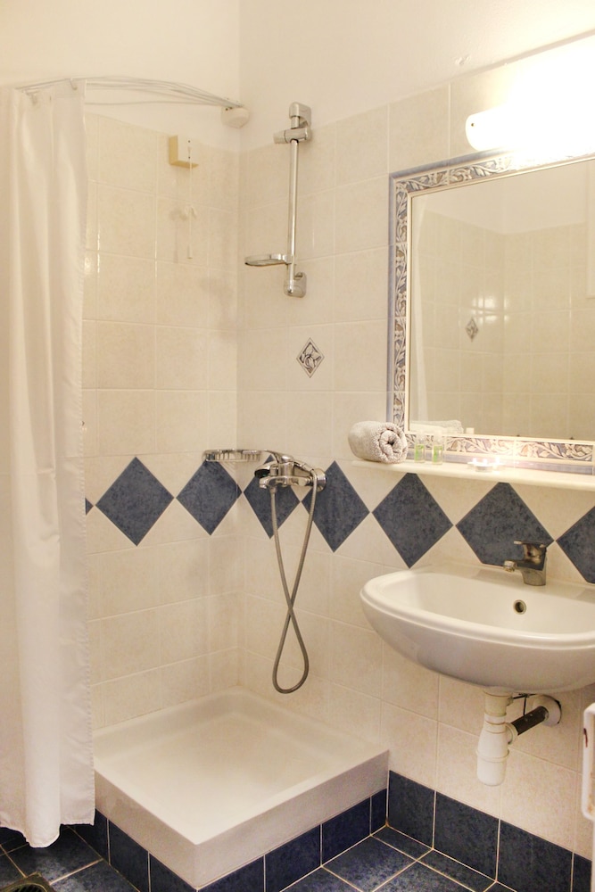 TV had no channels that worked. Also the room we had did not have a place to hang the shower head. The shower curtain was a good idea. Besides that, everything was great! Convenient location if you want to be away from the major tourist areas. A tavern and ice cream shop is located within steps of the hotel.