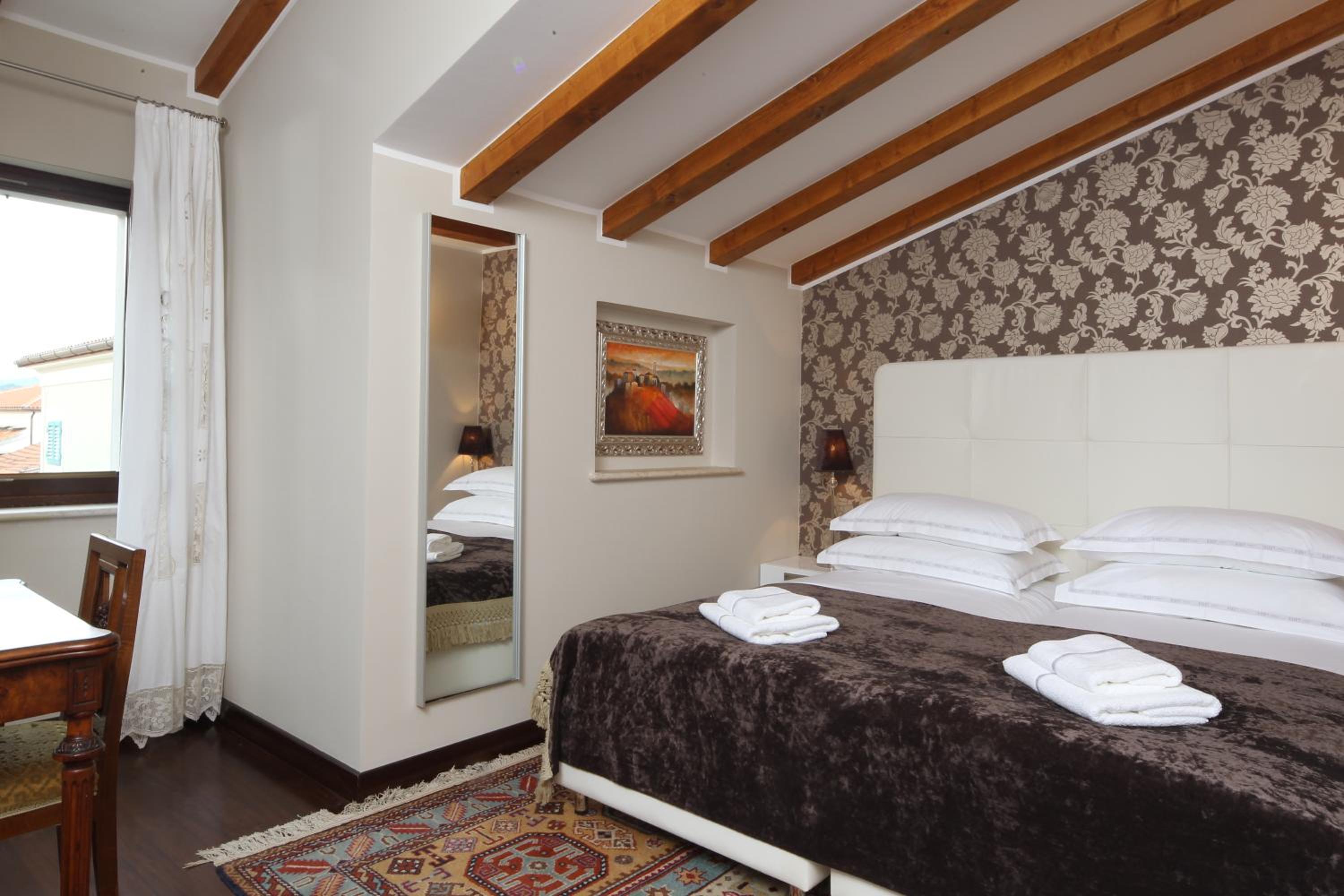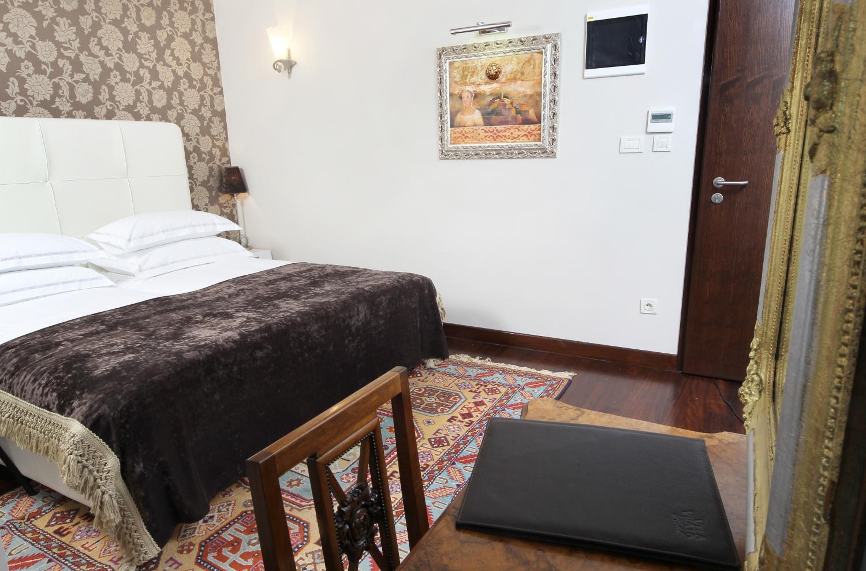 Luxurious Accommodations: Enjoy modern amenities like satellite TV, free Wi-Fi, and minibar in every guest room at Botique Hotel Vela Vrata. The sleek bathrooms with hairdryers add a touch of elegance to your stay.