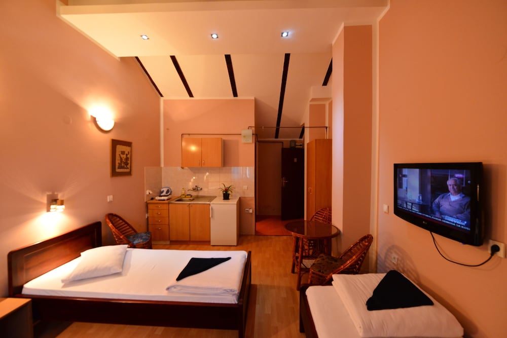 Nice modern apartments owned by friendly folks. It was a bit hard to find as the GPS pointed us to a location around the block, and there's no big sign on the street for the apartments. It's a busy street traffic-wise, so it can be a bit noisy, but the nice thing is that it does have wooden shutters for the windows which block out a lot of the noise.
