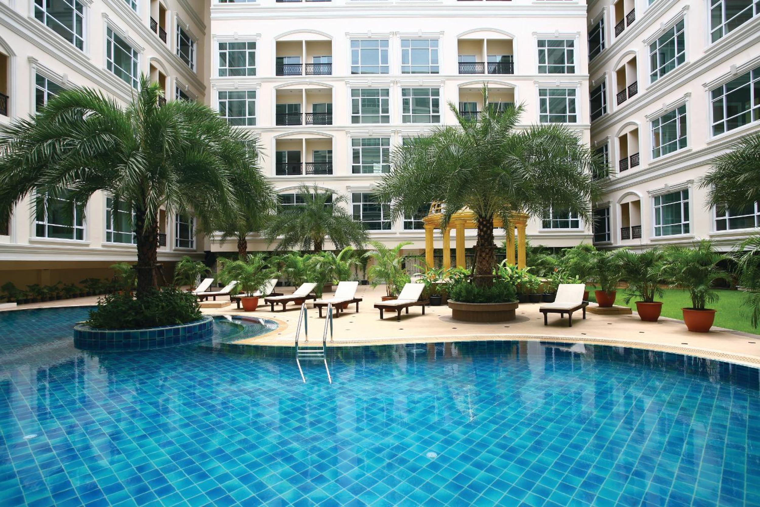 Unwind and revitalize in style with our outdoor swimming pool, sauna, steam room, and fitness center. Perfect for relaxing after a day of work or exploring the nearby shopping centers and entertainment options.