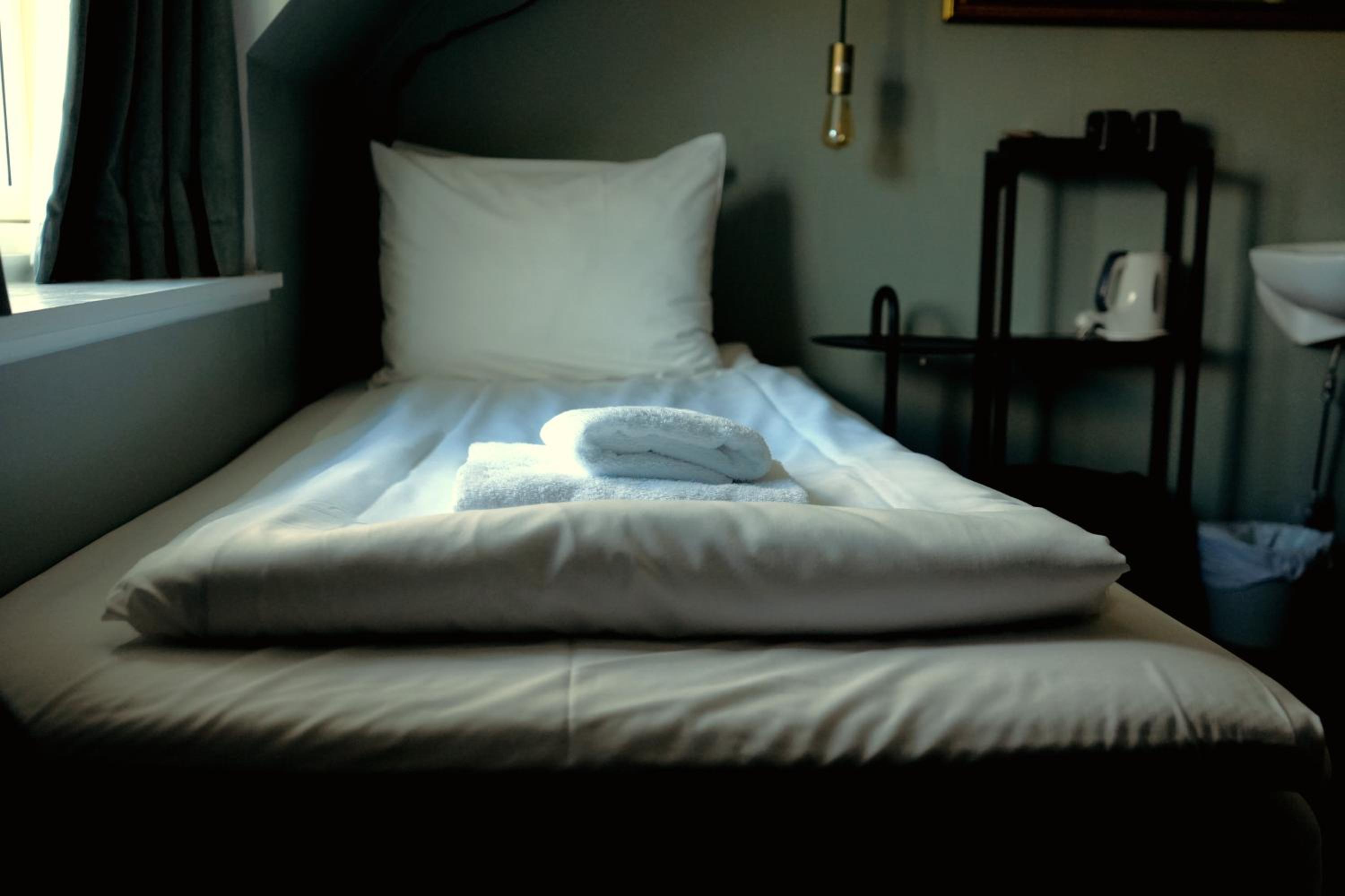 Located on the edge of town, the rooms are clean, small and basic. Our double room had an amazing view of the fjord across the road. The rooms are only 10 sqm including a bathroom that makes ingenious use of the small space - a shower screen that folds in two to fit; a small sink; shelves and towel hooks.