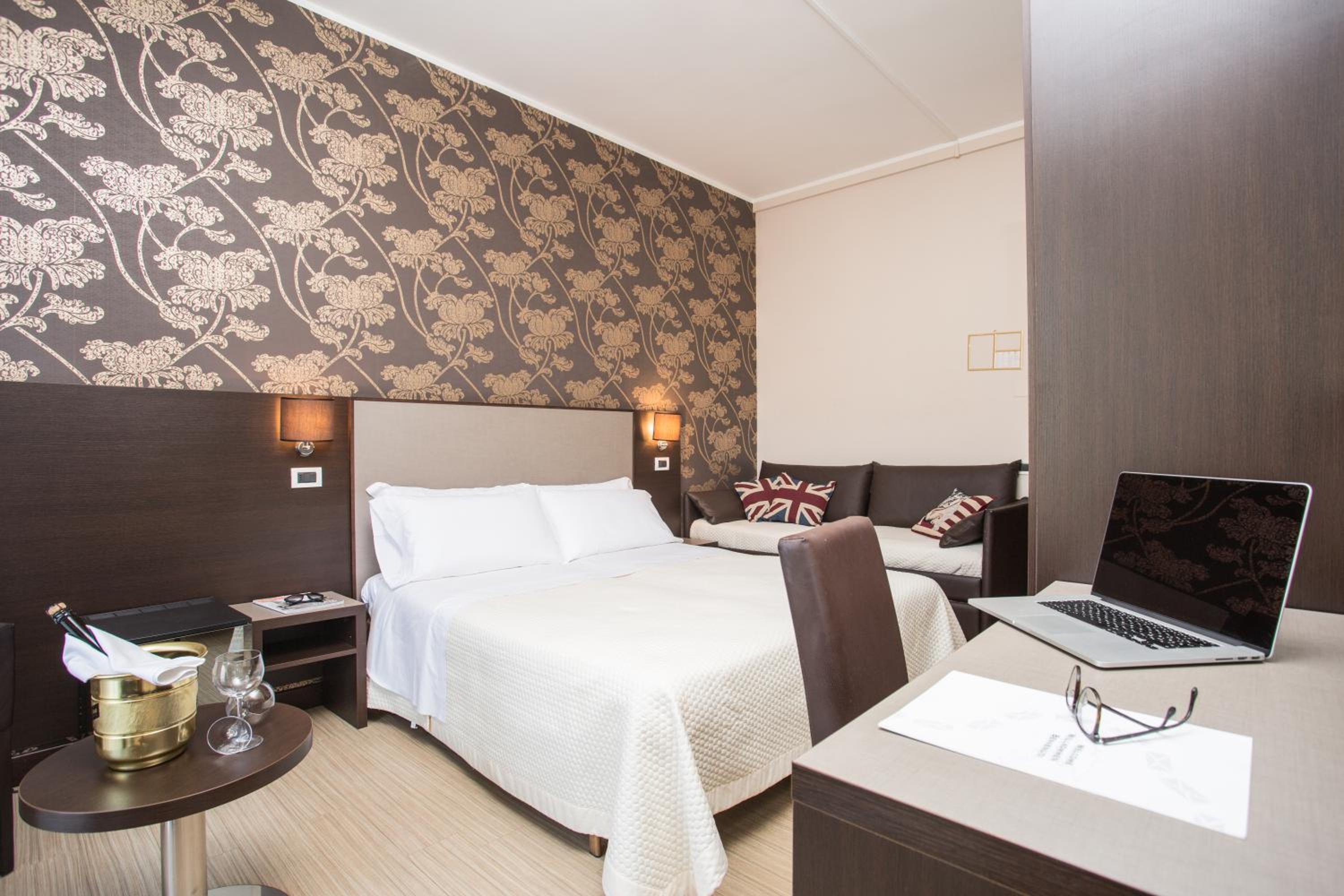 Camere con arredamento cupo e freddo, staff della colazione disattento nella gestione delle intolleranze alimentari (probabilmente perché in pochi rispetto alla clientela) difatti i tavoli erano tutti sporchi dai clienti precedenti.