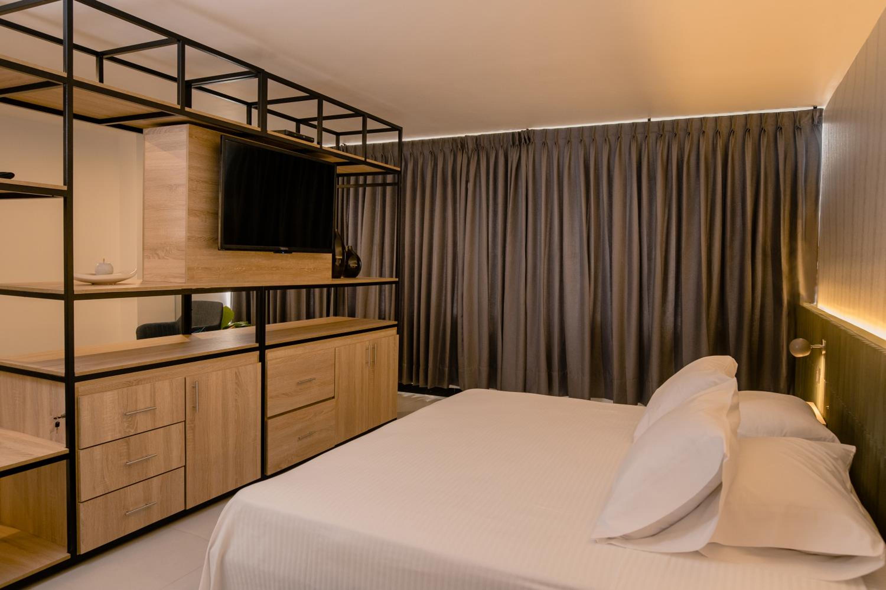 Experience comfort and elegance in our rooms at The Principe, featuring decorative bedding, queen-size beds, and private balconies with picturesque views of Tuluá.