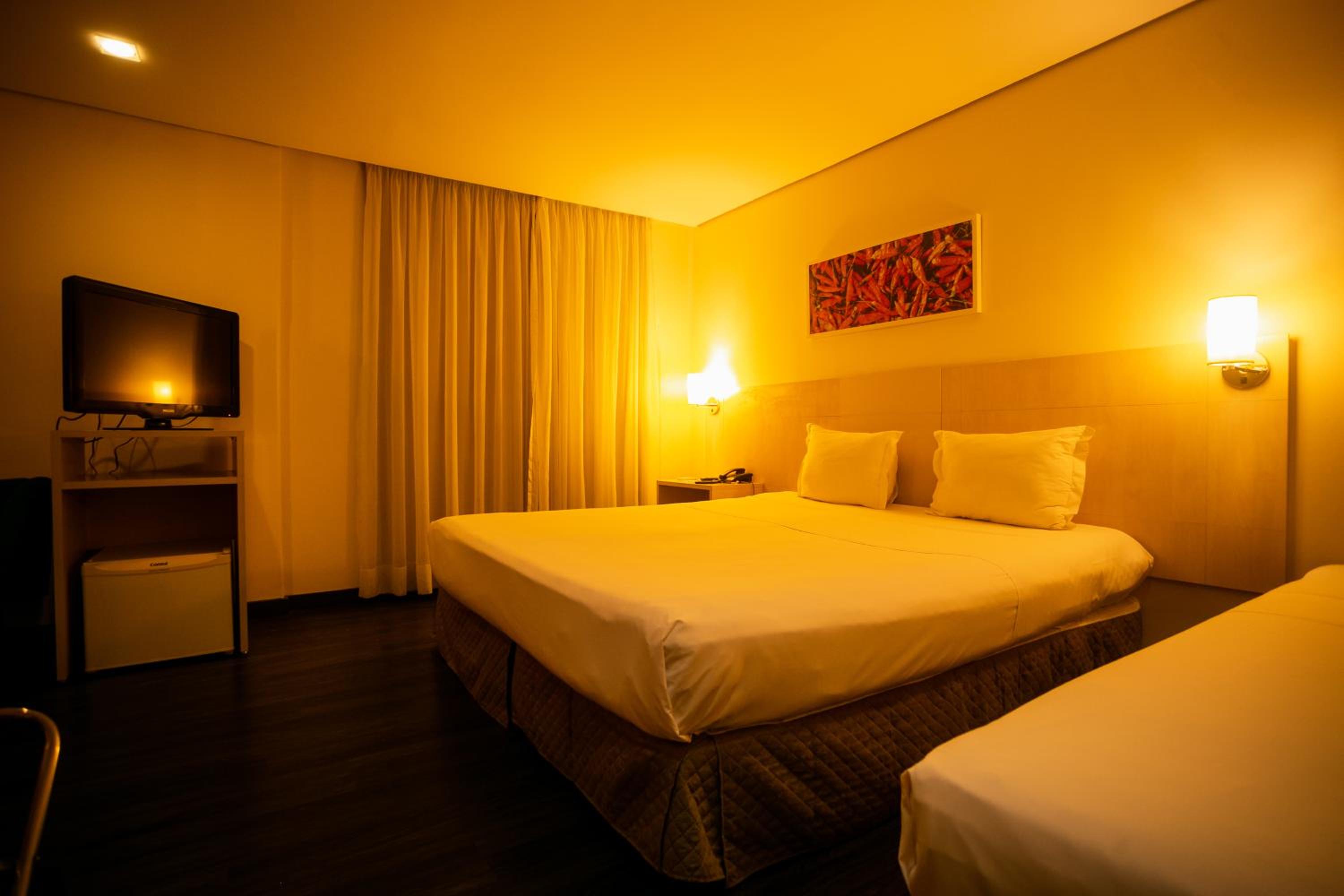 Quarto, cama grande e confortável, localização excelente.