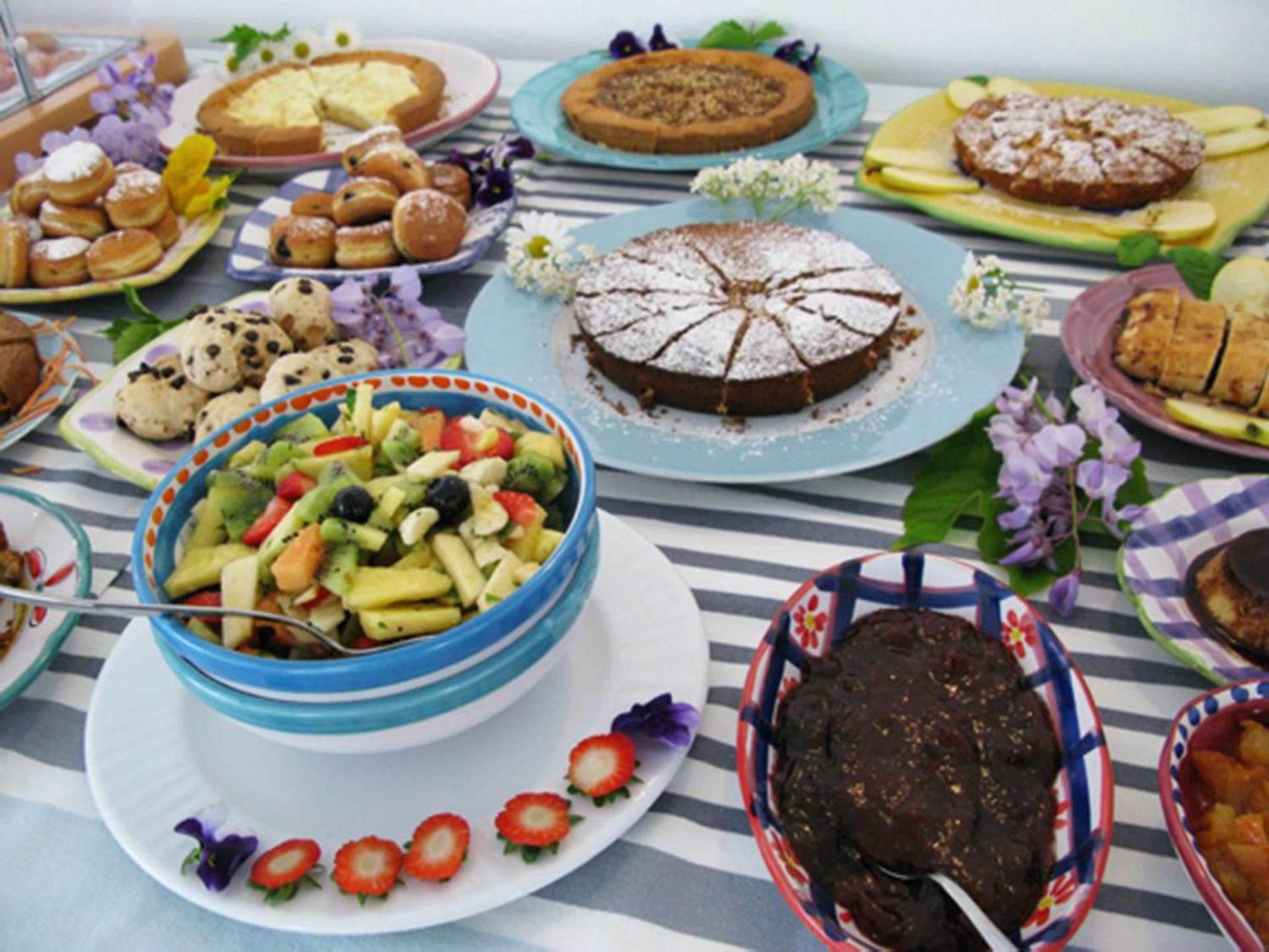 Az ízletes reggeli friss alapanyagokból helyben készült. Rendkívül széles kínálat volt mindenből!
