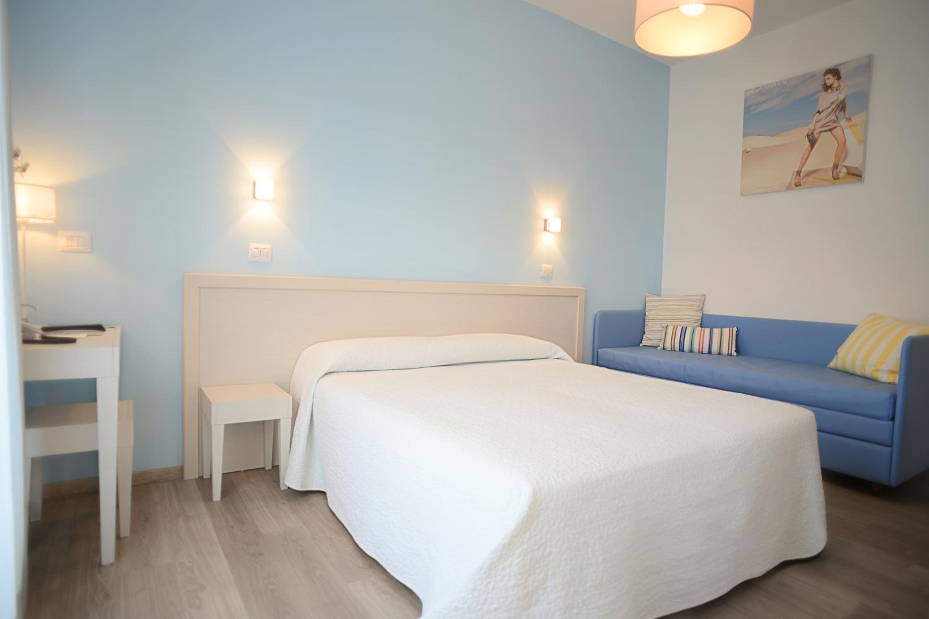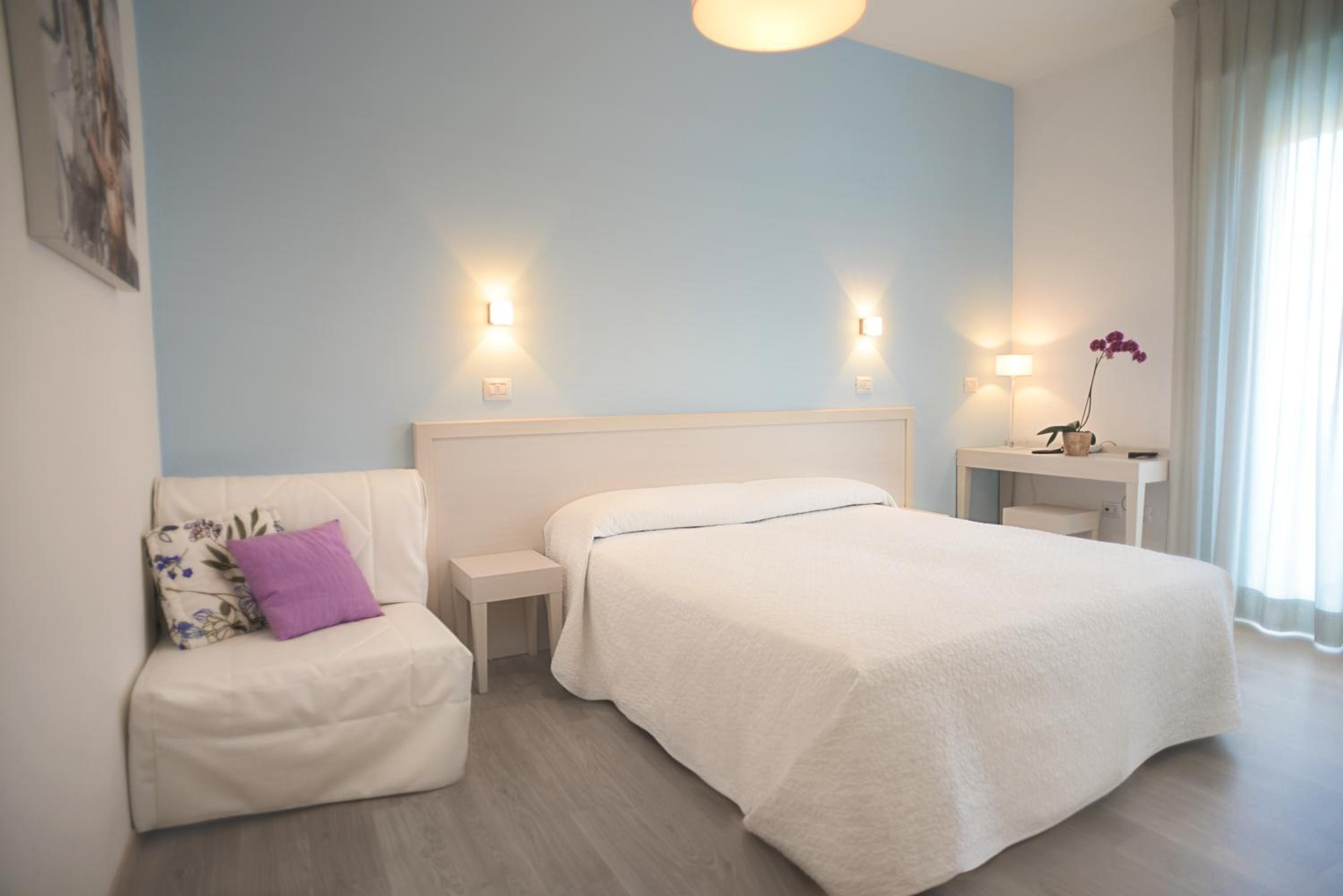 Ambiente accogliente e pulito, curato nell'arredo. Personale estremamente gentile. Non appena arrivati ci si sente subito come a casa. La camera è spaziosa e luminosa, dotata di tutti comfort. La colazione a buffet è ricca e variegata con tantissime torte fatte in casa e una parte salata. La posizione è perfetta, a 2 passi dal mare e vicina al centro raggiungibile con una piacevole passeggiata. L'hotel mette a disposizione gratuitamente le biciclette. È presente un parcheggio interno ma nel caso sia pieno è possibile parcheggiare lungo la strada. Peccato aver fatto solo una notte, torneremo di sicuro.