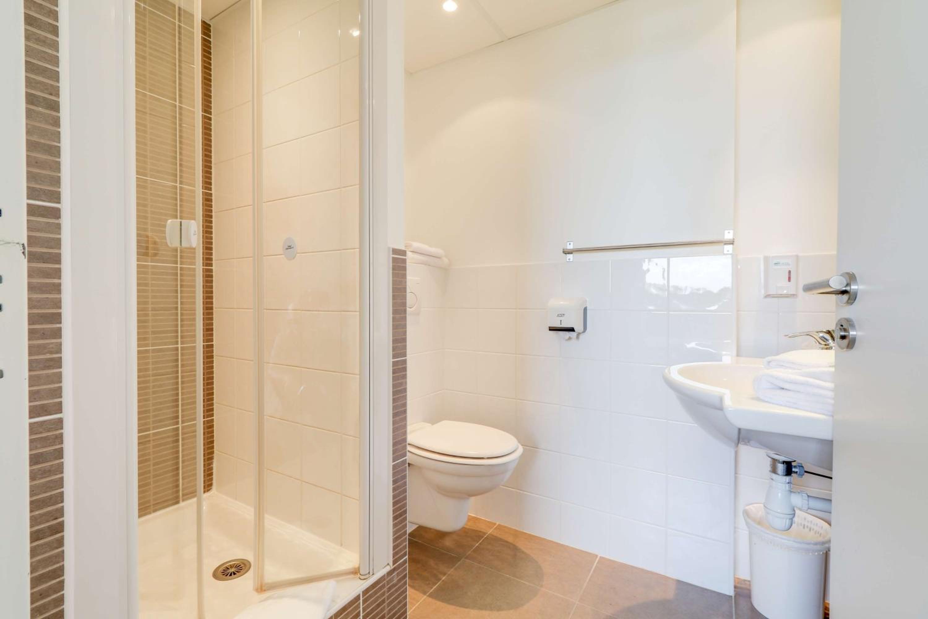 Côté chambre les rideaux aux fenêtres procurent une bonne opacité. A quelques minutes de la voie rapide, l'hôtel est facile d'accès et comporte un parking sécurisé par un code. Salle de bain simple avec douche / WC / lavabo, mais récente et impeccable. TV, Internet: aucun problème.