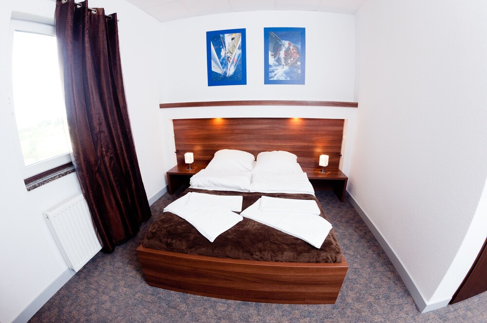 Havde bestilt et 6 pers værelse med enkeltsenge uden at kunne se billeder af værelset, da vi blot skulle overnatte en enkelt nat. Fik to sammenhængende værelser med fælles stort toilet og bad. Alt var rent og pænt, både senge og sengetøj er de bedste vi har prøvet i Polen indtil nu. Restaurant og bar på hotellet med udsigt over bådehavnen var god og meget velbesøgt. Hyggeligt med gåtur i området og kigge på bådene. Hotellet ligger tæt på et Outlet center, 7 min. i bil.