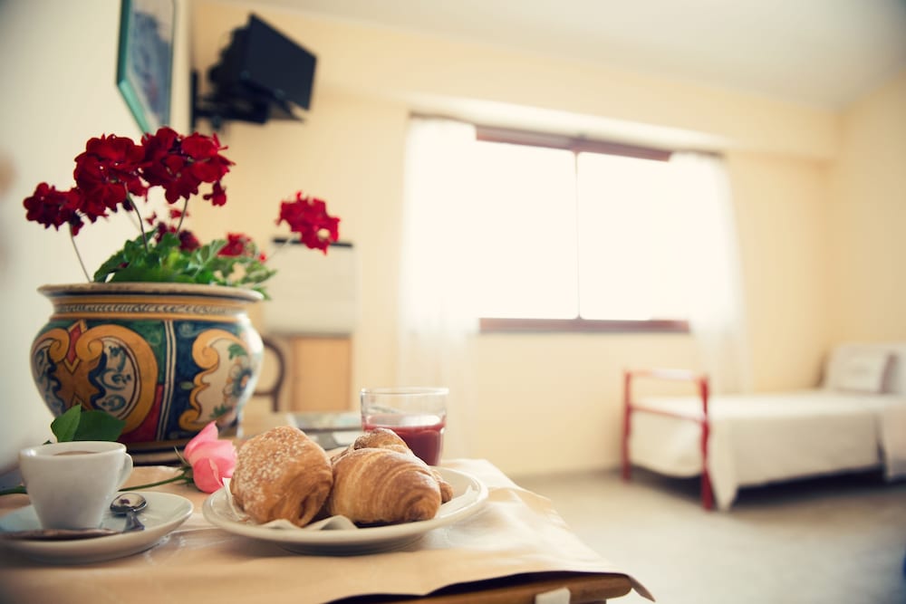 Hotel agréable pour un séjour prolongé, belle vue mer depuis la terrasse, chambres spacieuses, propres et bien équipées. Accueil agréable. Mention spéciale pour le petit déjeuner varié, frais et très bon. Belle piscine. Grand parking.