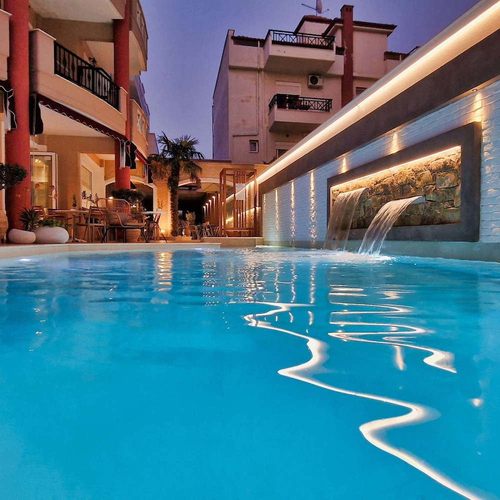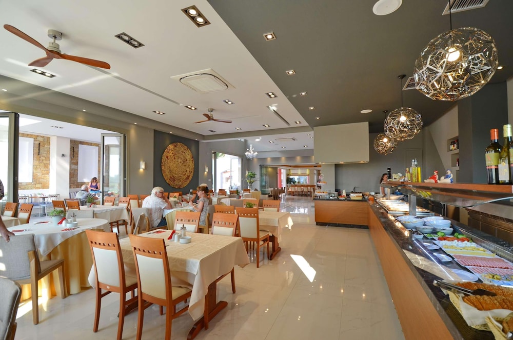 Kleinschalige accommodatie bestaande uit 3 delen. Hotel Evilion en Studio Appartementen Stilvi vormen een geheel. Hotel Evdion ligt er aan vast en deelt het zwembad. Slechts 80 mtr van het strand. Toeristische plaats met lange boulevard met diverse eetgelegenheden in het seizoen. Nu nog grotendeels gesloten.