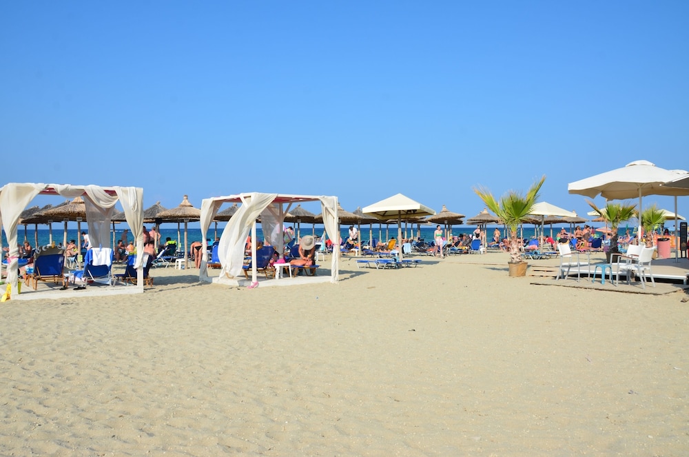 This place is great. It's at the end of a quiet village and has it's own beach which means you have more privacy while you hang out on the beach or in the water. I randomly found this place on my way between Thesoloniki and Athens and it was a real gem. The owners are extremely friendly and very welcoming. The staff are all wonderful. The views of the Aegean are amazing. I watched the sun rise over the Aegean and it's something I'll never forget. The town didn't seem overrun with tourists, just a lot of local Greeks so it has a much cooler vibe. I will definitely be back.