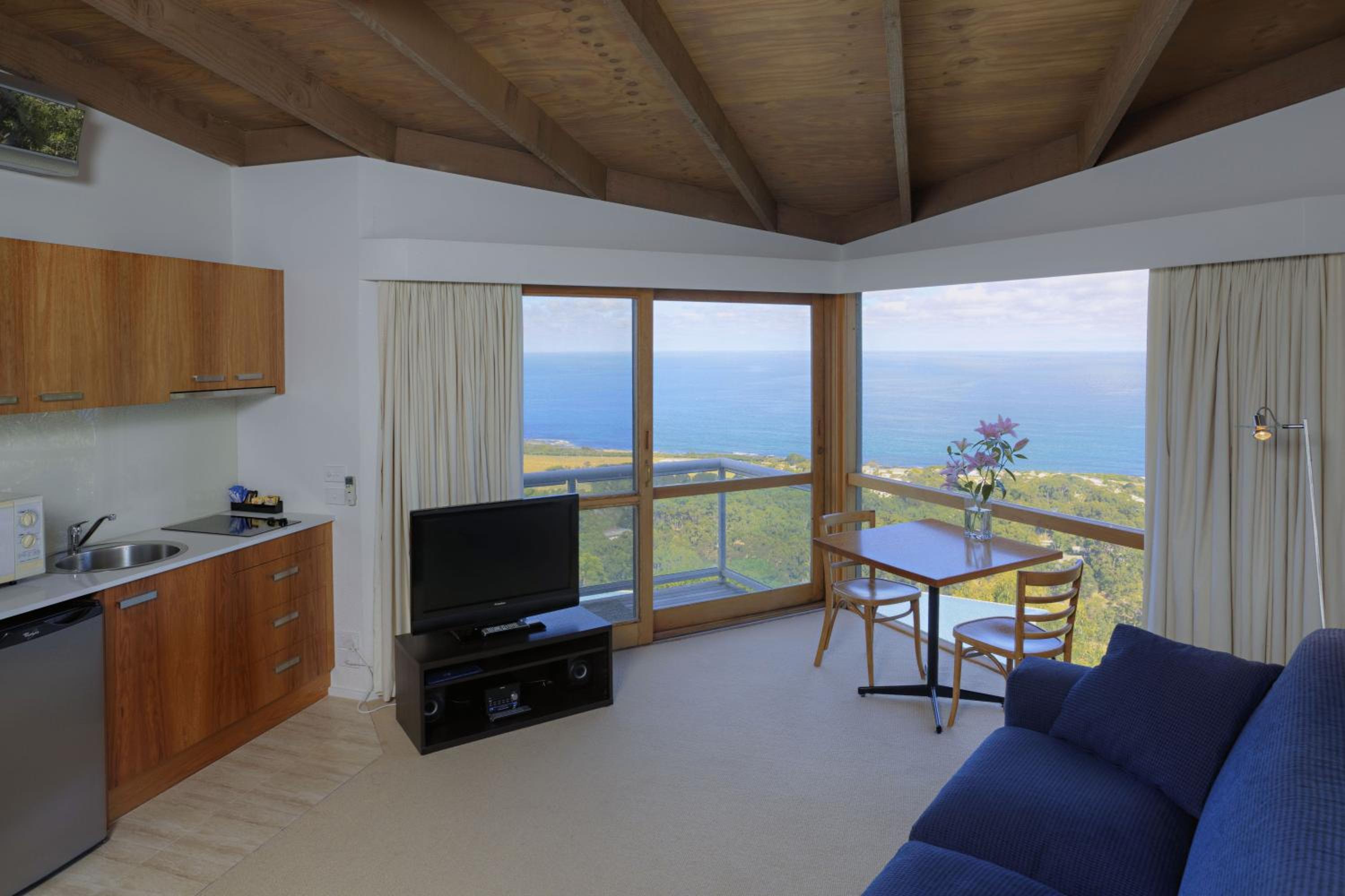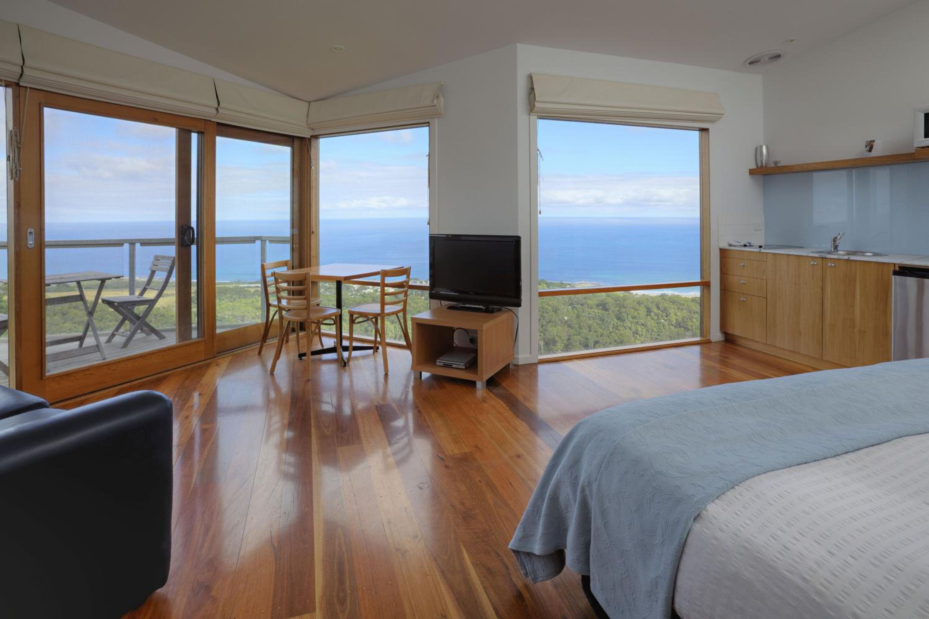 Perched in the Otway Ranges with stunning vistas of Bass Strait, Chris's Beacon Point Restaurant & Villas presents modern self-contained apartments featuring private balconies and sweeping ocean panoramas.