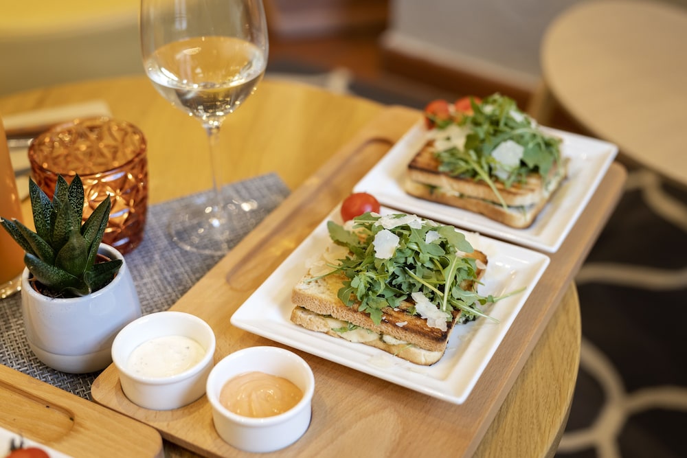 Savor a meal at the on-site restaurant or grab a snack at the cafe. End your day with a drink at the bar/lounge. Buffet breakfasts are served daily for a fee.
