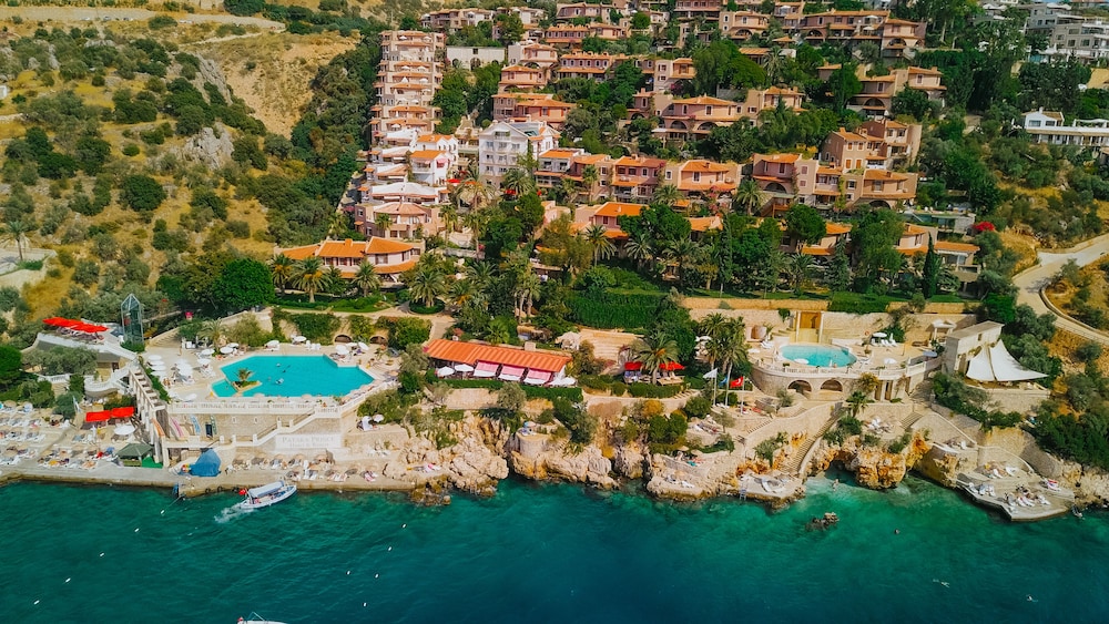 Otel kalkan çarşıya arabayla 5 dakika, yürüyerek de max. 10 dakika, kaş merkez 30 dakika. Konumu manzarası otelin iç peyzajı insanı cennette hissettiriyor. Kesinlikle resimlerde göründüğünden daha güzel. Personel yardımsever ve güleryüzlü. Akşam yemeği alakart biraz daha geliştirilebilir. Kahvaltısı ortalama otel kahvaltısı. Biz balayı için gittik aşık olduk. King Suit odasının manzarası mükemmel.