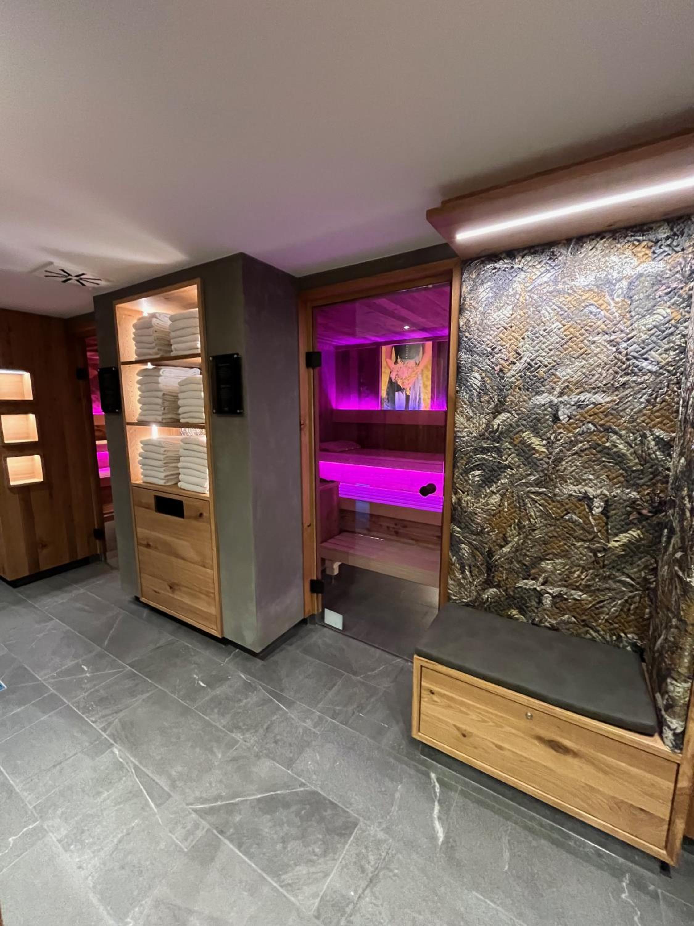 Im Wellnessbereich gibt es eine Saunagrotte und eine infrarotkabine; echt toll! Das Hotel liegt sehr zentral und man dort gut essen!