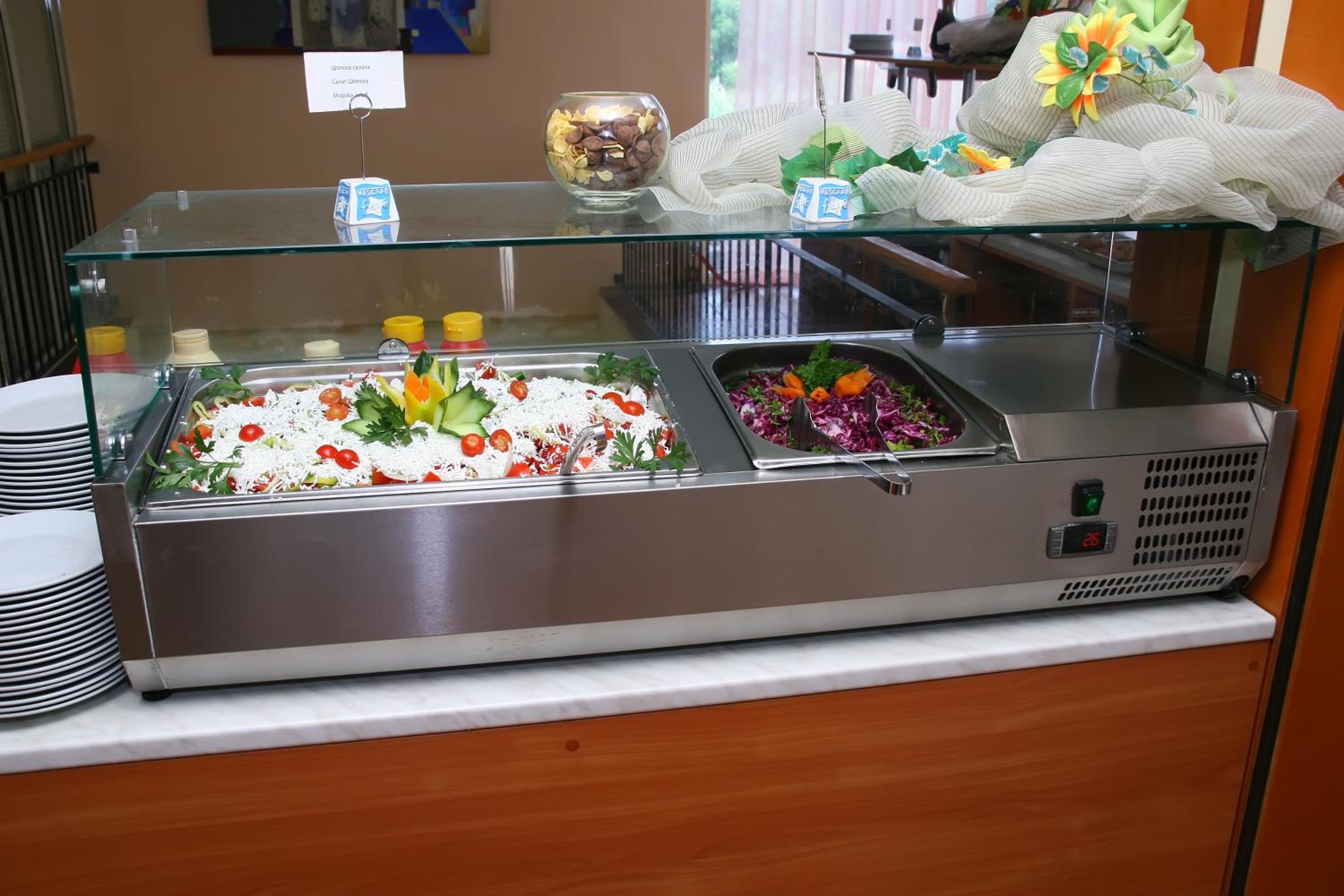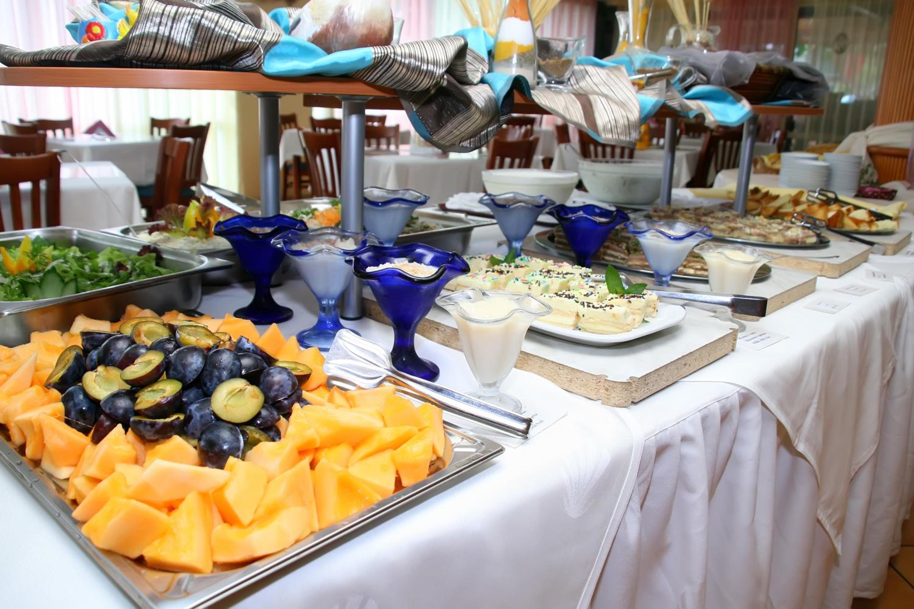 - Buffet lunch - from 12:00 until 14:00 o'clock - salads, hot and cold appetizers, main dishes, fruits, desserts, ice cream, drinks (coffee, tea, juice, water).