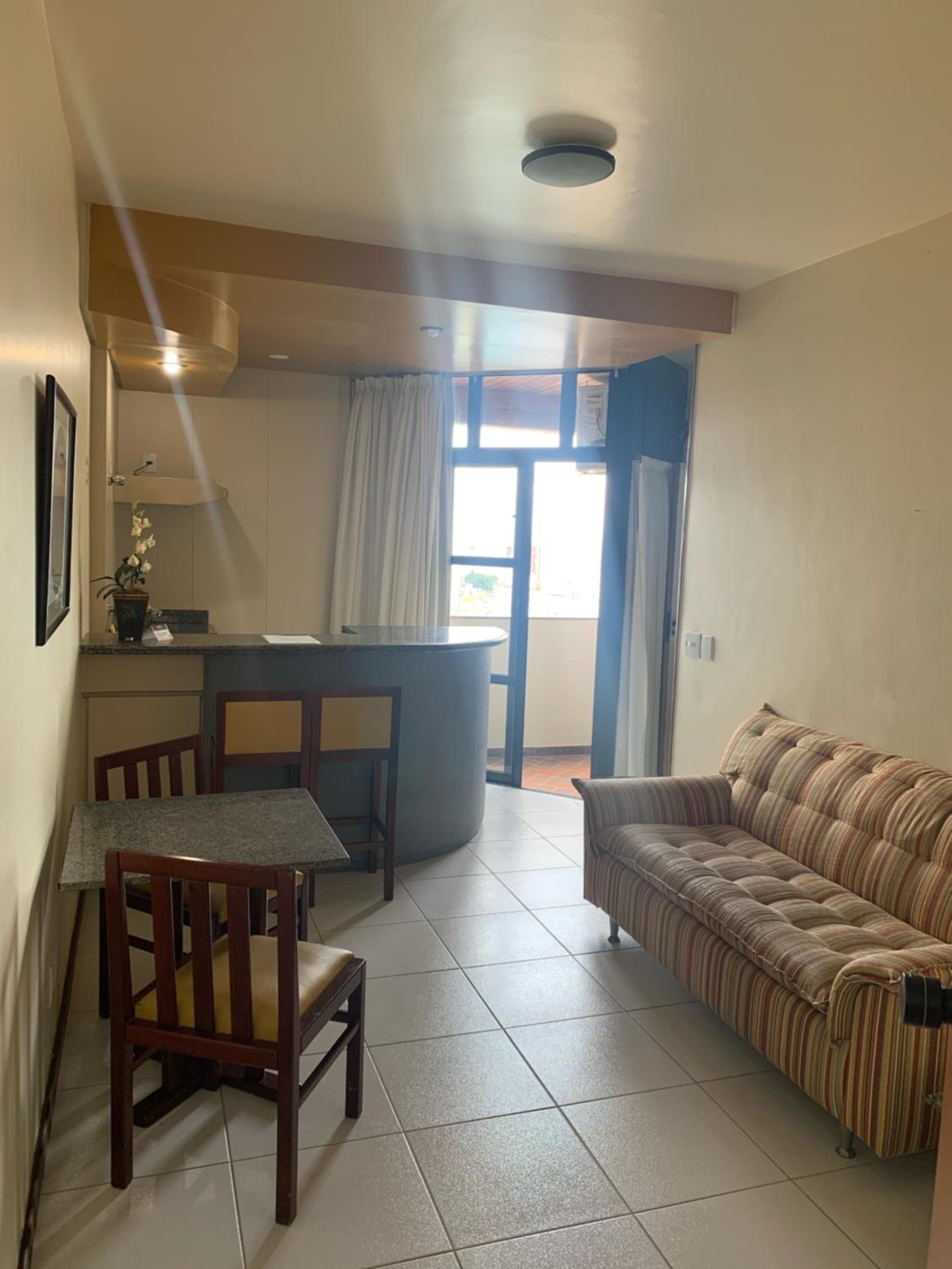Nada desabonador, mas as instalações são um pouco antigas e a estrutura de academia é muito básica. Também senti falta de um melhor espaço de trabalho no apartamento, uma cadeira de escritório já ajudaria bastante. A cozinha tem um fogão, seria interessante ter um micro-ondas.