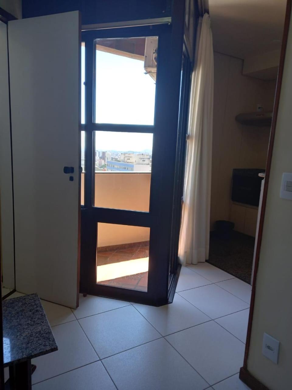 Quarto amplo com sacada, cama grande e confortável, localização.