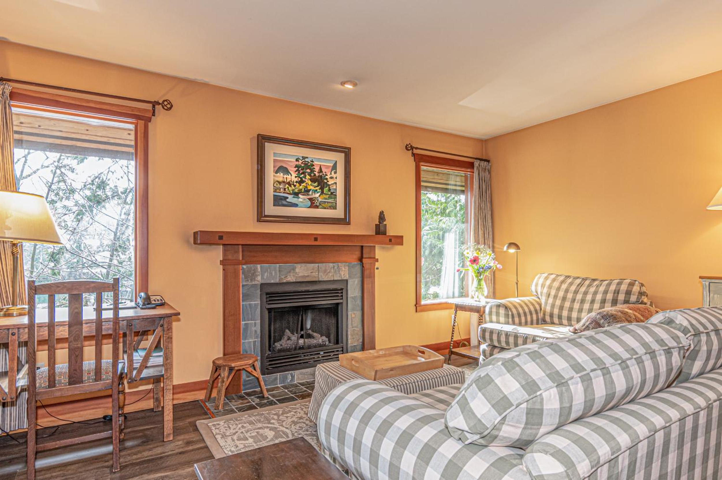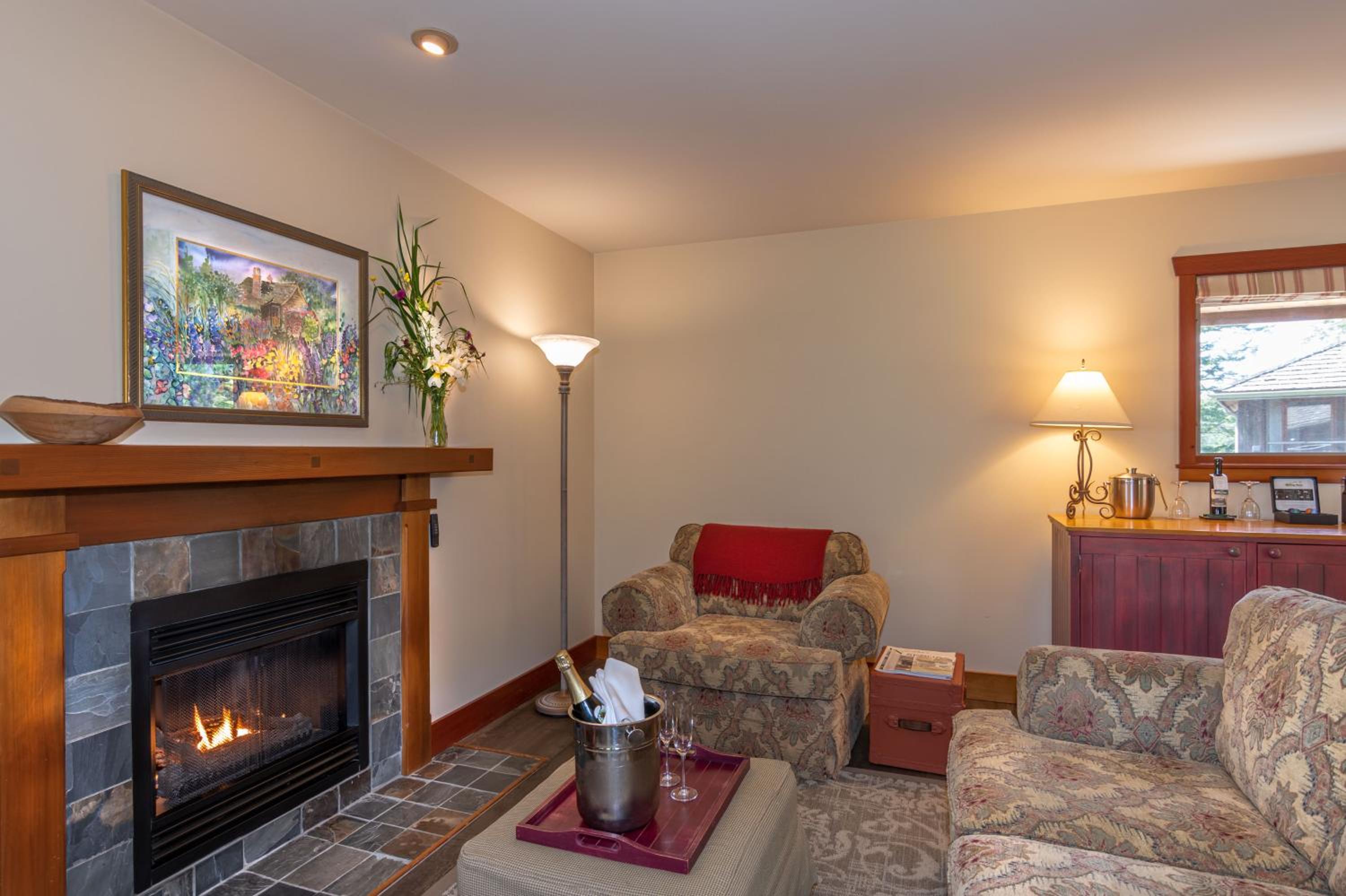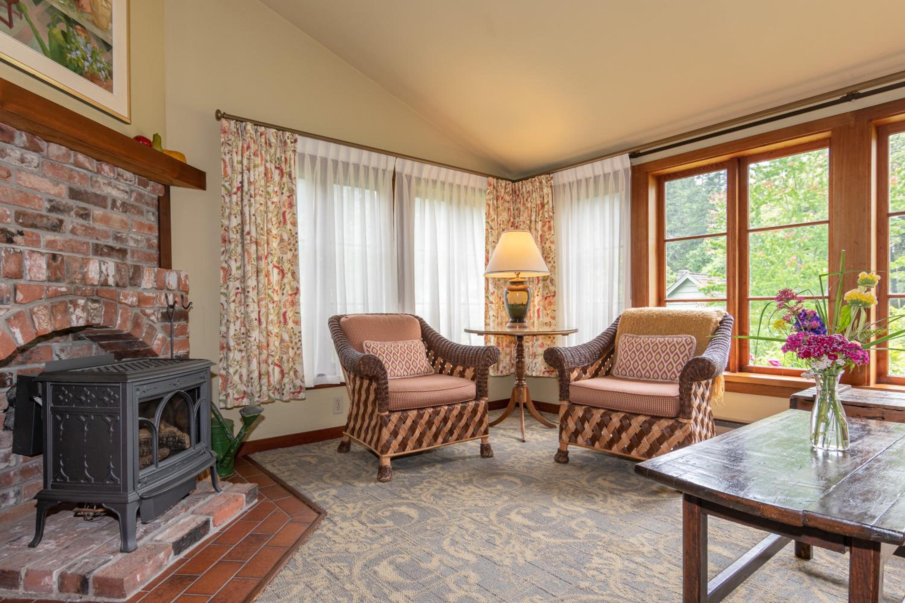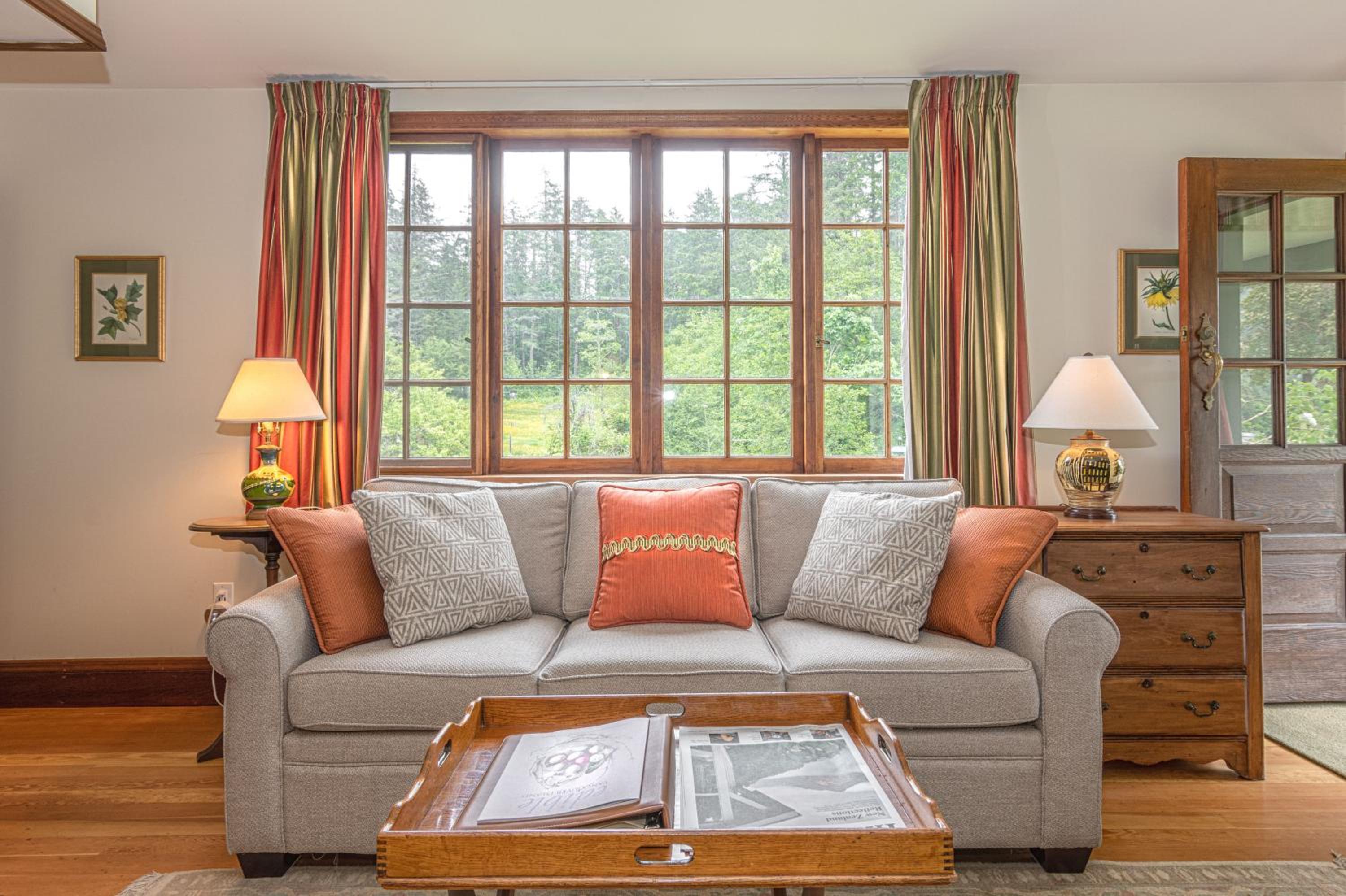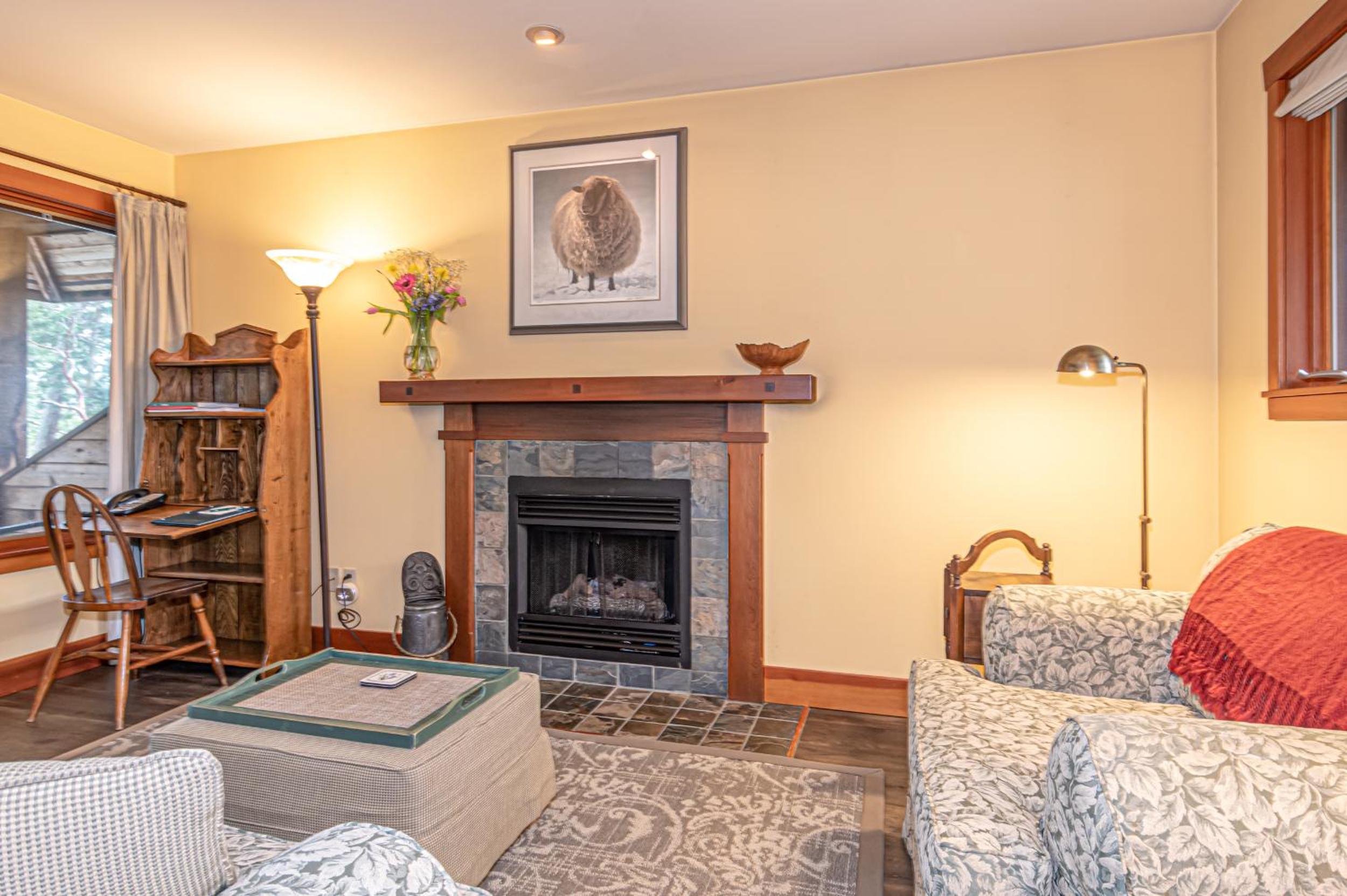 Unwind in the cozy living room by the fireplace or explore the expansive gardens. Experience serenity and natural beauty at every turn during your stay.