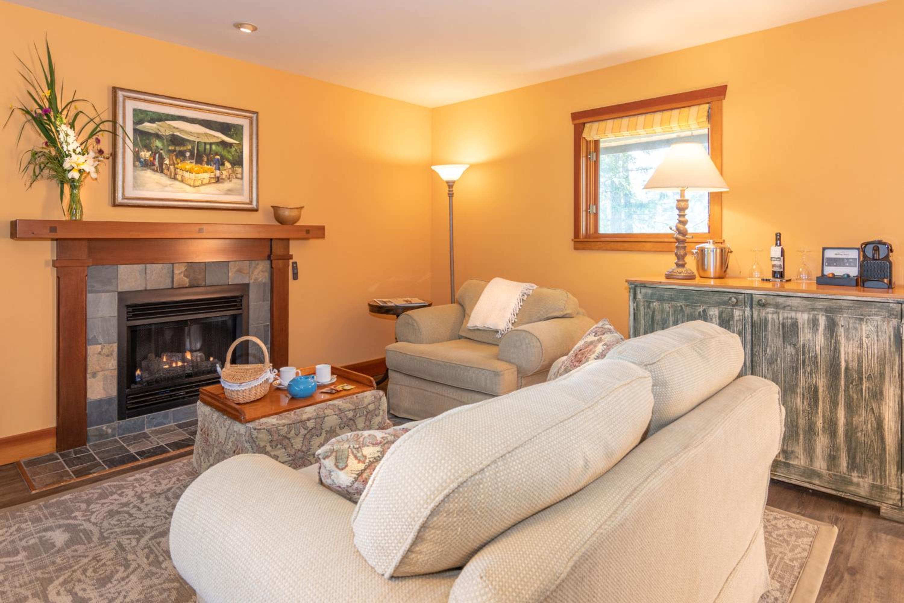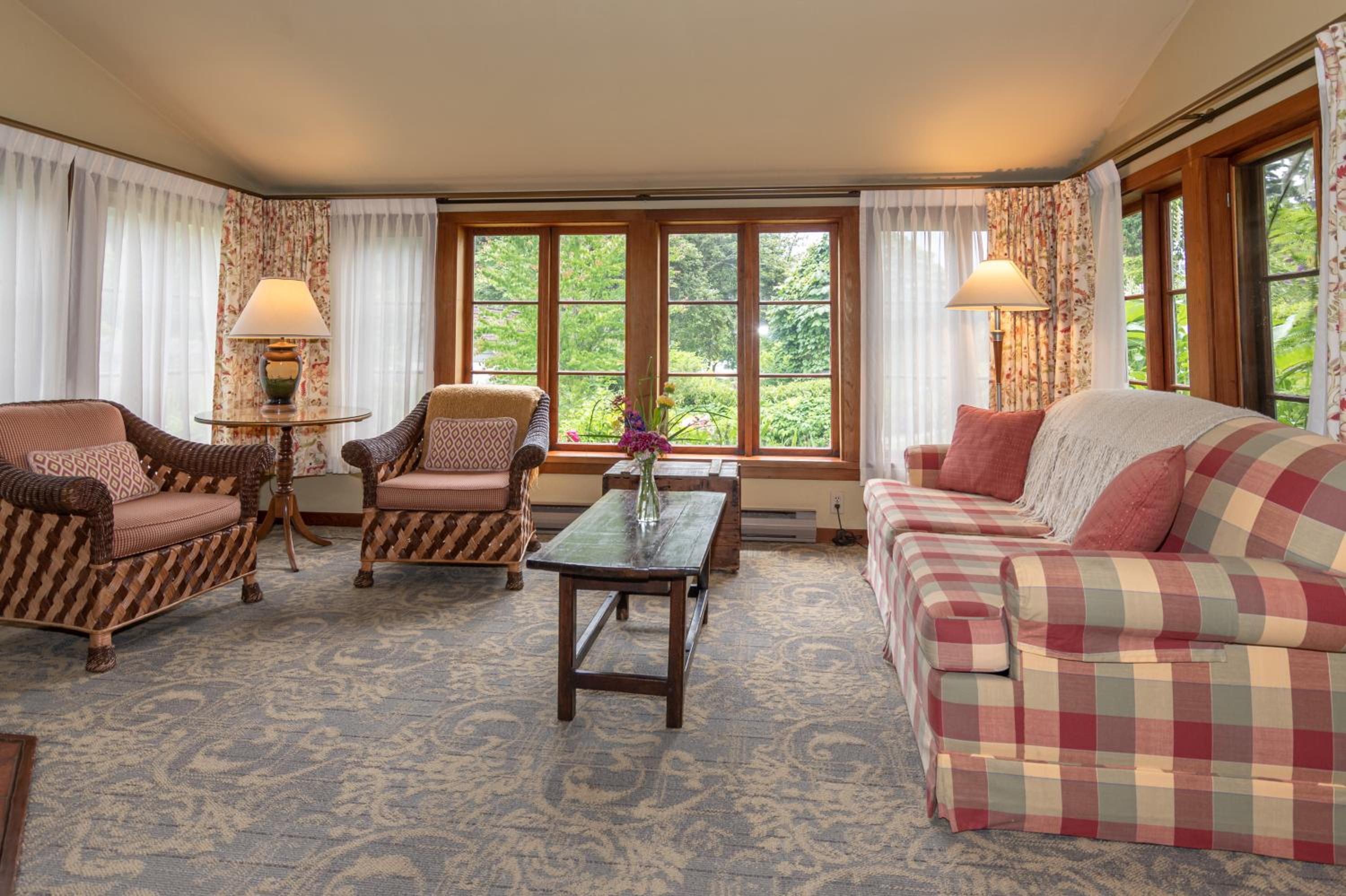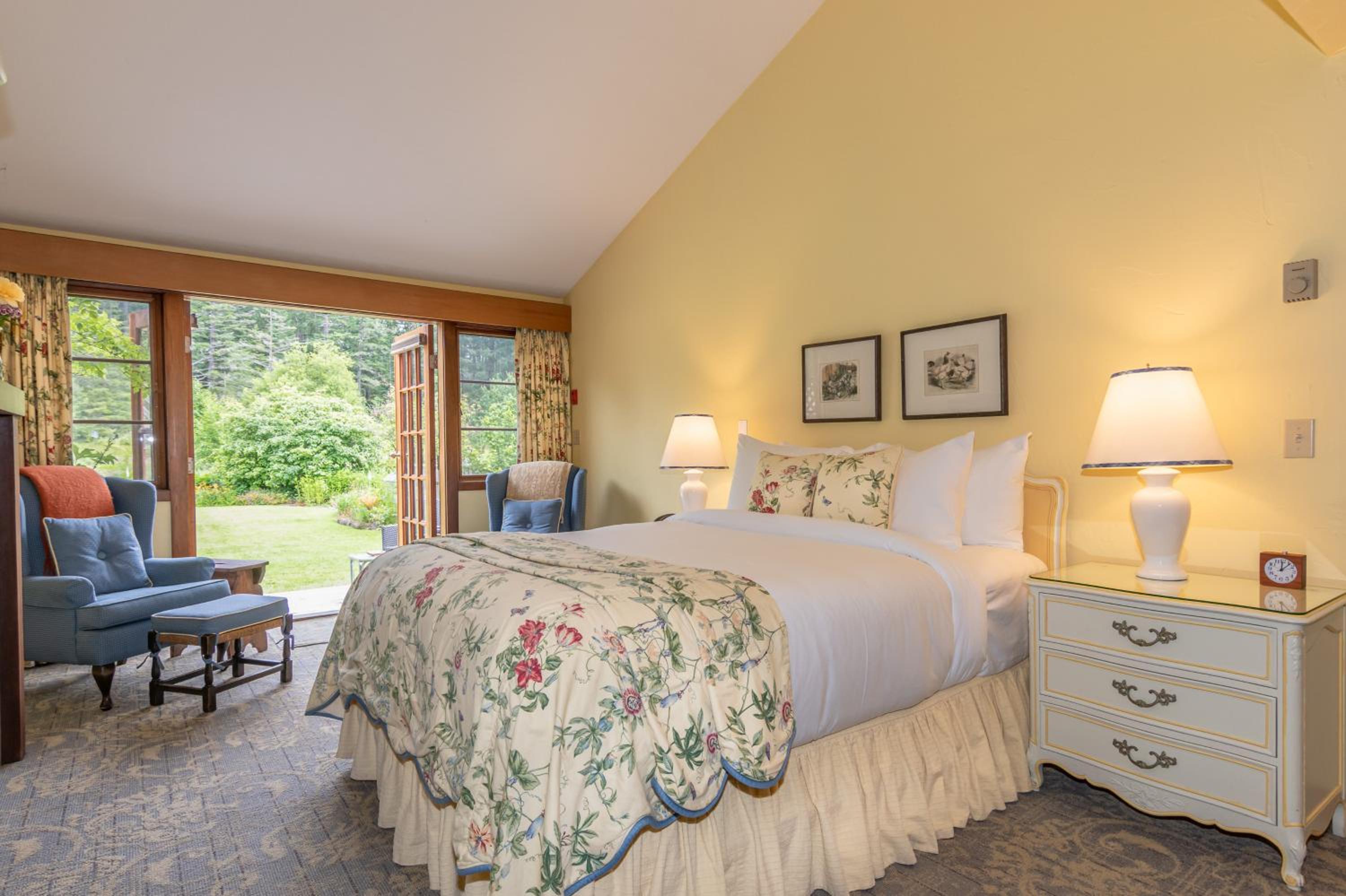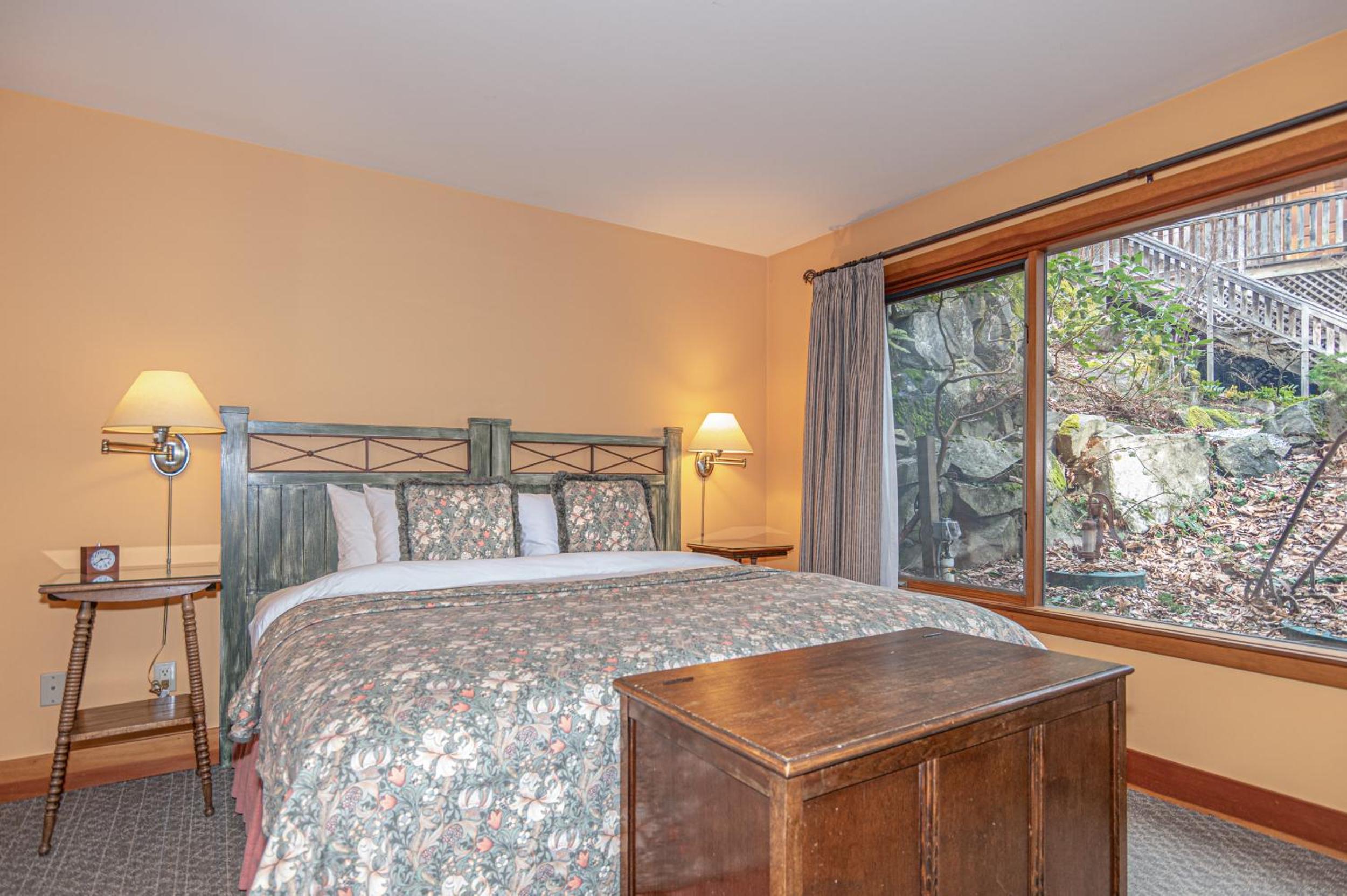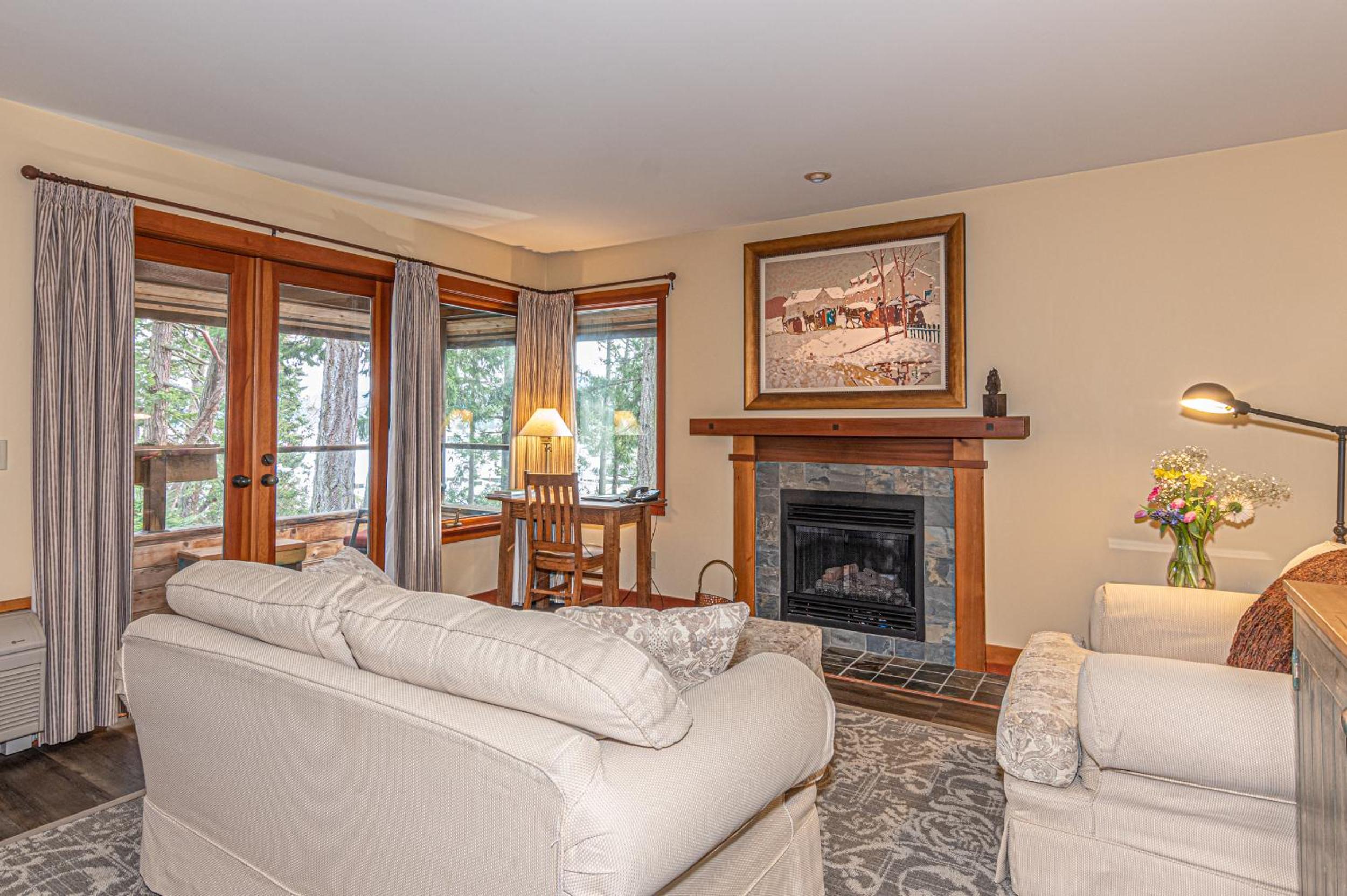 Unwind in the cozy living room by the fireplace or explore the expansive gardens. Experience serenity and natural beauty at every turn during your stay.