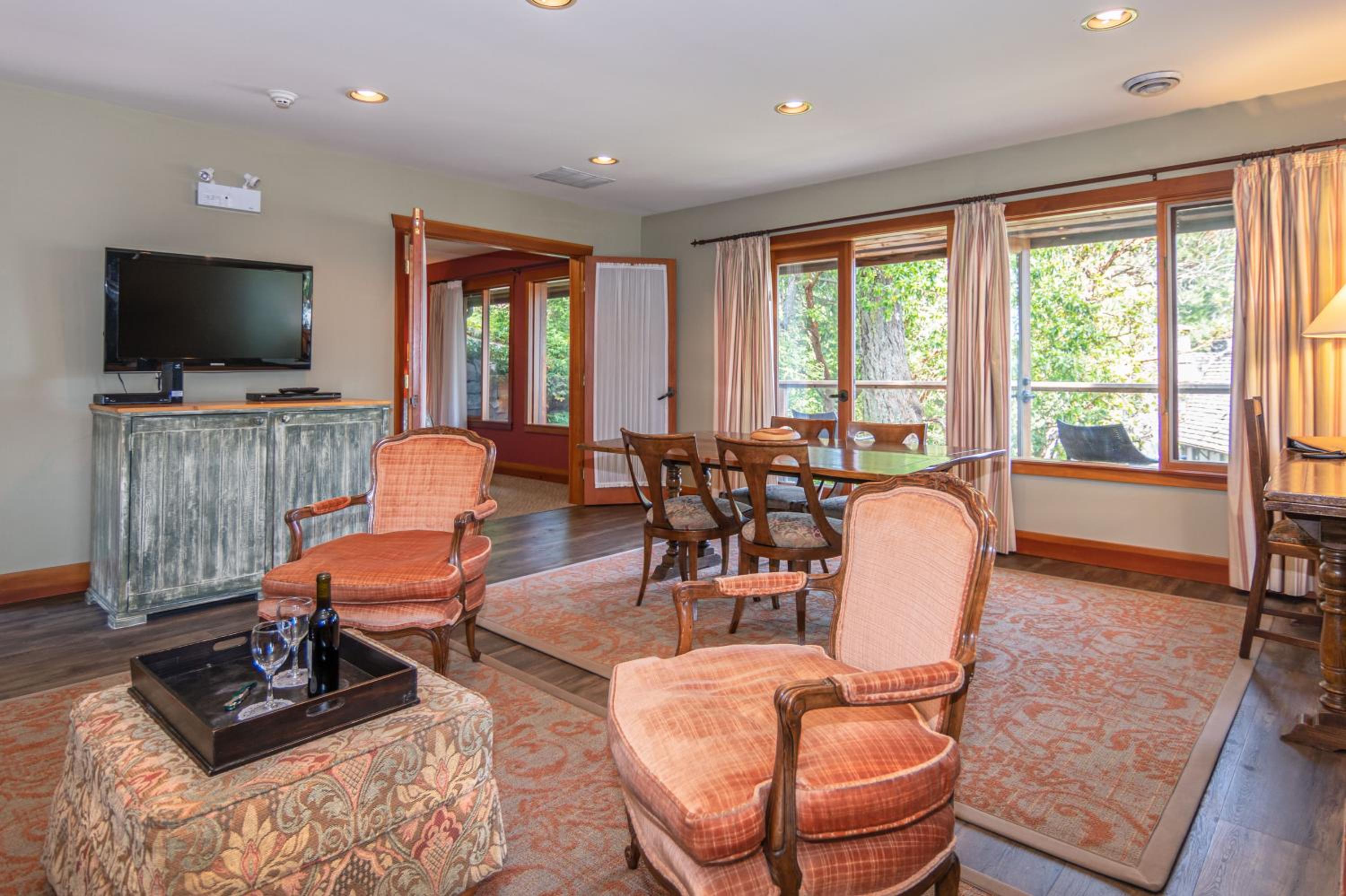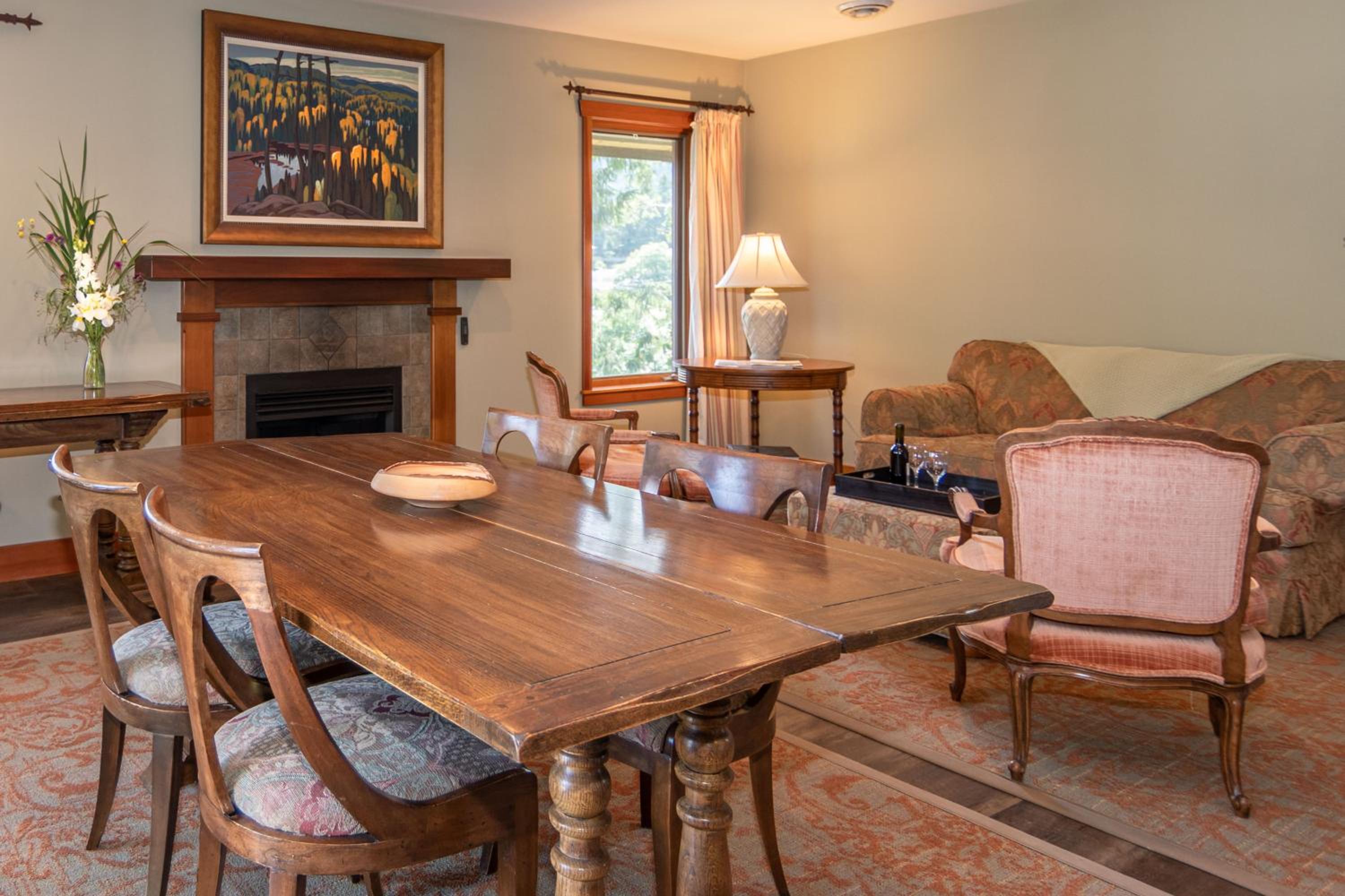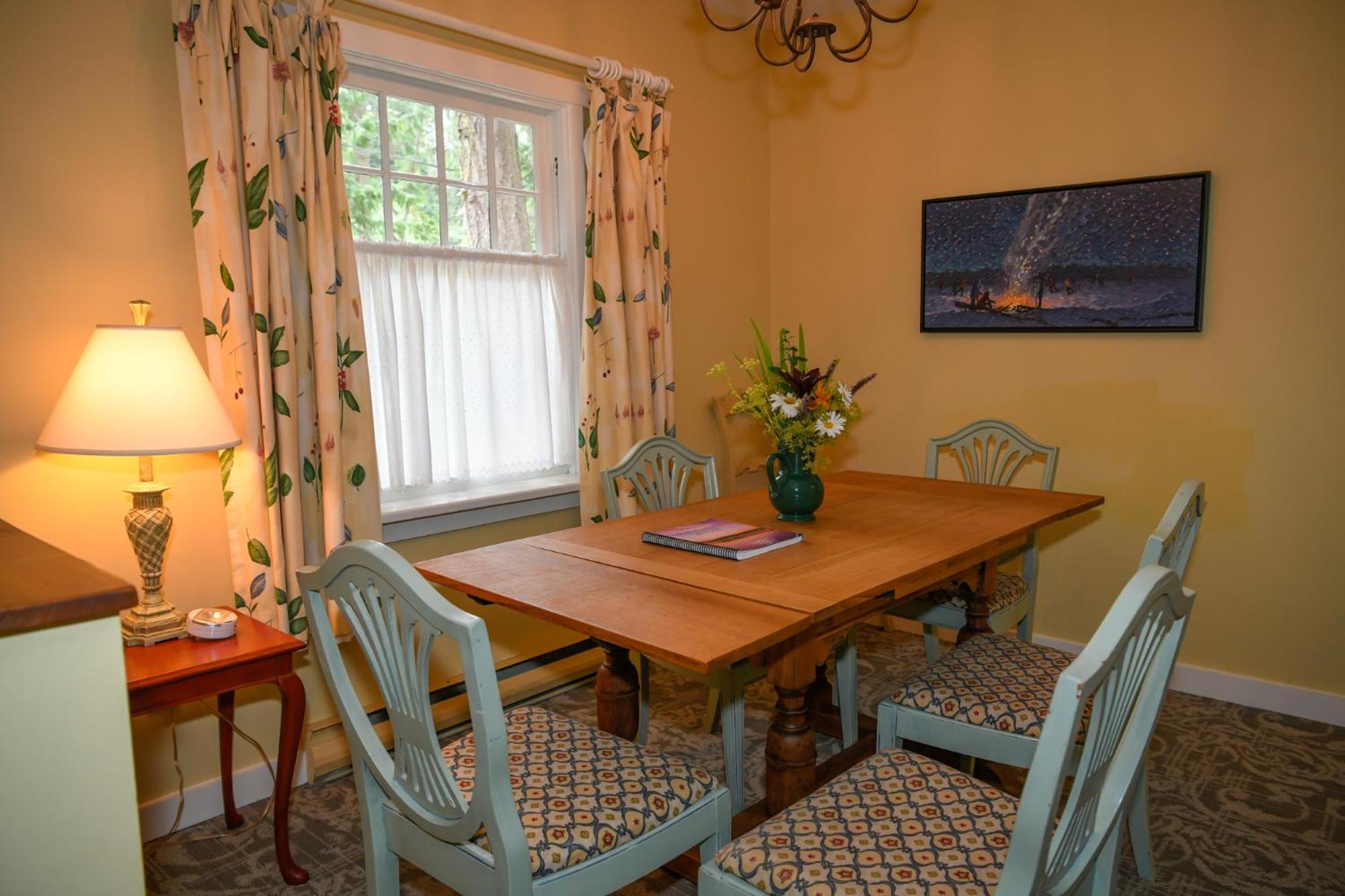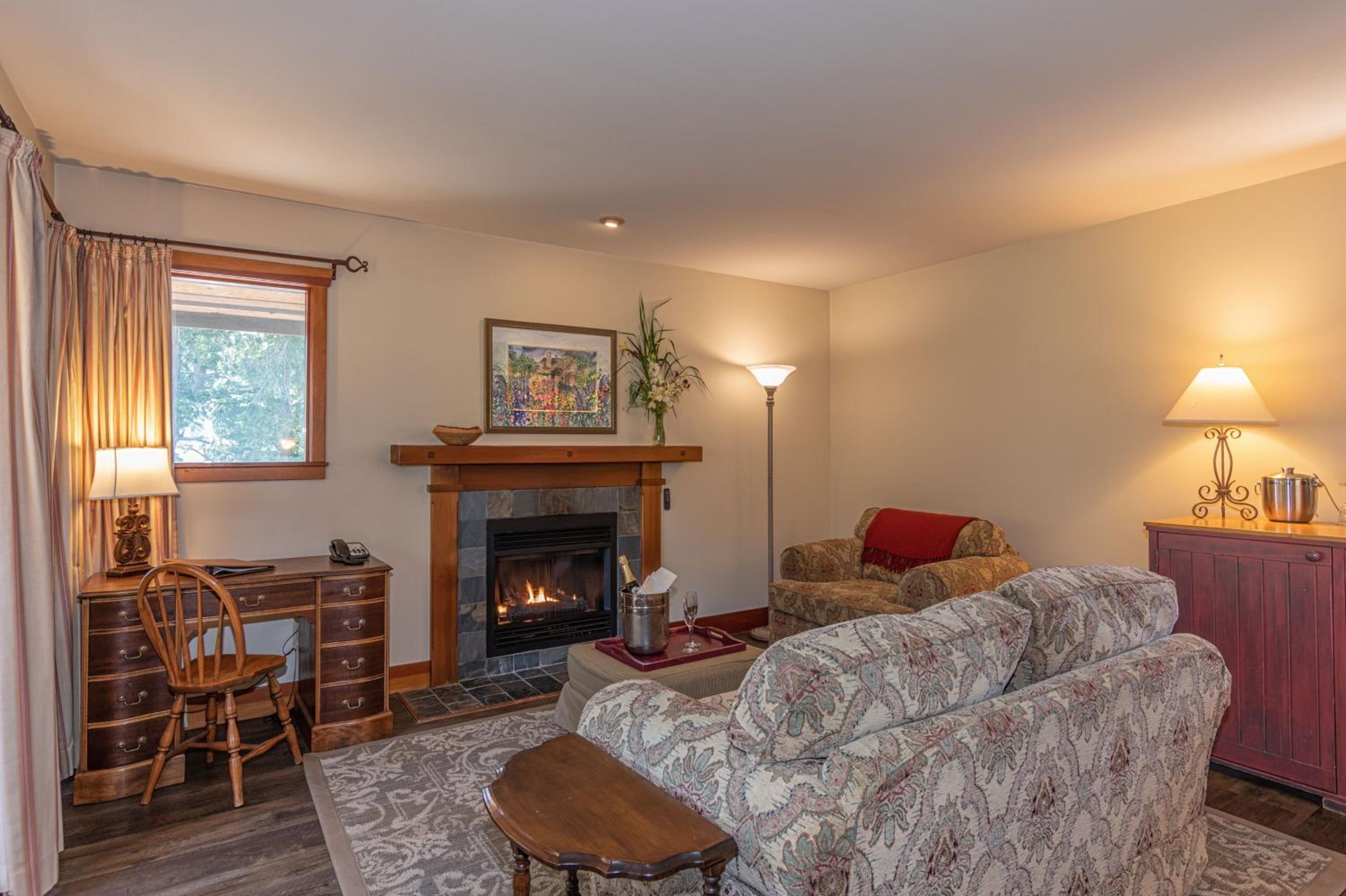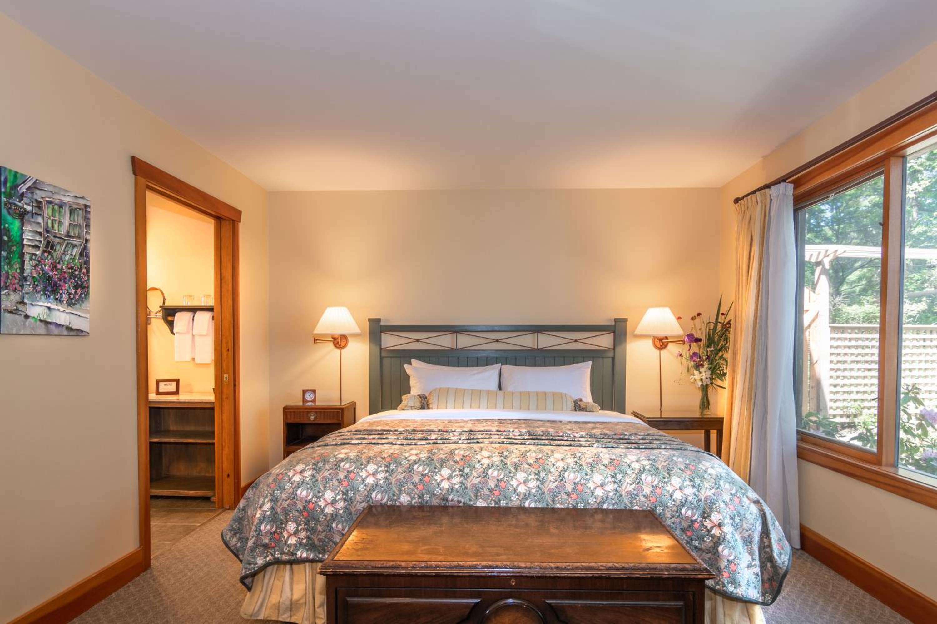 Unwind in the cozy living room by the fireplace or explore the expansive gardens. Experience serenity and natural beauty at every turn during your stay.