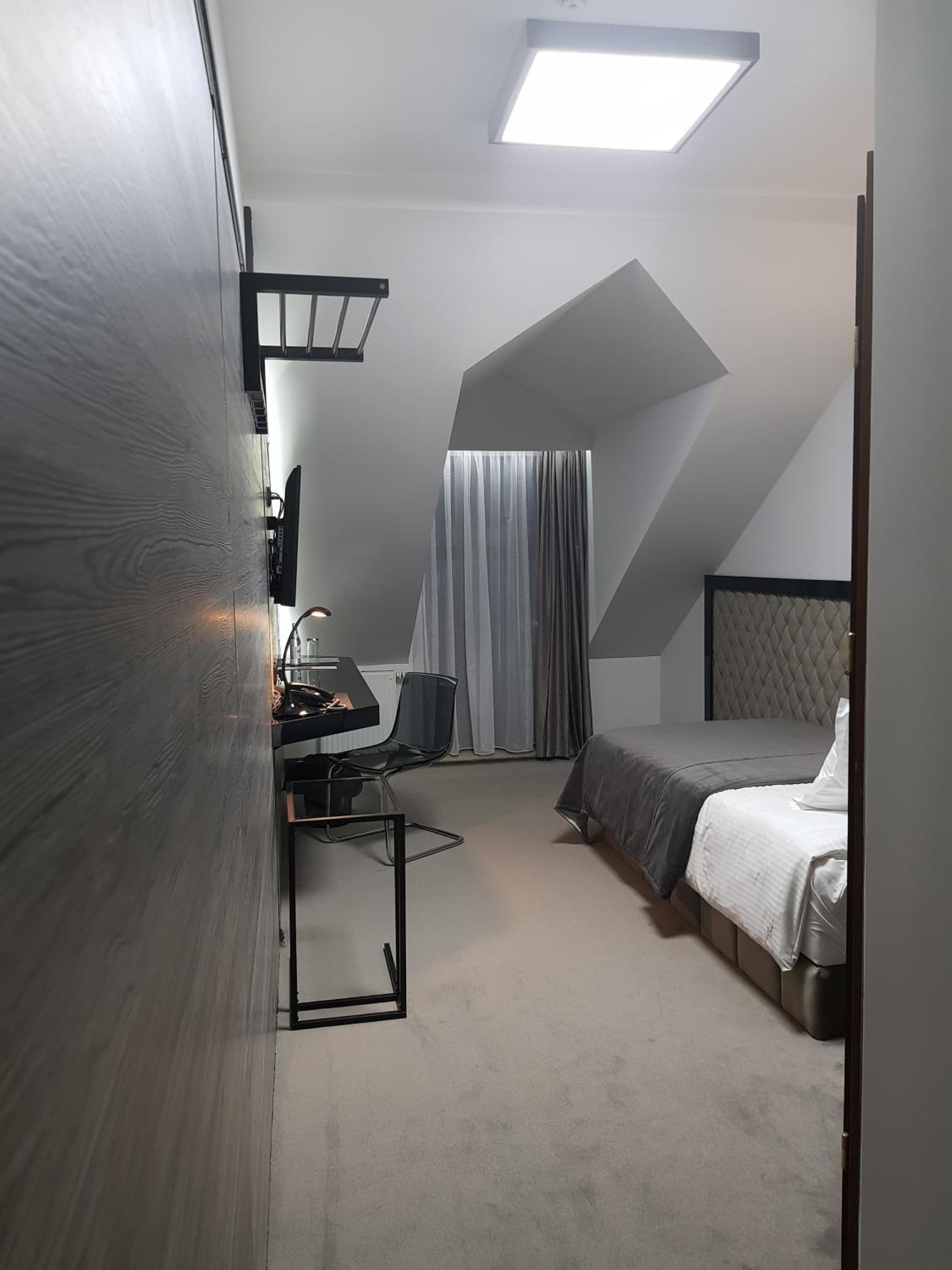 Pokój w trakcie "remontu" - mizernie poszpachlowane wnęki okienne i sporo pajęczyn. Na podłodze dość brudno. Rano dostępna kawa tylko sypana i rozpuszczalna bo ekspres cytuje "teoretycznie w naprawie" stał sobie z zawieszona kartką że nieczynny. Śniadanie w sumie niezle ale na bank nie takie jak na zdjęciach.