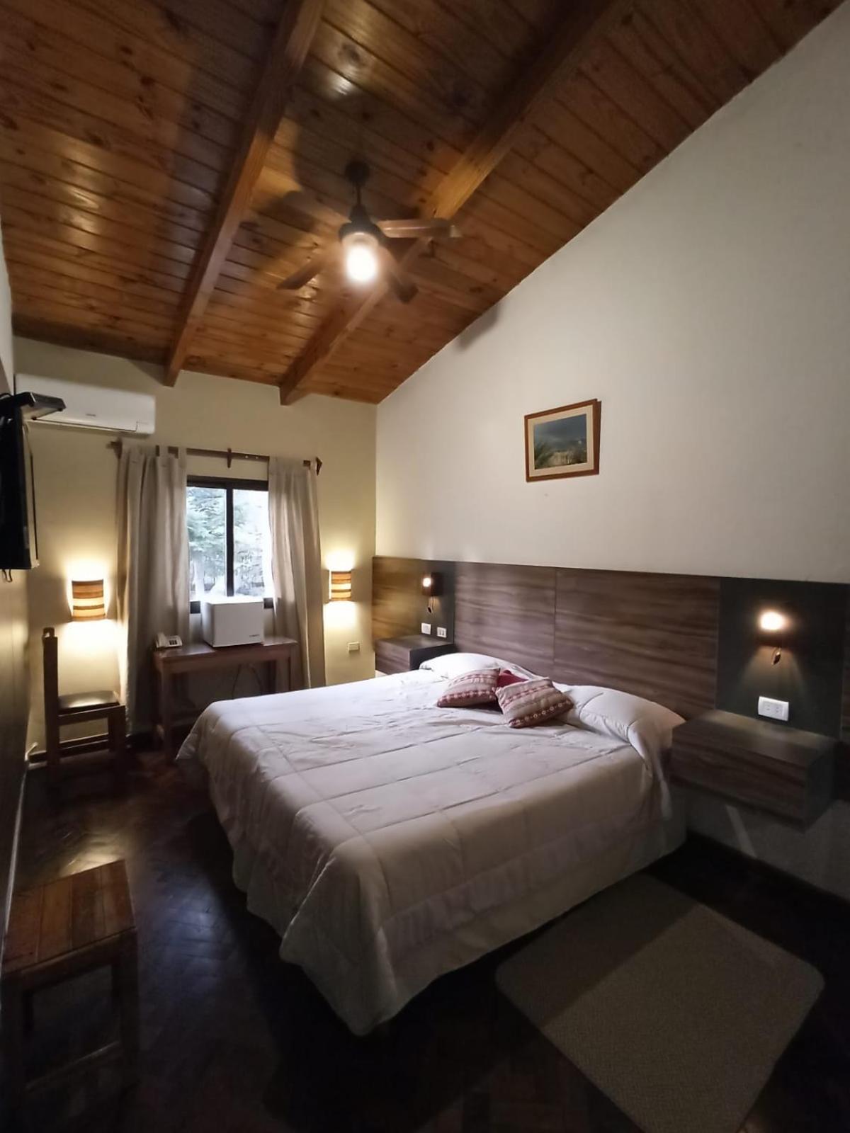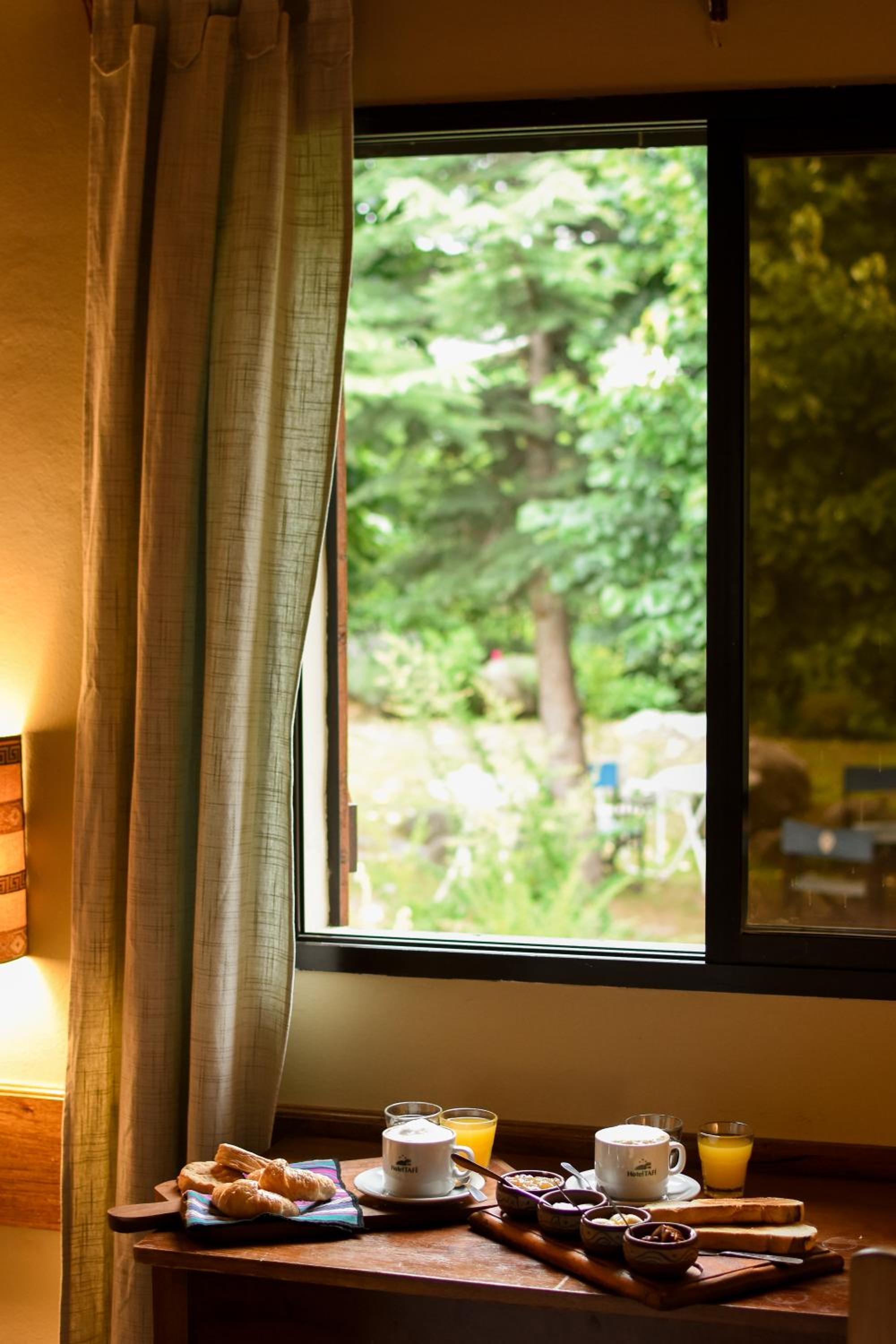 Start your day with a delicious buffet breakfast featuring fresh yogurts and cereals. Throughout the day, savor cold drinks at the bar and take advantage of free private parking. With Tucuman Airport just 150 km away, your tranquil escape awaits at Hotel Tafí.