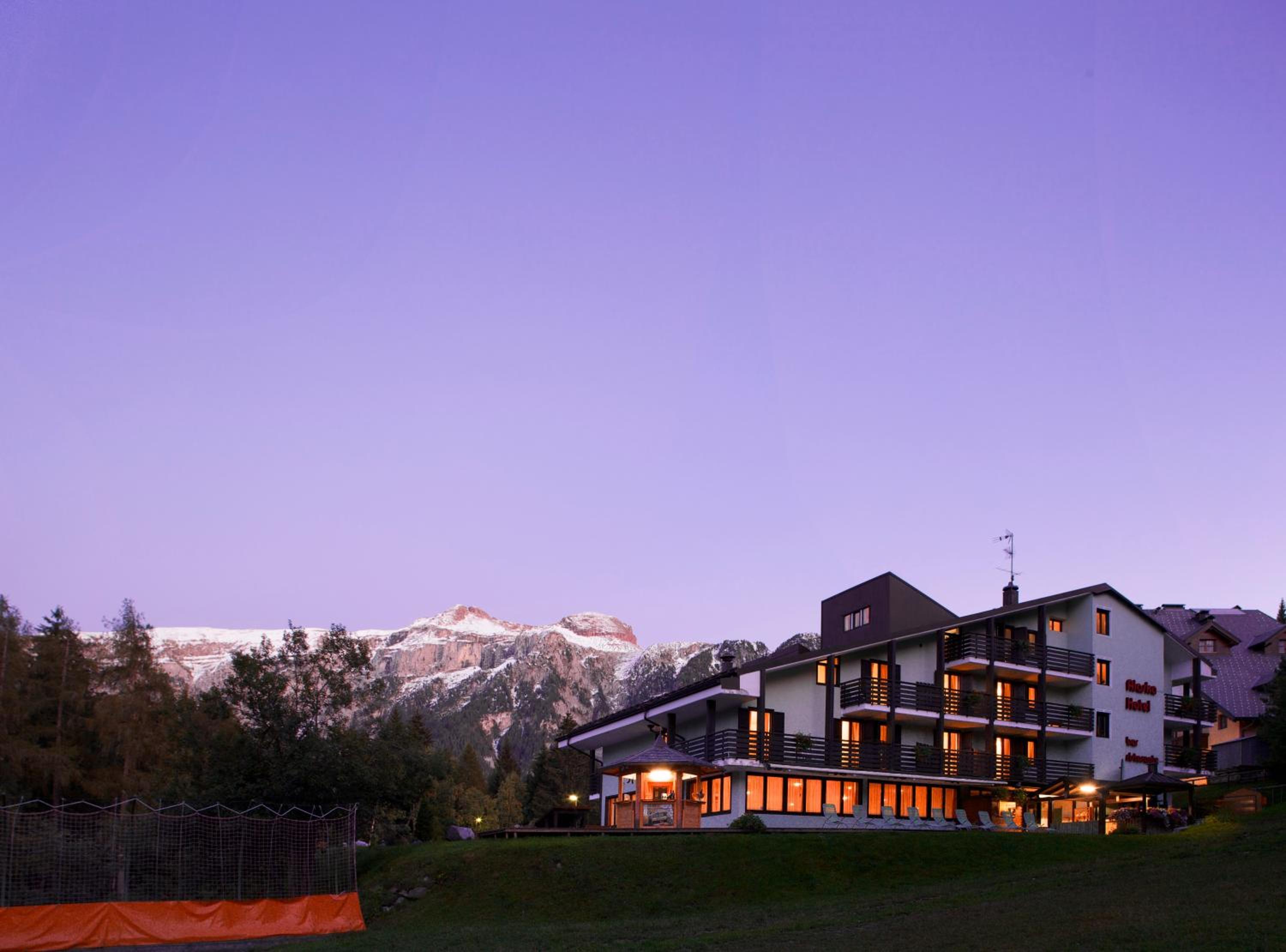 Hotel Alaska offers a luxurious spa experience with a hot tub, sauna, and Turkish bath, perfect for unwinding after a day of skiing or hiking in the Dolomites.