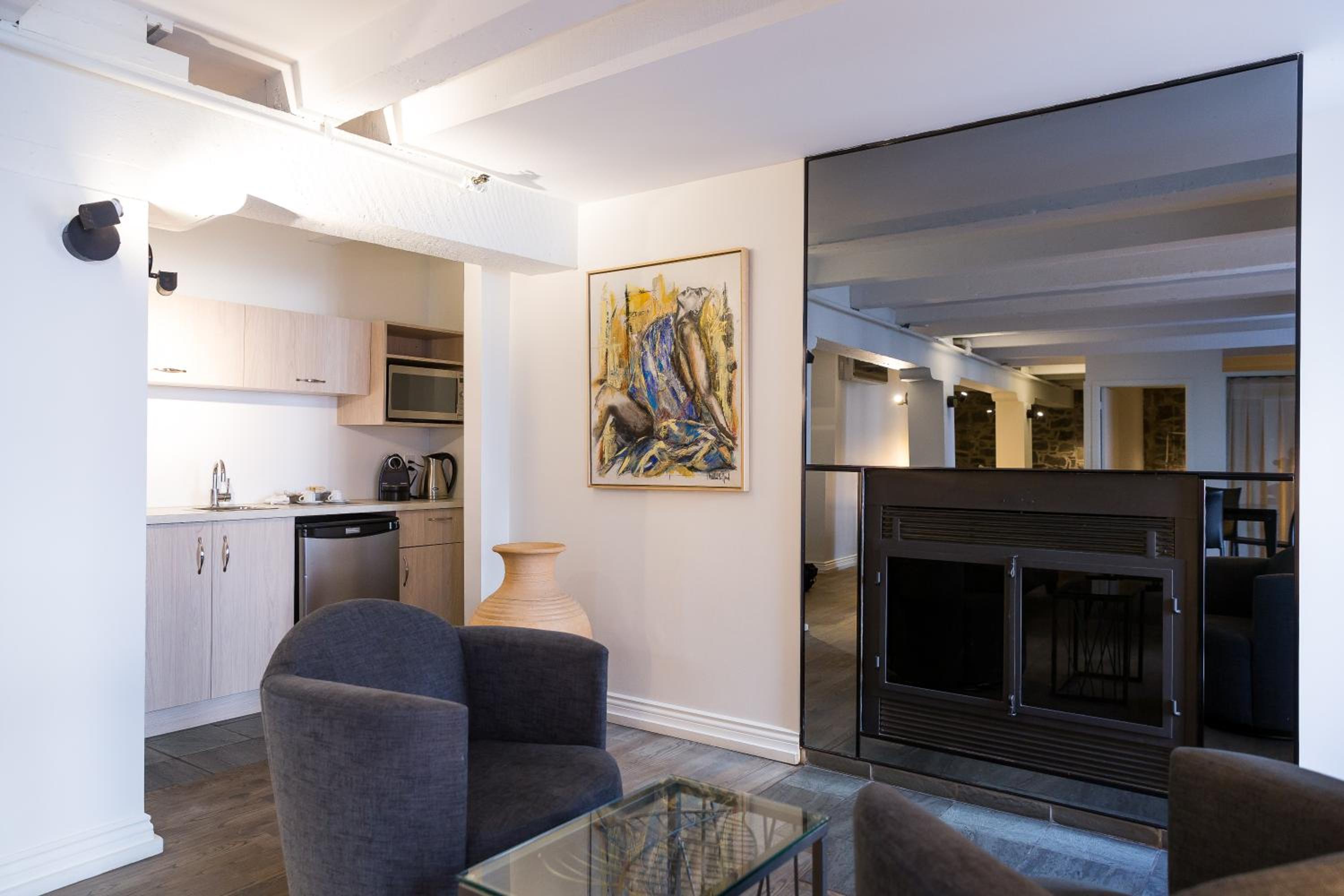 Emplacement idéal pour visiter Québec nous avions une suite située dans l’immeuble en fond de cour très agréable et confortable.