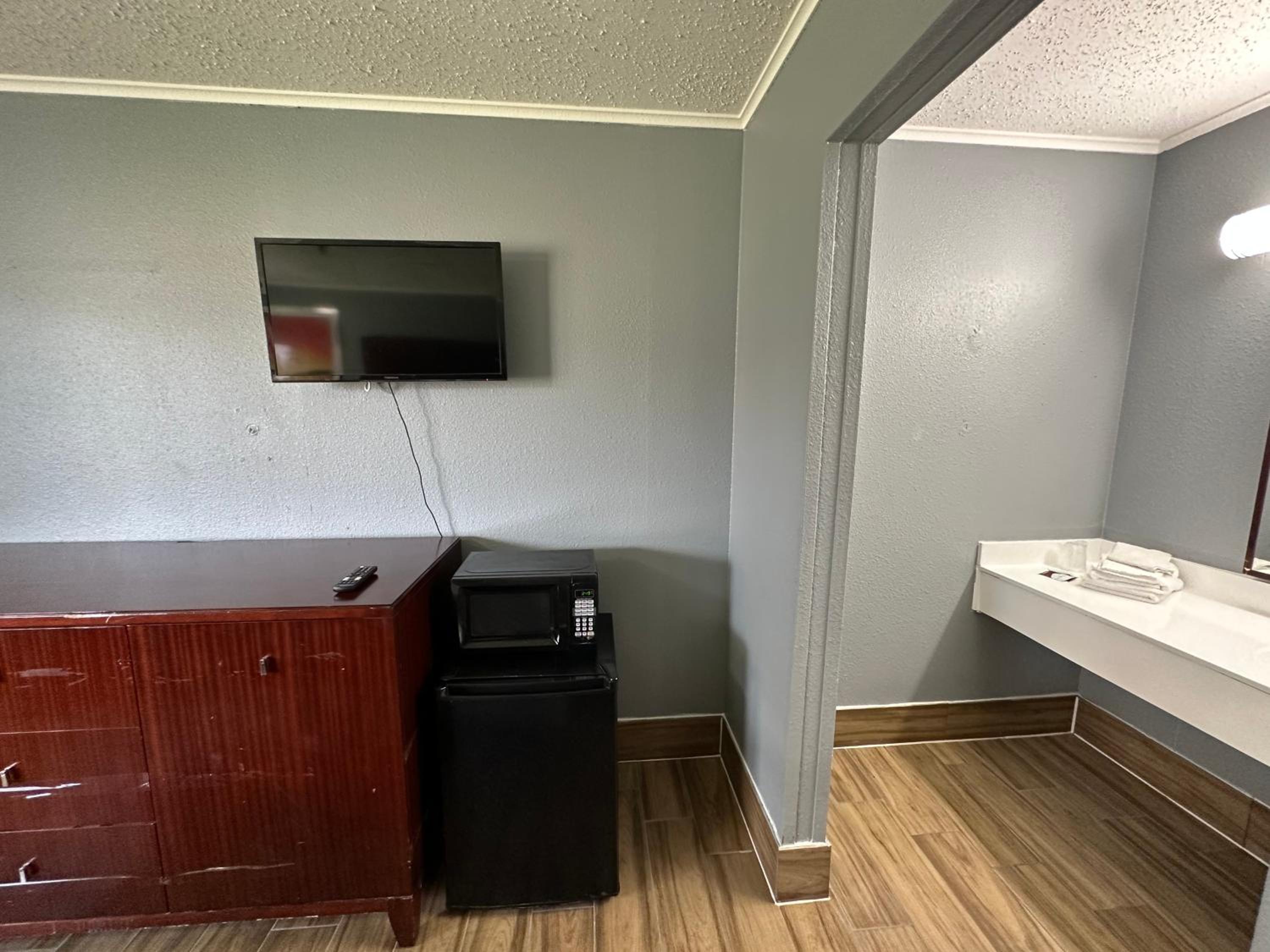 The room stunk of cigarette smoke so bad, the bathtub was dirty built up dirt and grime. The beds were so small. Might as well of been a twin size bed. No way were they a full size bed. Beds were hard as a rock. Pillows were flat.