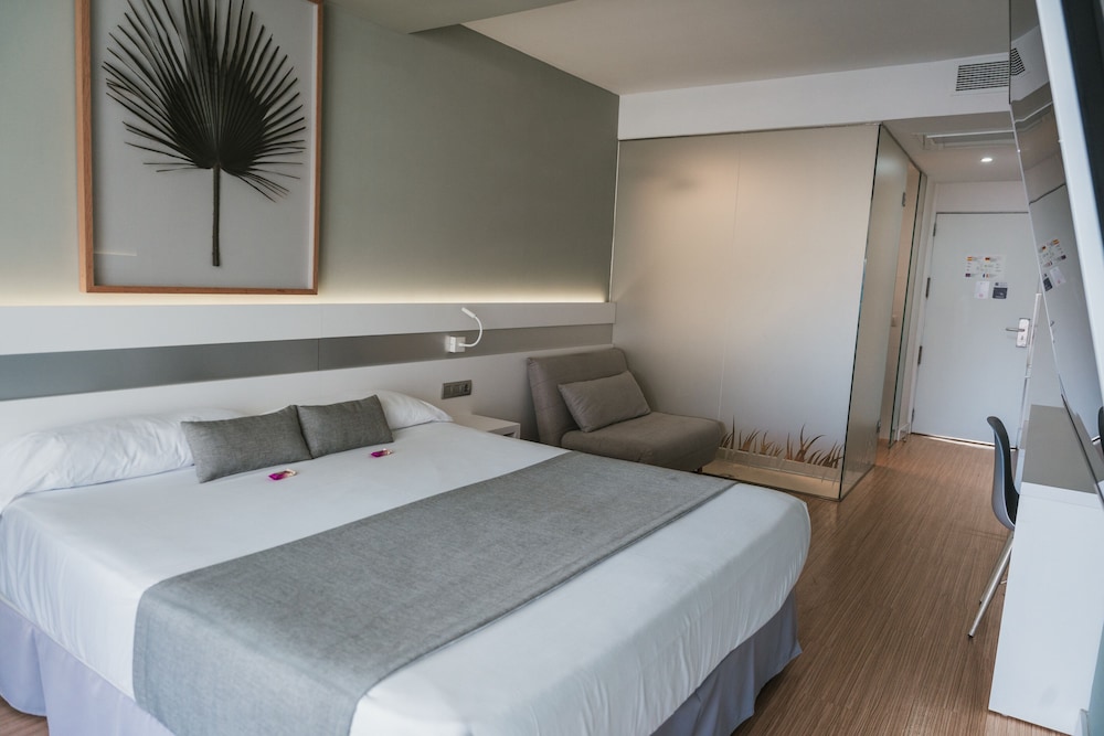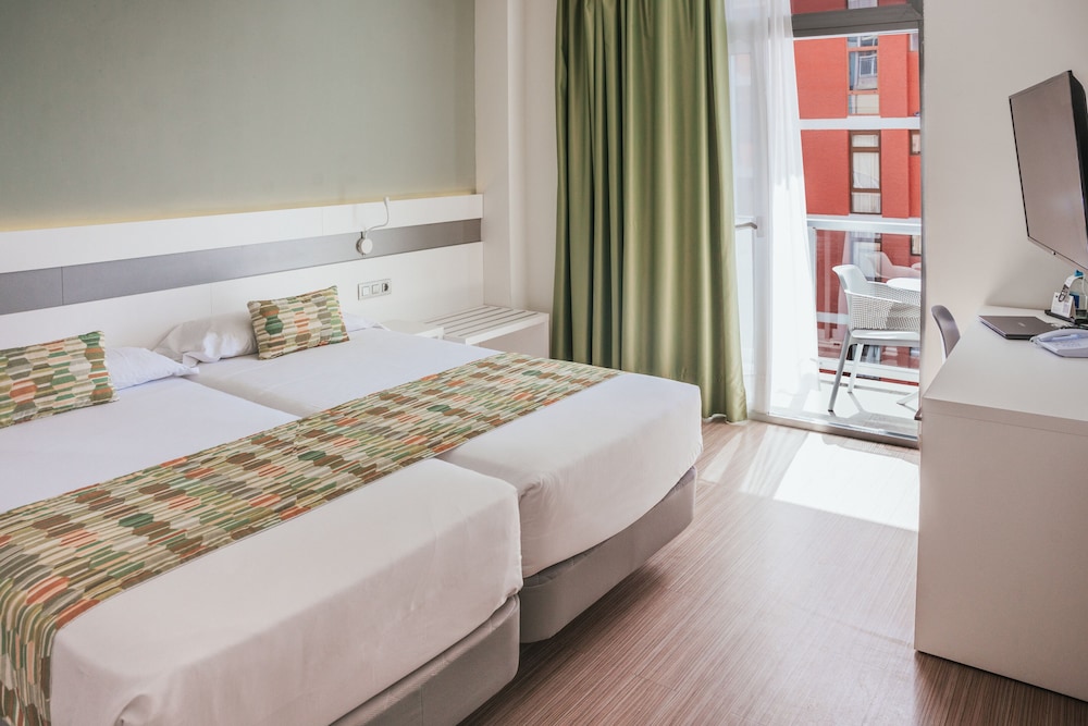 Bra hotell med god frokost og greit rom med kjøleskap og liten balkong med litt utsikt til stranda,fint å gå tur i området og mange cafeer like i nærheten,hiper dino supermarked like ved og greit å finne fram.