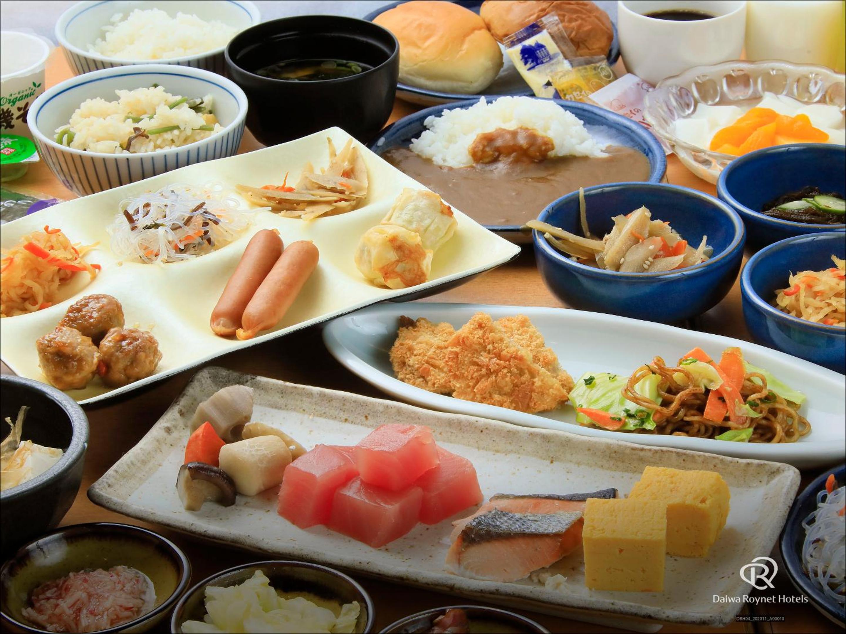 Indulge in a delicious breakfast buffet at Nihonkai Shoya restaurant, offering a variety of Japanese dishes to start your day off right.